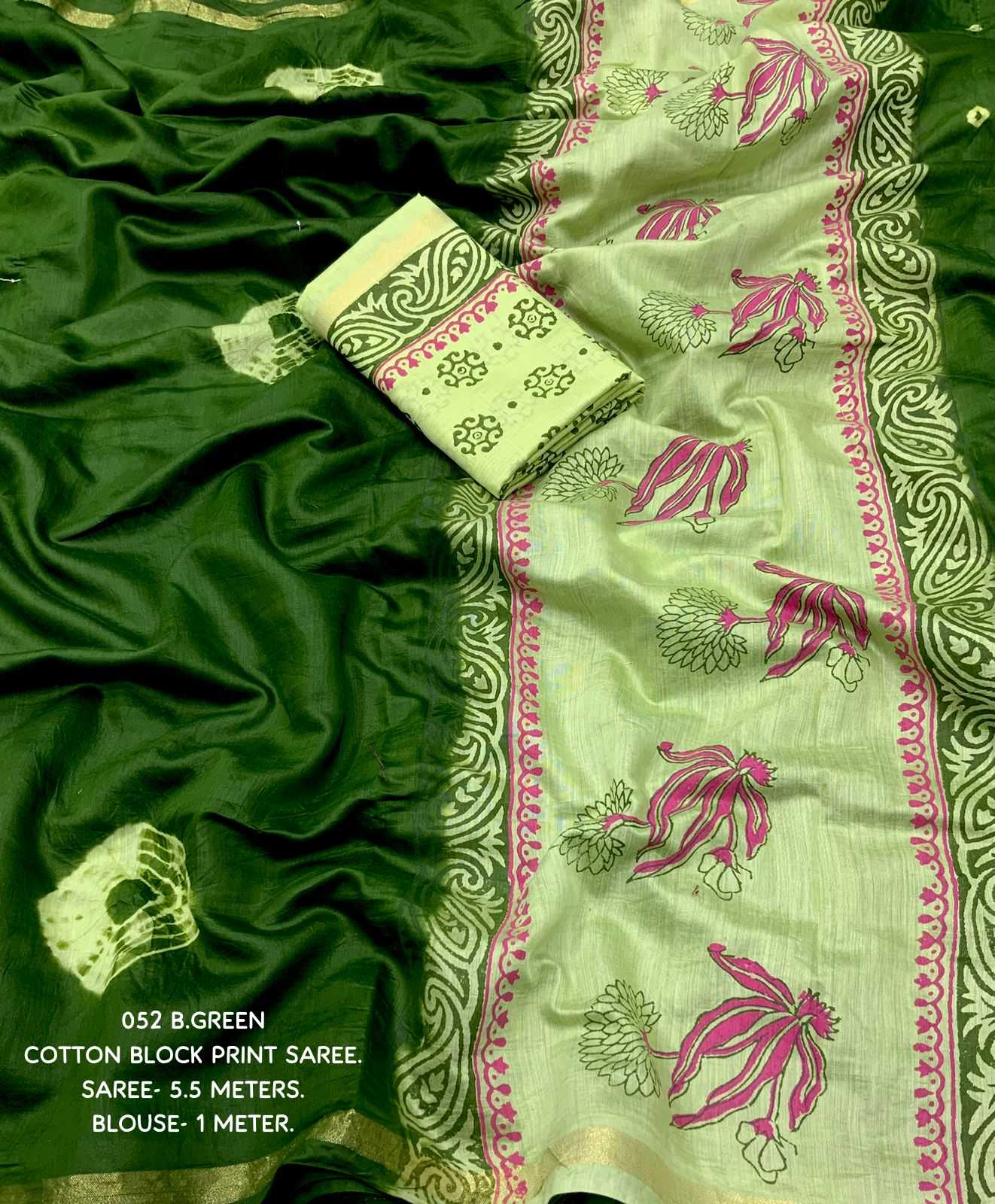 BEST SELLER New saree with beautifull concept of BATIK PRINTES. KC- 052 Quality- soft pure chanderi cotton saree with block printed shibori butta allover and block print seprate short pallu.