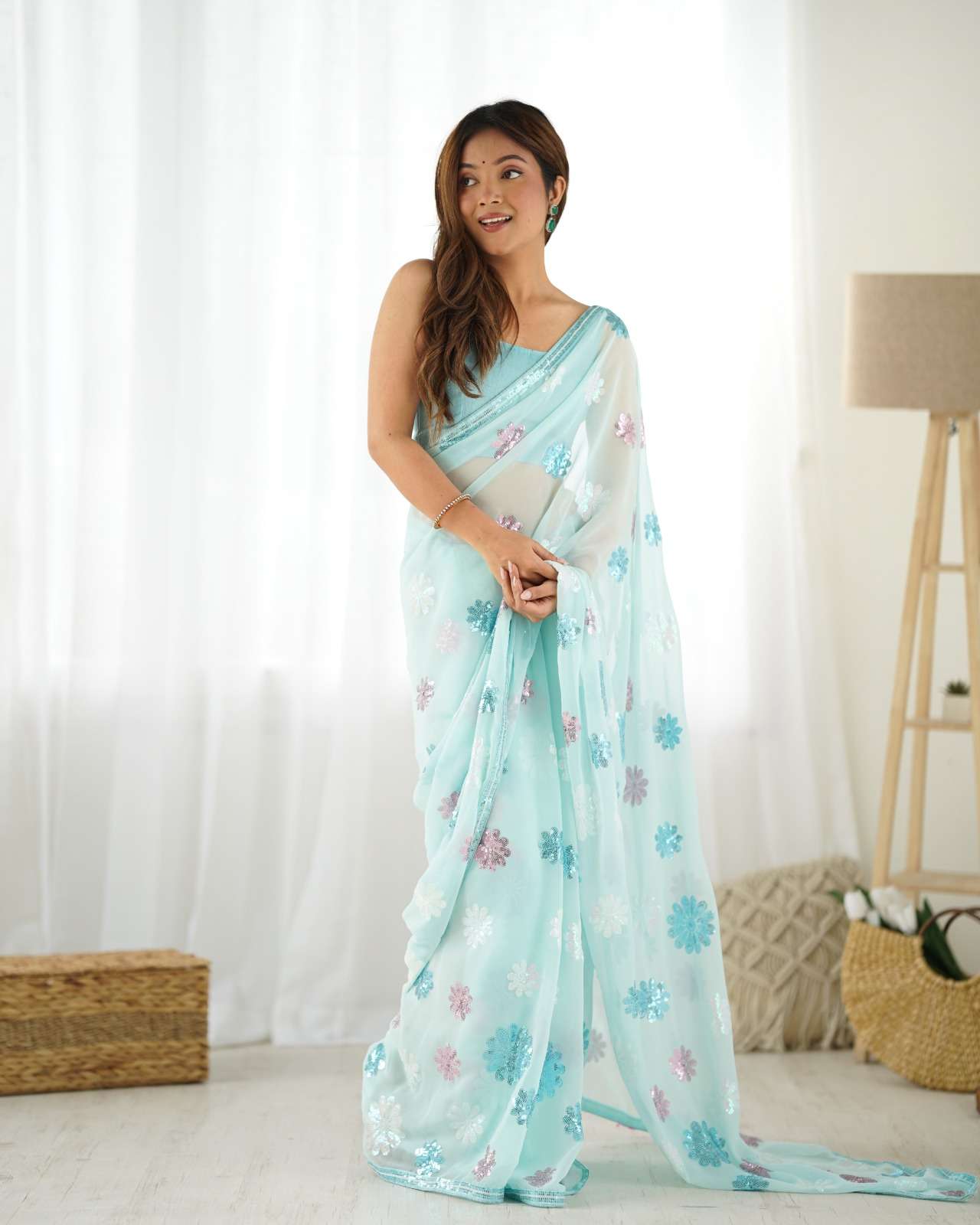 Presenting you most beautiful Multi colour seqwance saree collection KC-762 👇 Fabric details 👇 🛑SAREE FABRIC- Faux Georgette 🛑SAREE LENGTH- 5.50 Mtr 🛑SAREE WORK- Multicolour seqwance work with seqwance lace border 🛑BLOUSE FABRIC- Faux Georgette 🛑BLOUSE LENGTH- 1 Mtr Classic and elegant, this saree will be a perfect addition to your ethnic wardrobe, offering a soothing and pretty wibe the adornment of seqwance work makes it impeccable RATE - 699/*- |