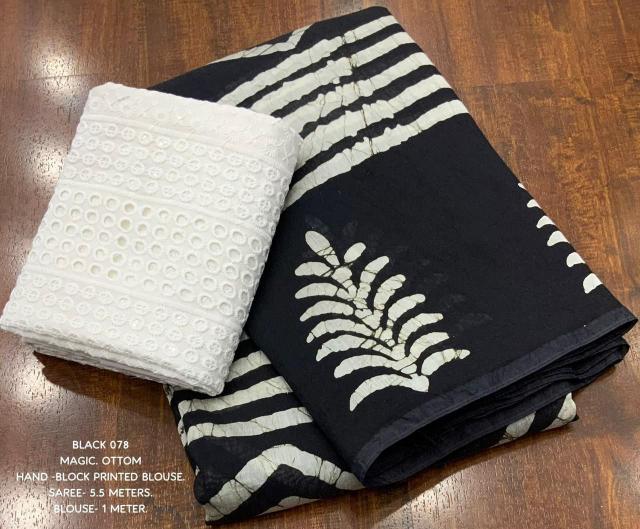 New addition to our best selling clothing magic cotton. kc - 078 kc - kasturi cotton. Quality- pure chanderi cotton hand-block printed saree. Cotton tassels on pallu. Blouse- cotton lucknowi style white embroidery blouse. Rate- 999/- +ship Top trusted quality |