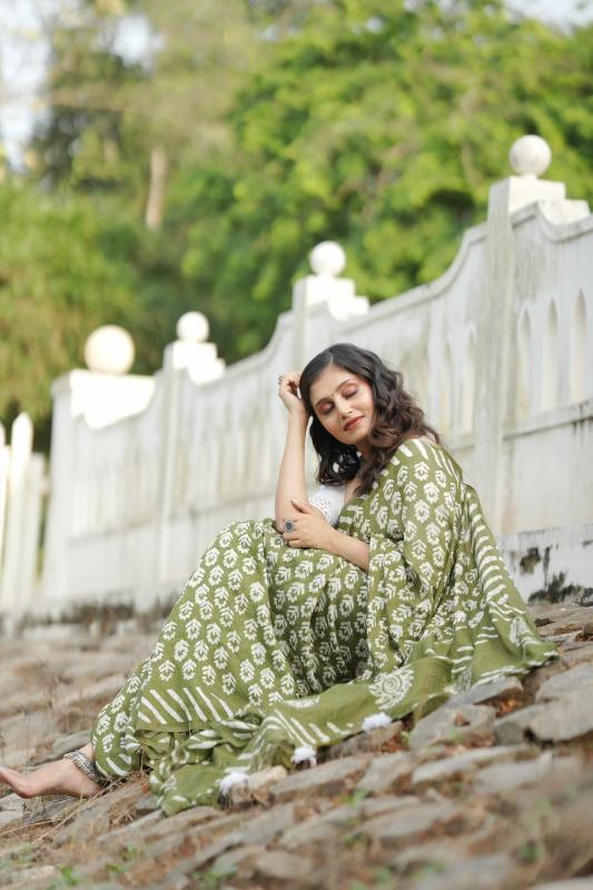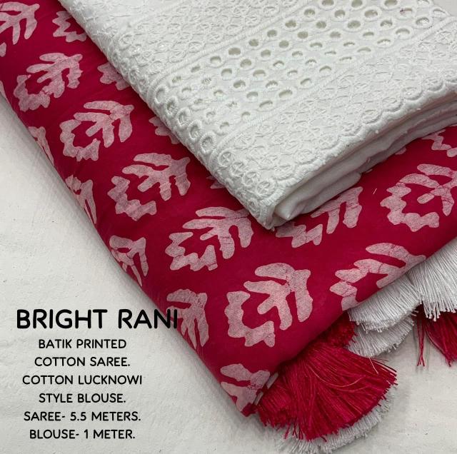 New cotton handblock batik print catalog KC- 055 KC- jaipuri batik Quality- soft cotton saree with handblock batik prints Cotton tassels on pallu. Blouse - cotton lucknowi style emboridary blouse. Rate - 1000+ship Top premium quality |