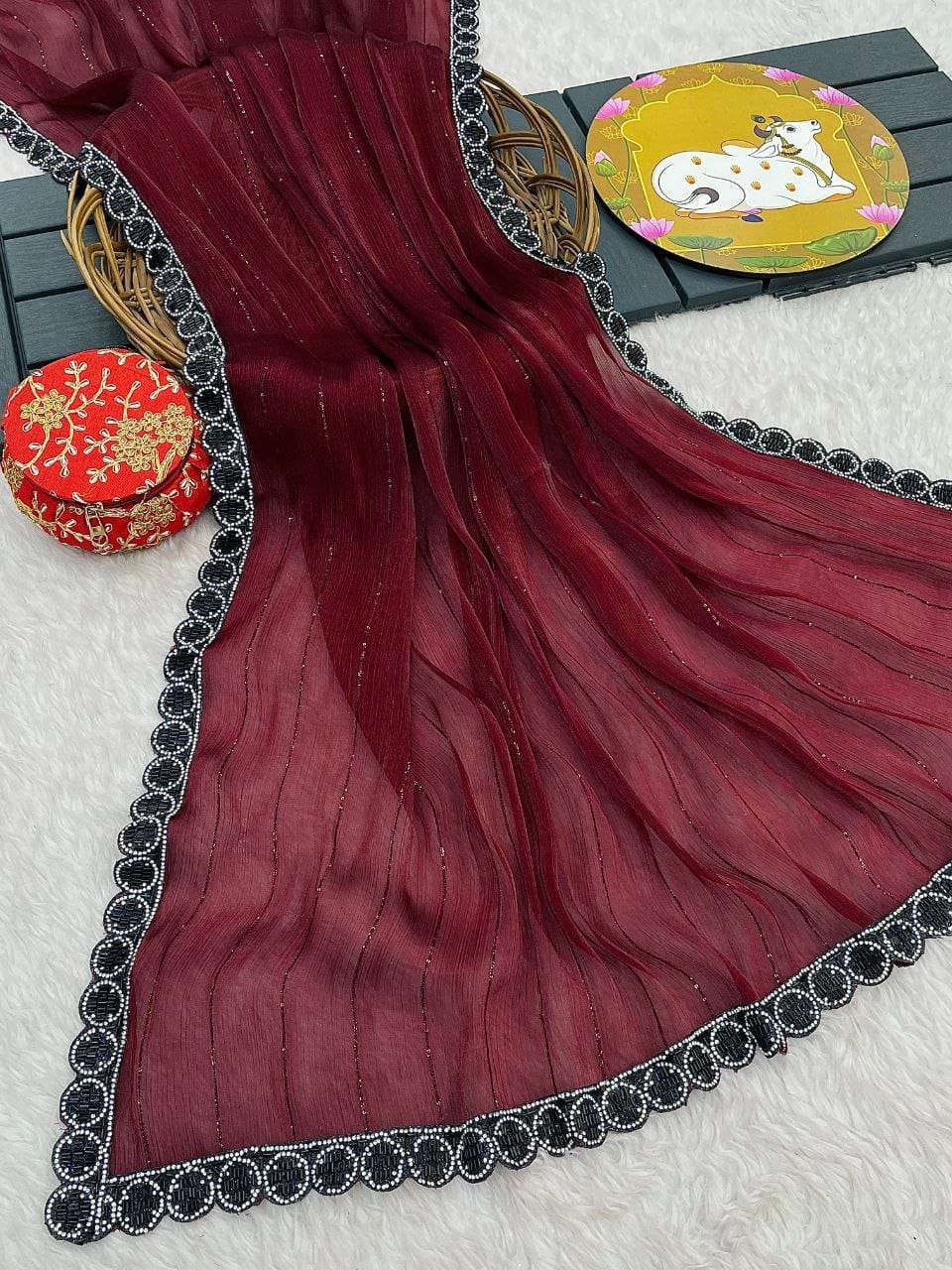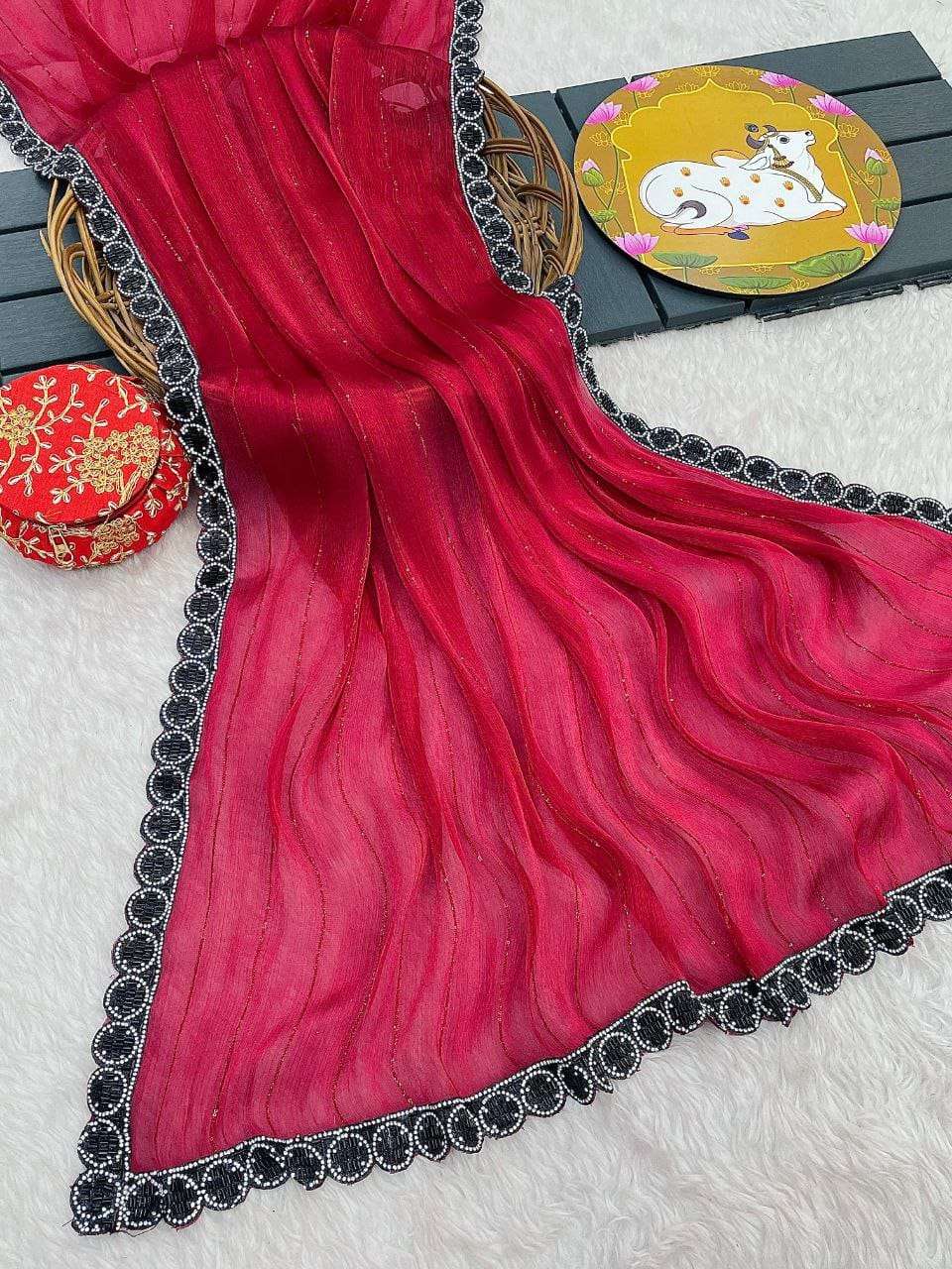 New Launching Premium DarK Collection KC- 827 Primium Blooming Barbari Jimmy Chu Silk With Pure JARKAN Handcraft Lace Border And seqwance in Sareee It’s Primium Designer Collection With Pure Fabric And Pure border Blouse Runnning Burbury Silk RATE :- 699/- |
