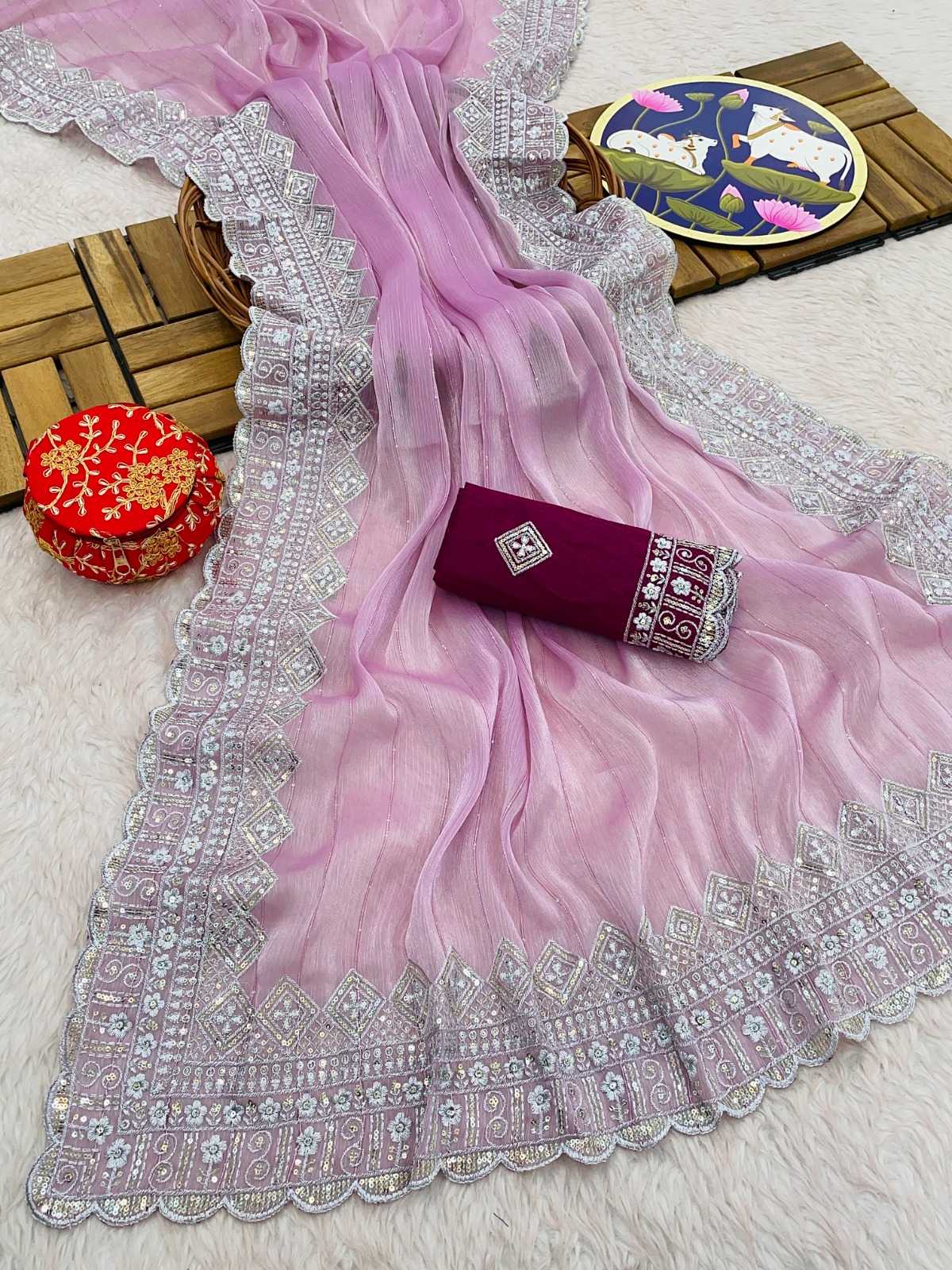 pr kc 828 new trendy burburry zari work stylish sequence work saree with blouse