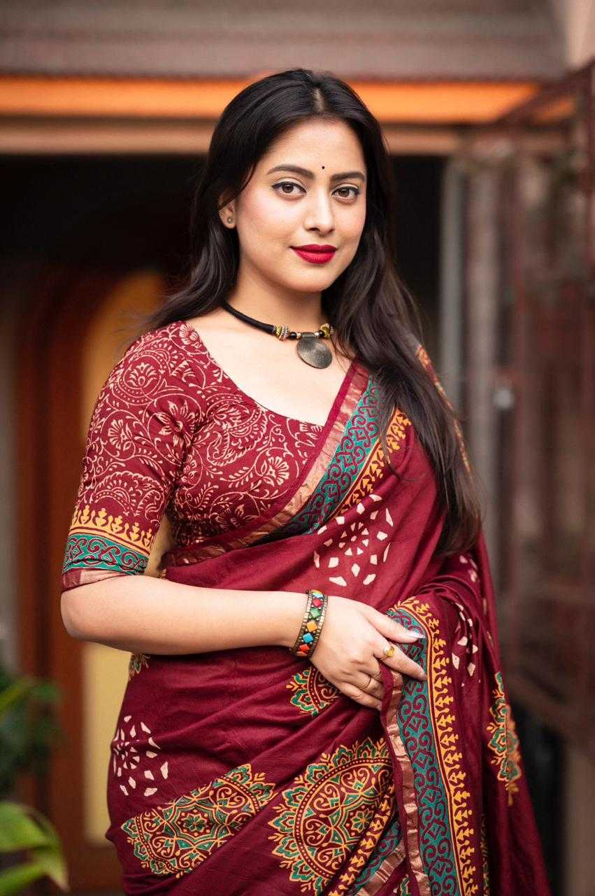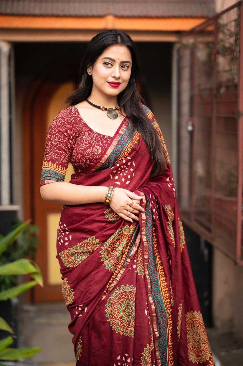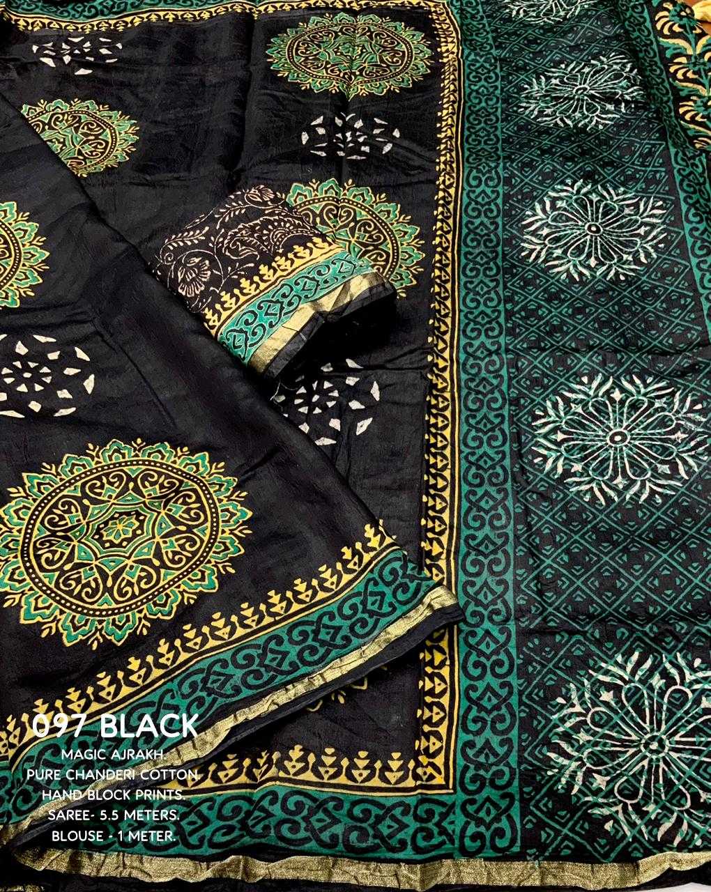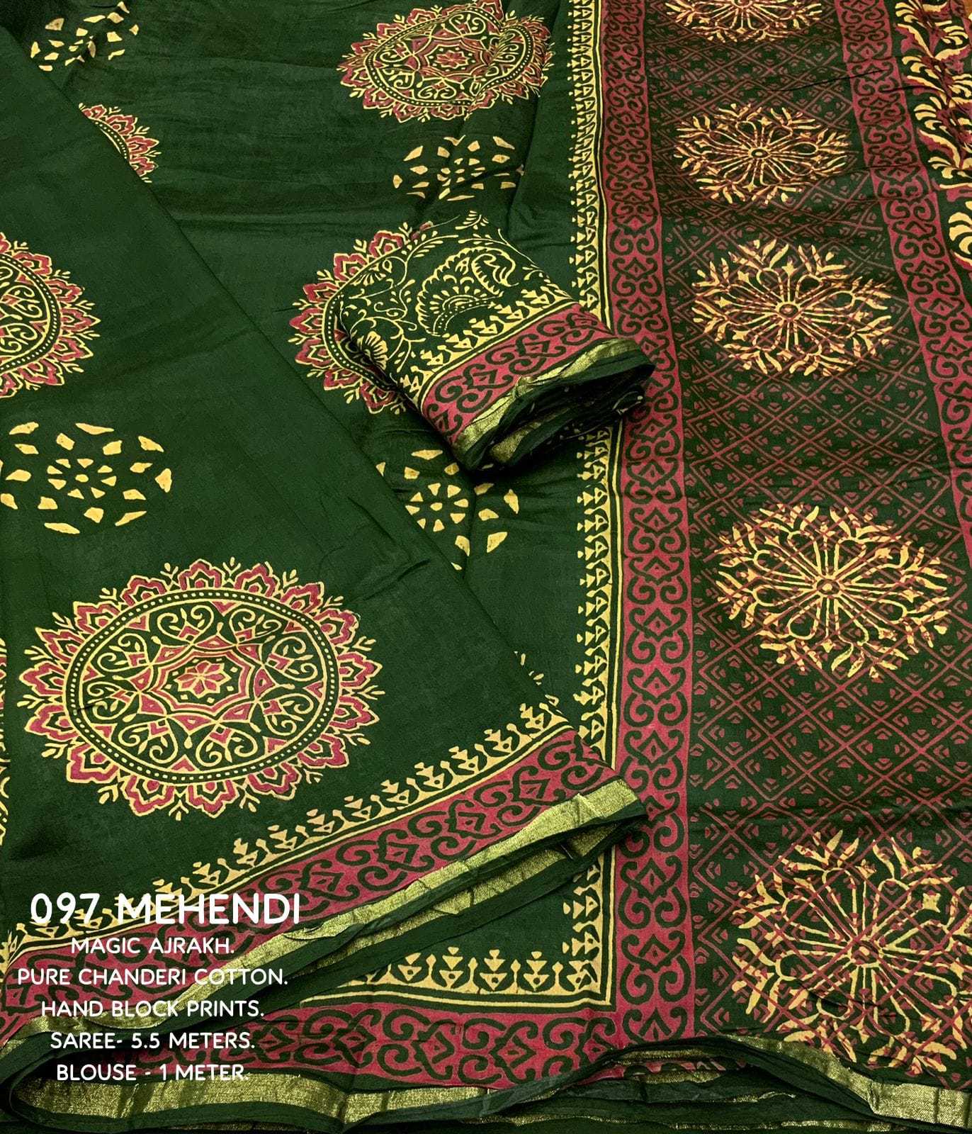 pr kc 97 magic ajrakh chanderi cotton hand print saree