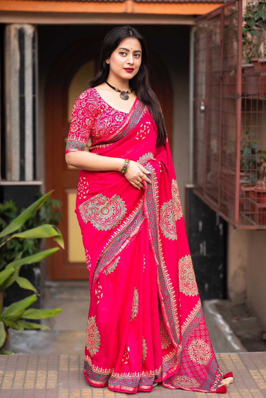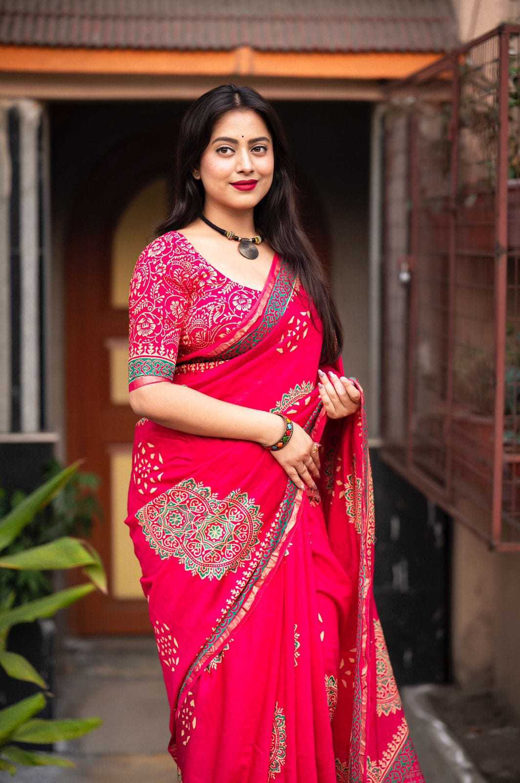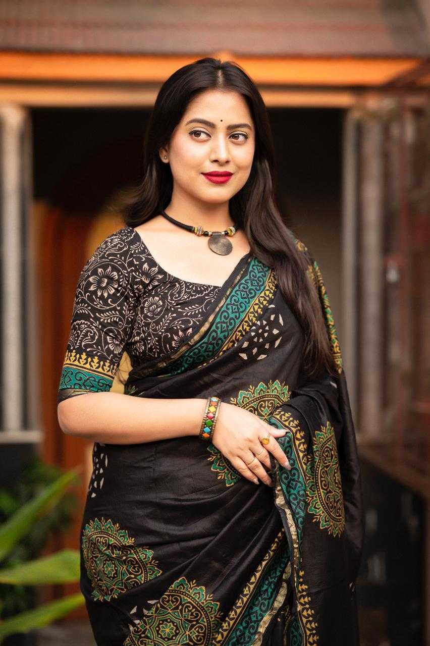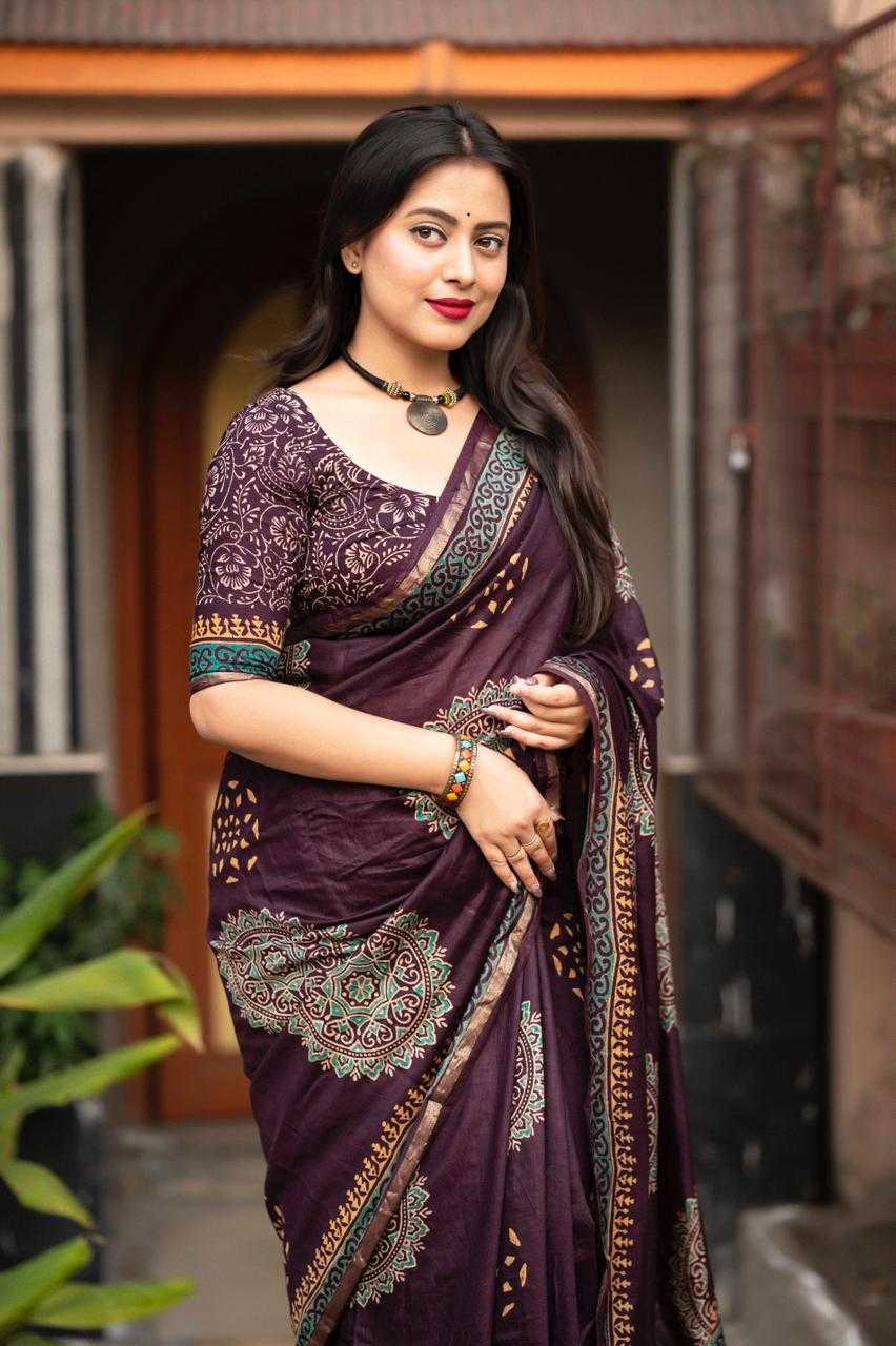 pr kc 97 magic ajrakh chanderi cotton hand print saree
