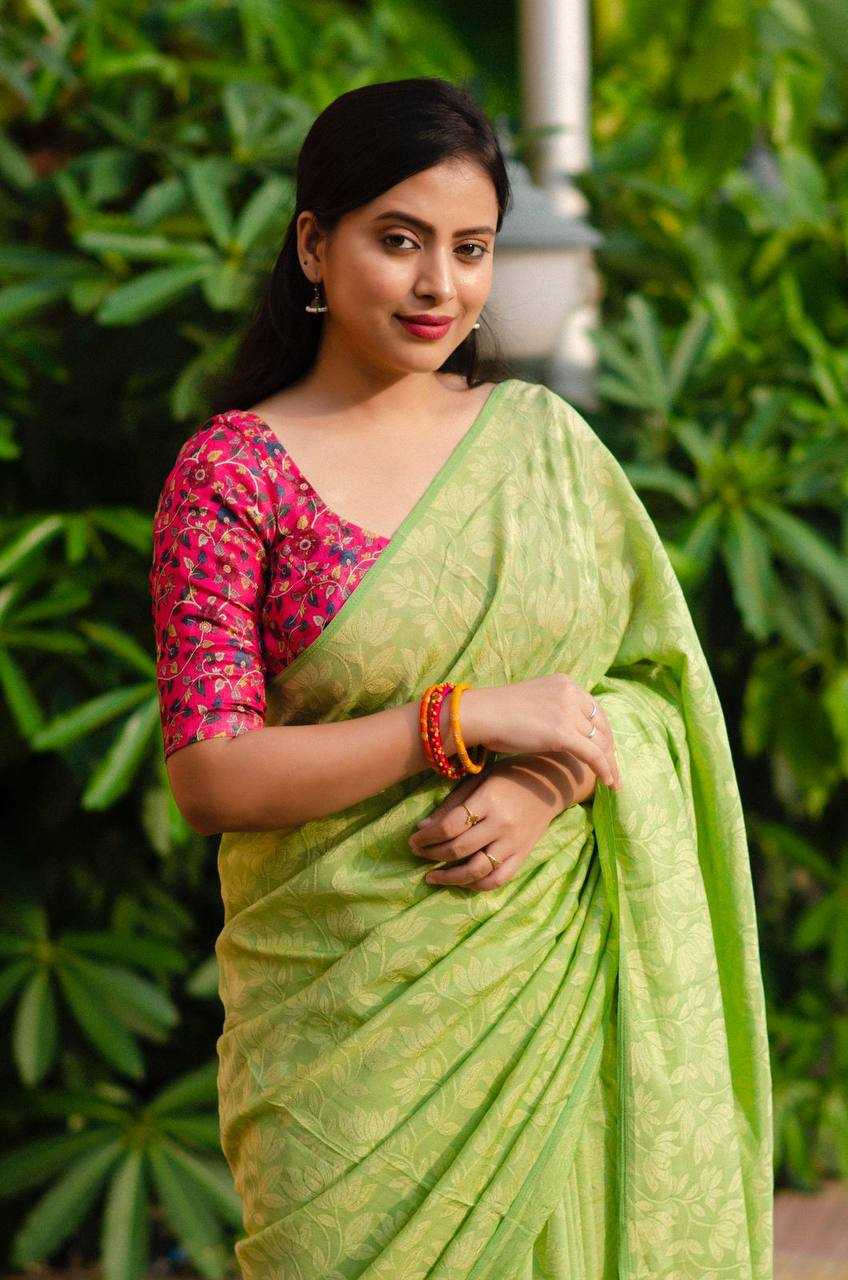 best seller back in stock New clothing from kc Kc- baarfi Quality- soft silk self woven designed jacquard saree. Cotton tassel on pallu Blouse- kamlkari style printed jute silk blouse Length- 5.5 meters Rate- 750+ship Top trusted quality |