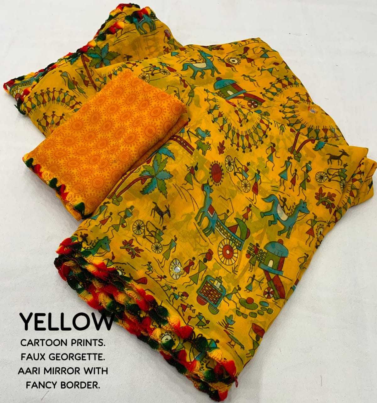 pr kc cartoon georgette beautiful print stylish saree