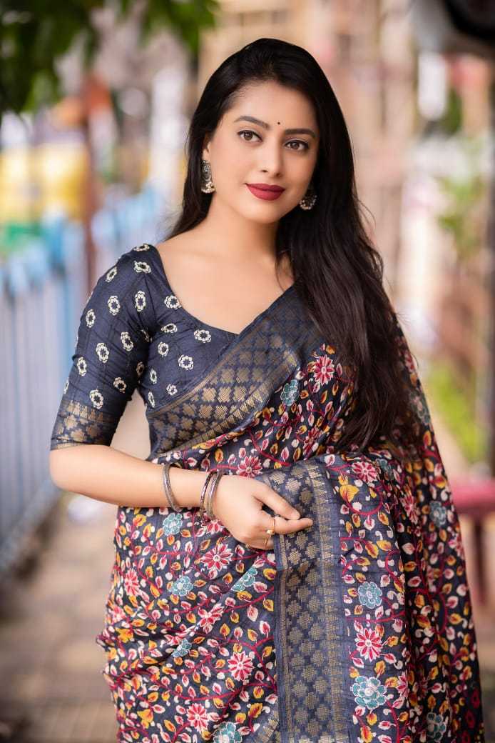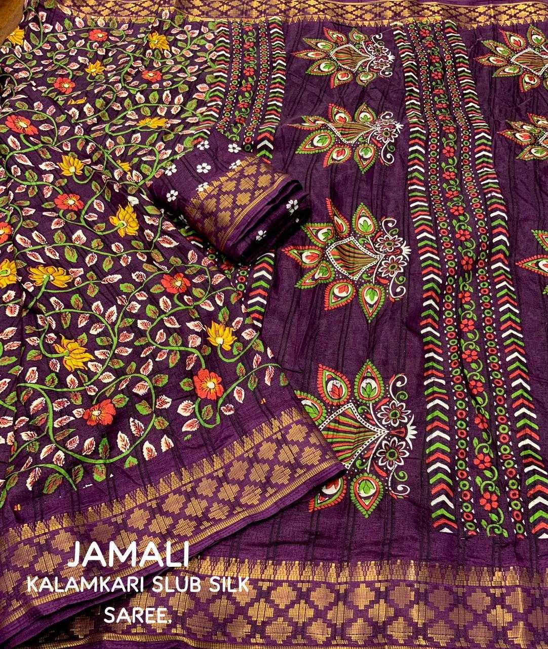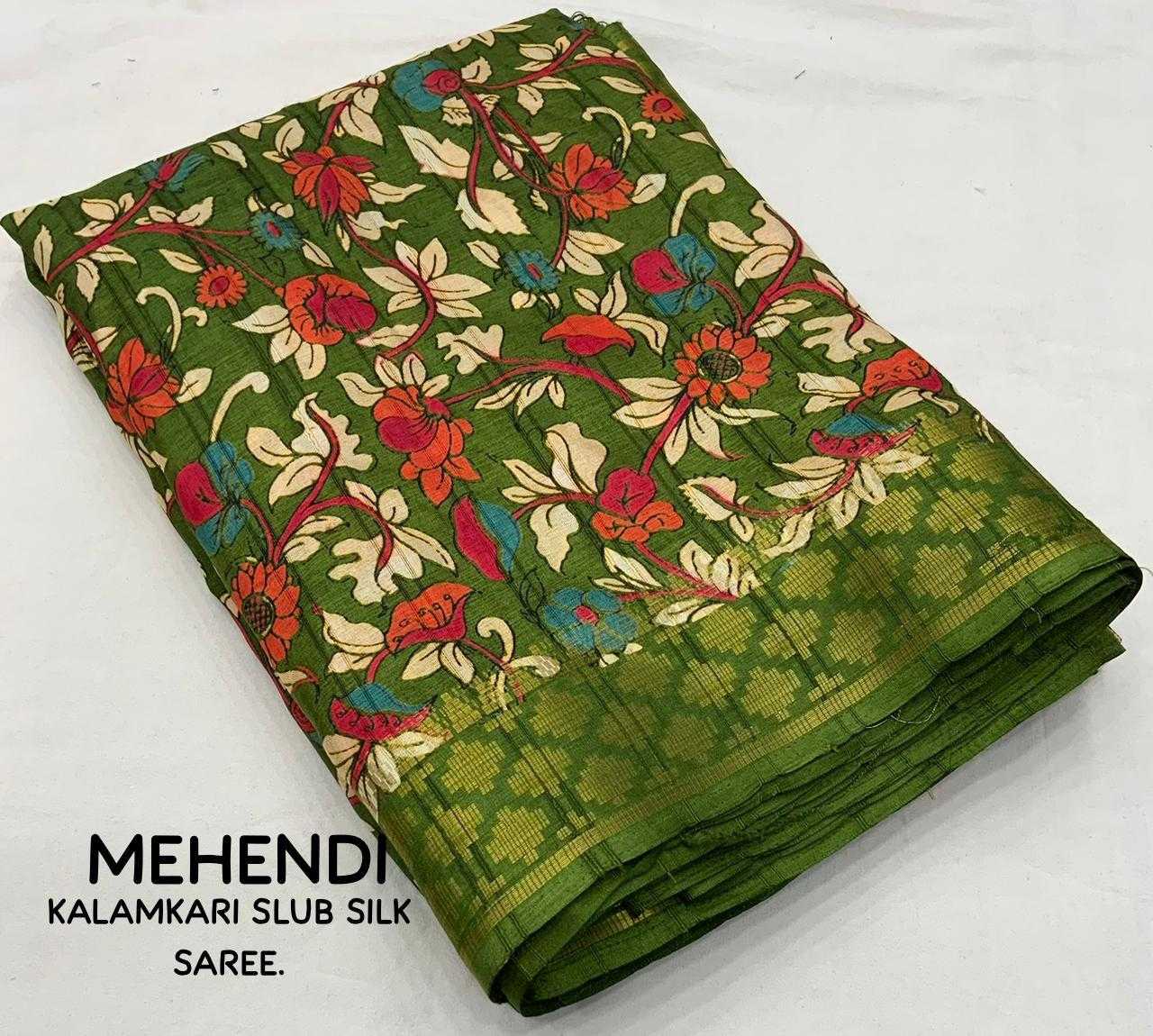 Quality- soft slub silk kalamkari printed saree with jacq woven zari border. Blouse- runing slub silk blouse. Rate- 620+ship Top trusted quality |