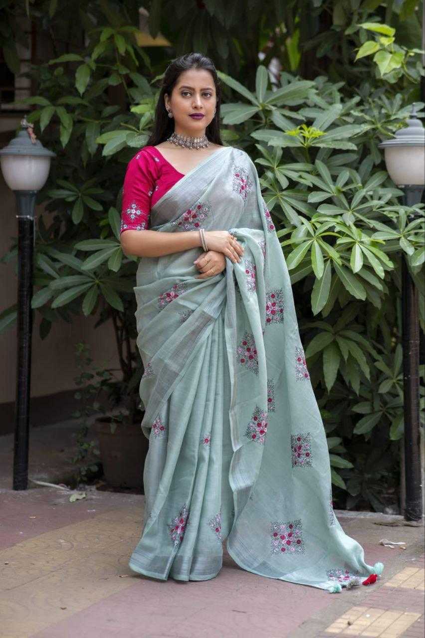 best seller back in stock New emboridary linen catlog KC- LOTTERY LINEN. Cotton Tassels on pallu. Emboridary butta on saree. Blouse- perfectly matched phantom silk with emboridary. Length- Rate - 900+ship Top trusted quality |