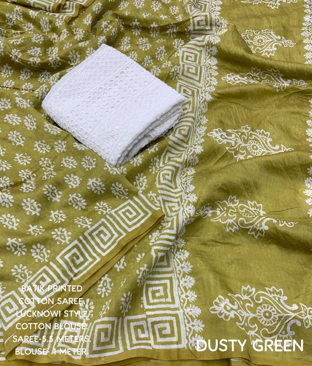 KC- magic cotton Quality- soft cotton saree with handblock batik prints Cotton tassels on pallu. Blouse - cotton lucknowi style emboridary blouse. Rate - 1050+ship Top premium quality |