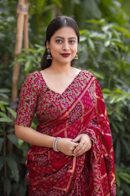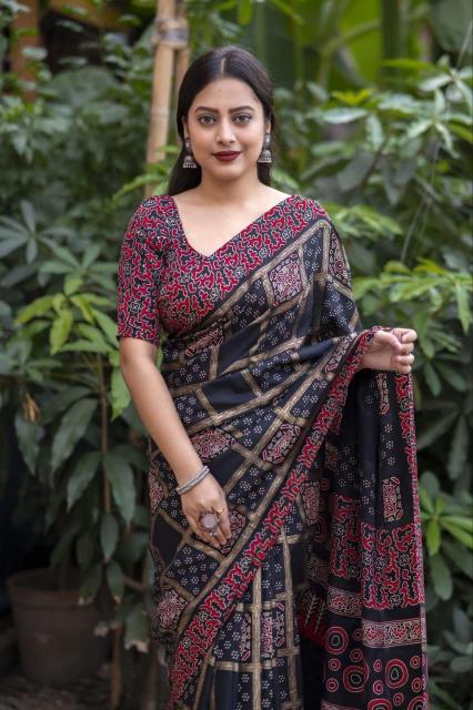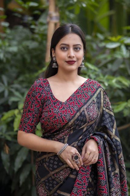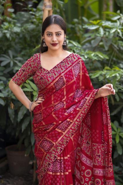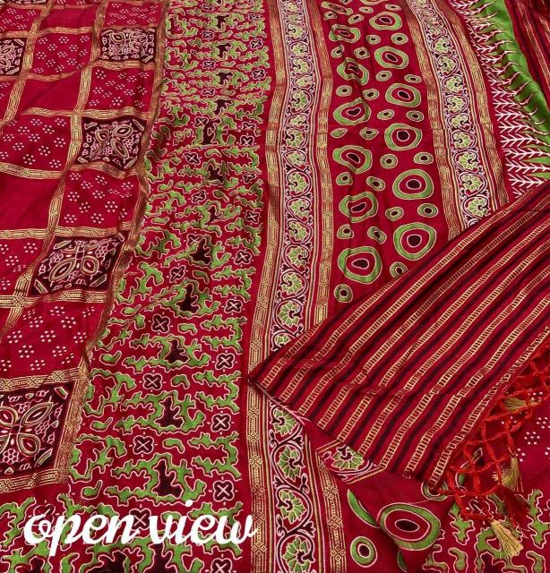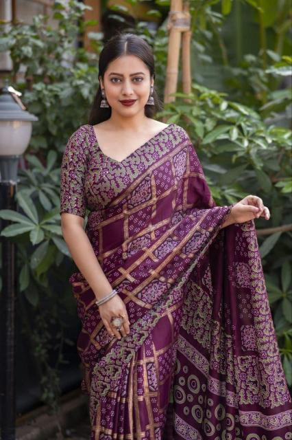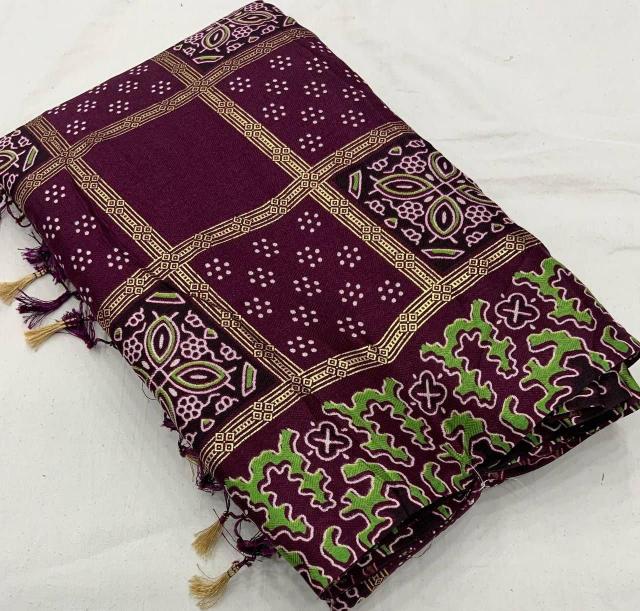 pr kc pashmina silk beautiful ajrakh style soft silk women saree