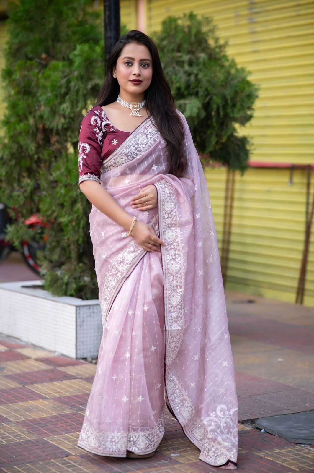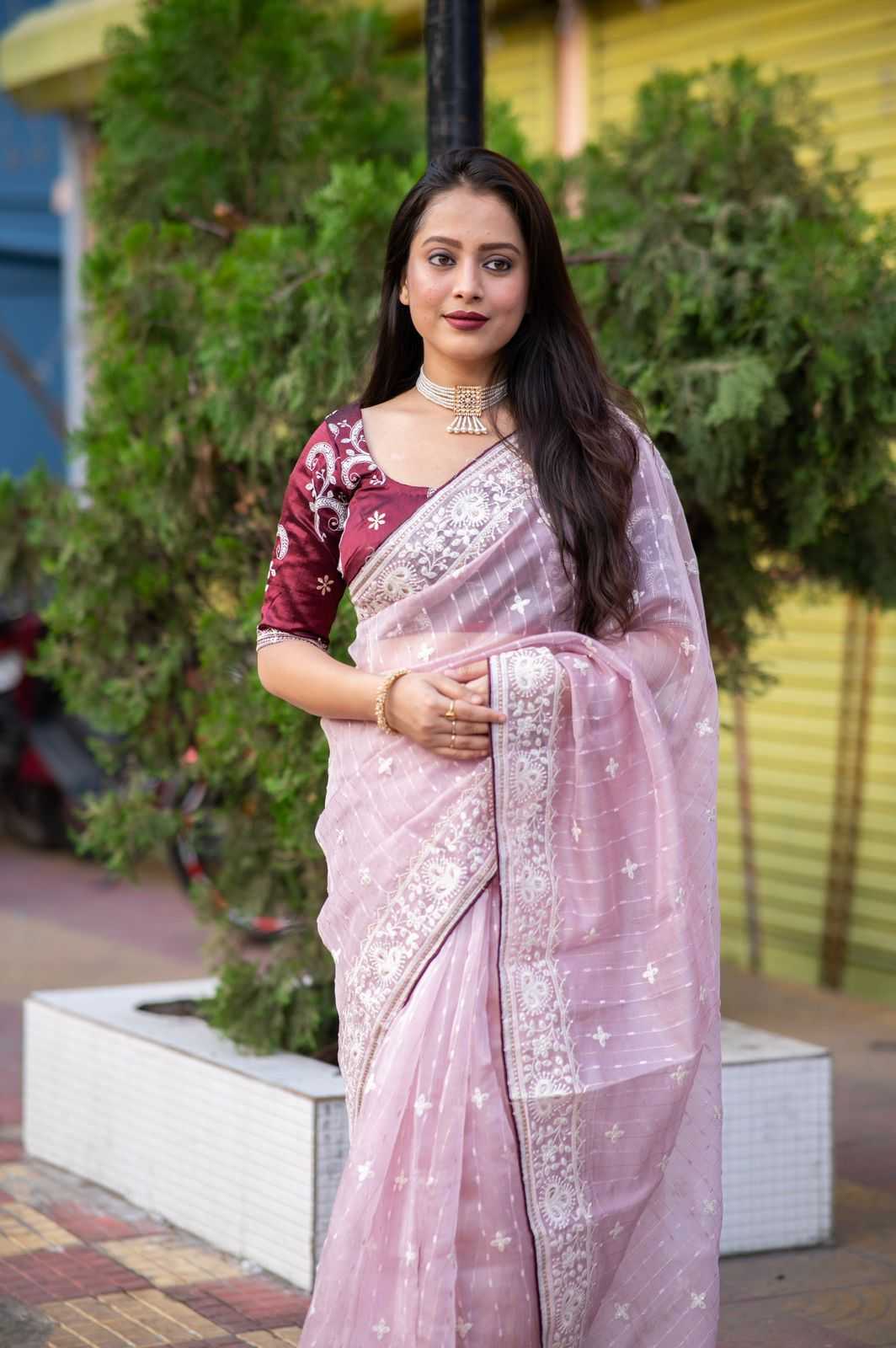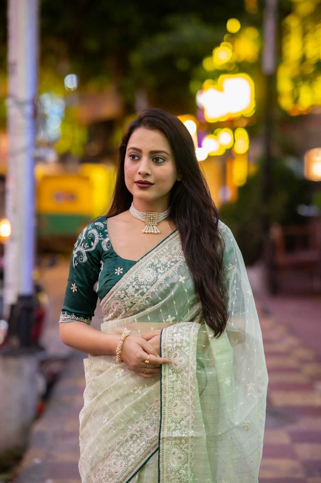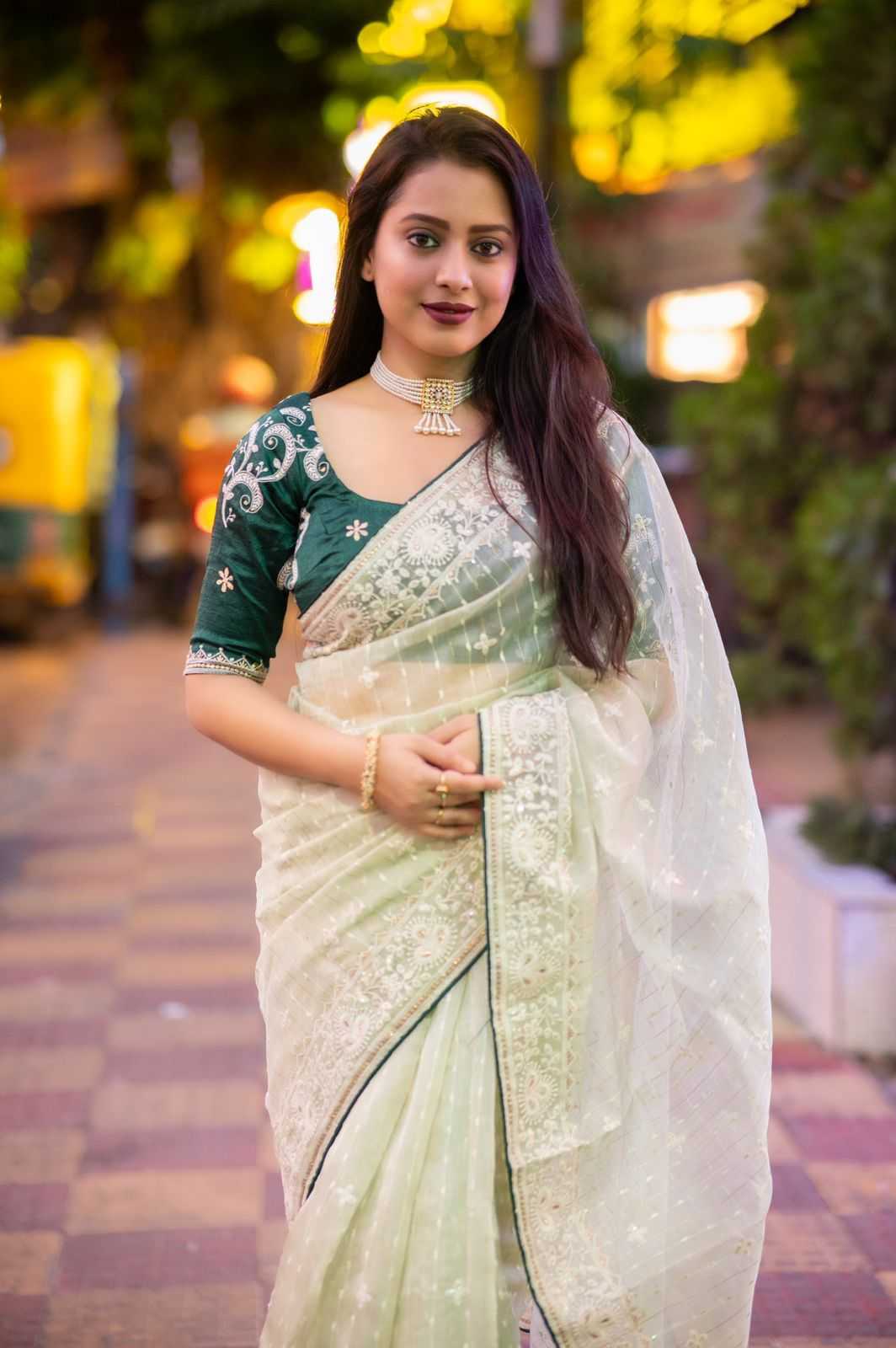 new arrivals New beautiful perimum organza catalog #organzaintrend KC- ritika organza. Quality- soft organza saree with with allover woven zari linings and woven rice shaped white thread. Specialty- white thread and sequence embroidery with c-pallu concept. Blouse- up-tone phantom silk with white thread and sequence embroidery. Rate- 1450+ship Top trusted quality |
