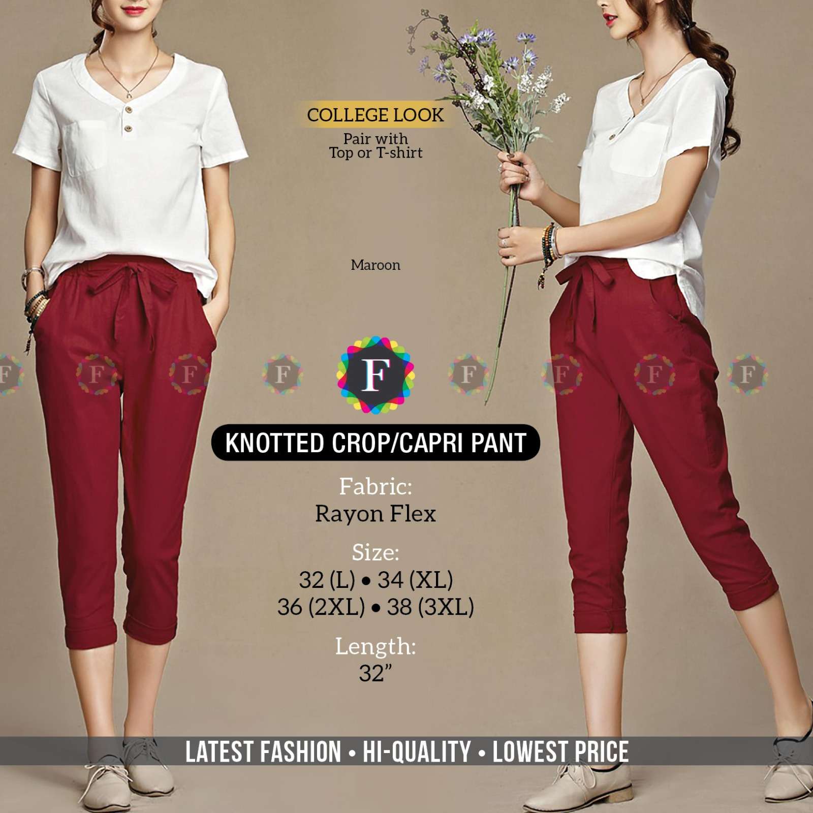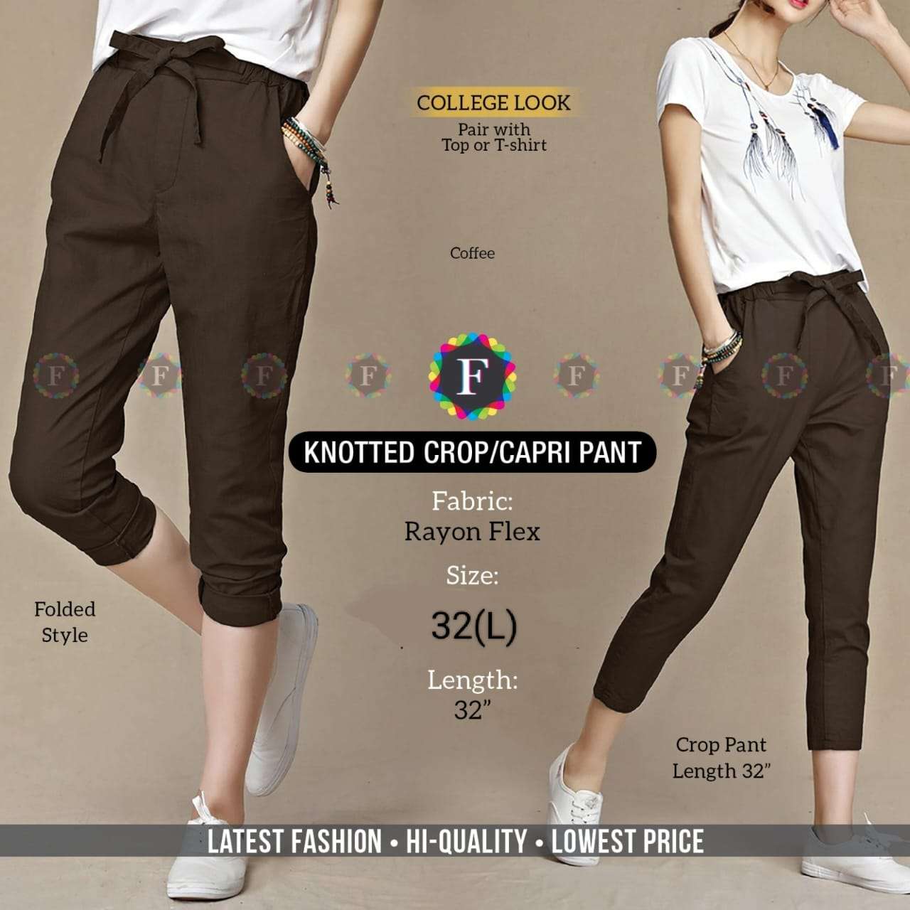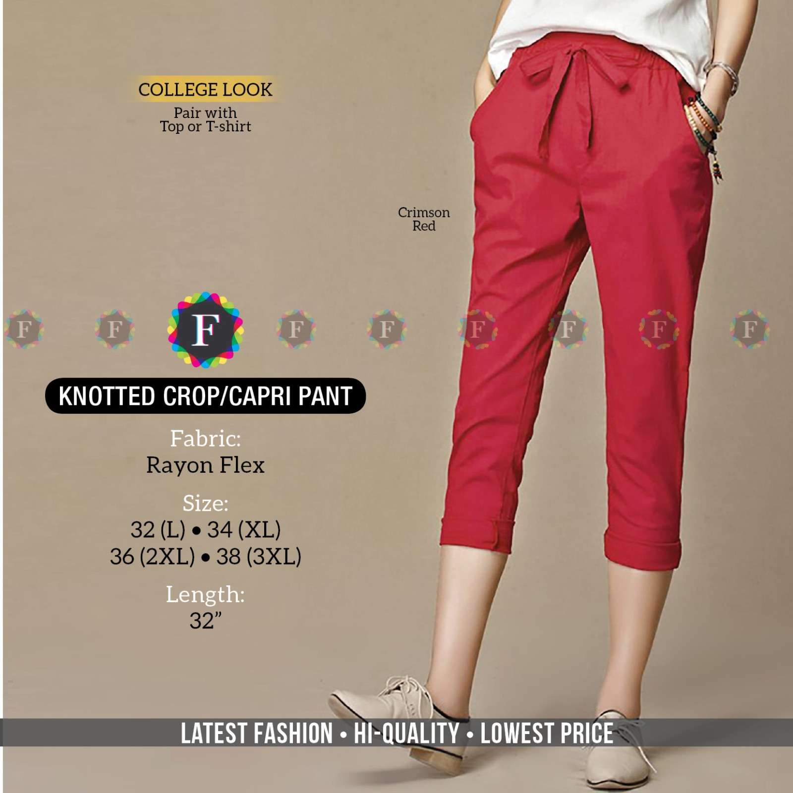 BOOK CATALOGUE PR KNOTTED CROP CAPRI PANT ON KRISHNA CREATION. CALL ON +91-8866778727.