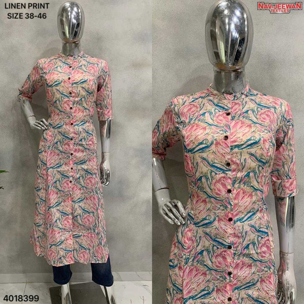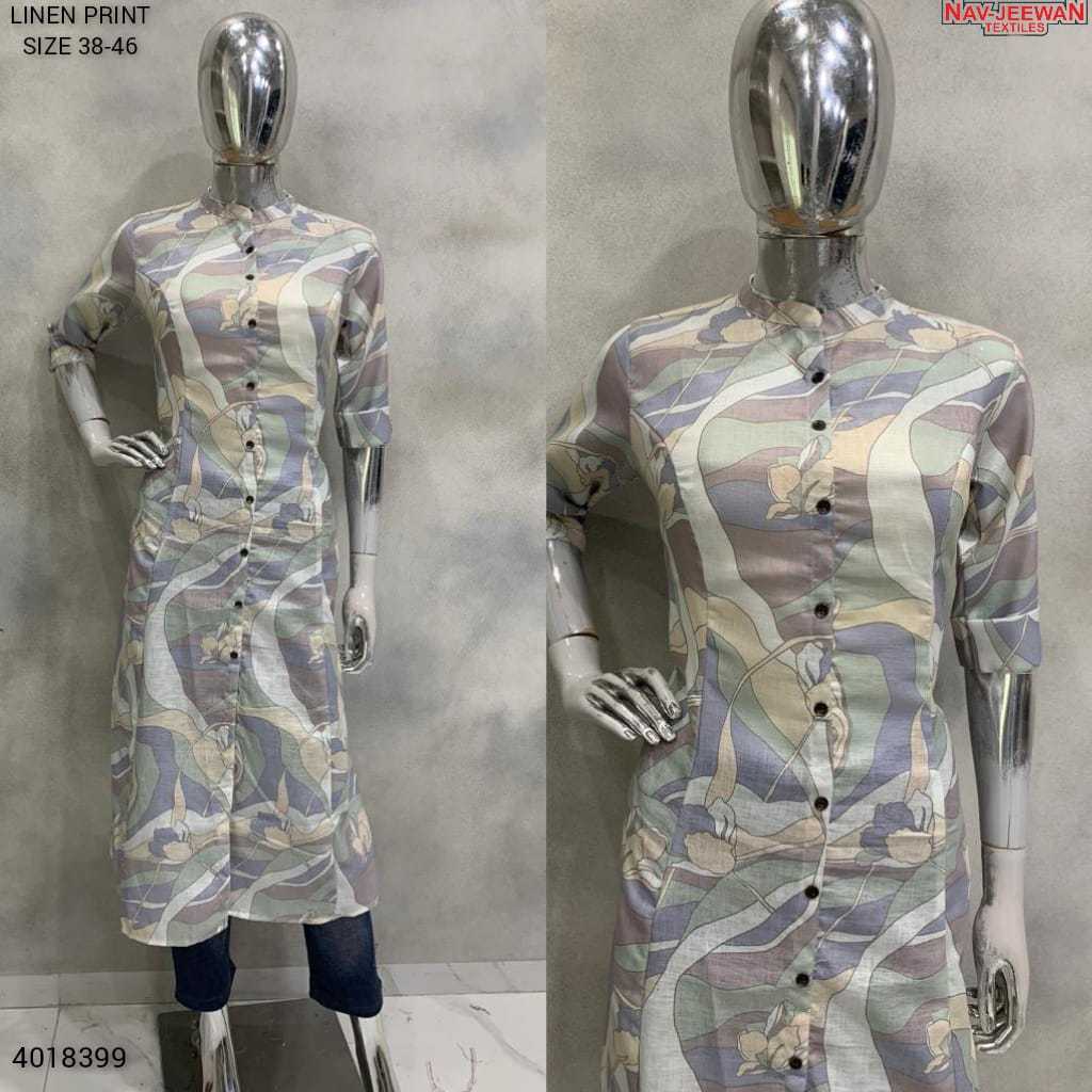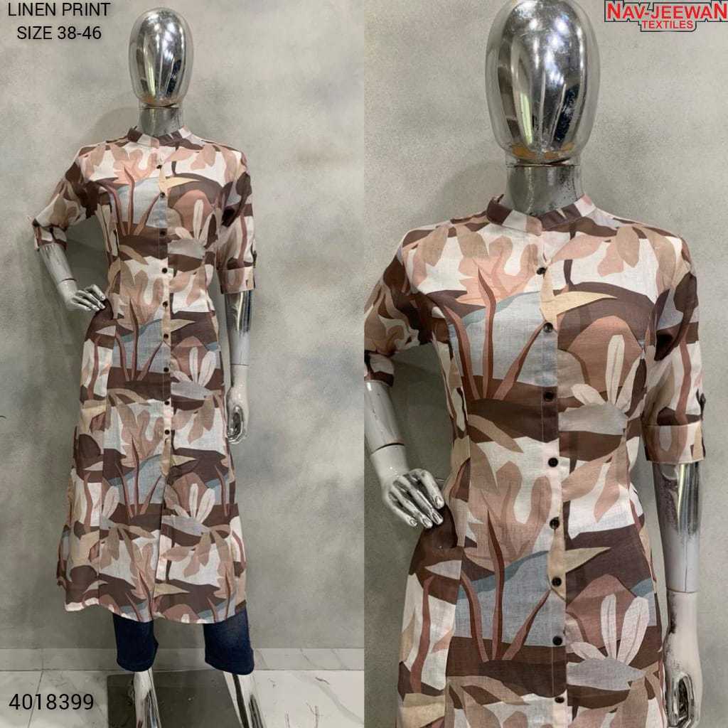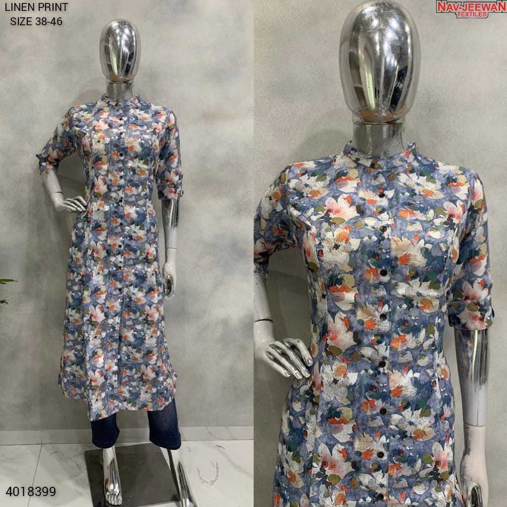 pr linen print 38-46 fancy simple ladies kurti combo set