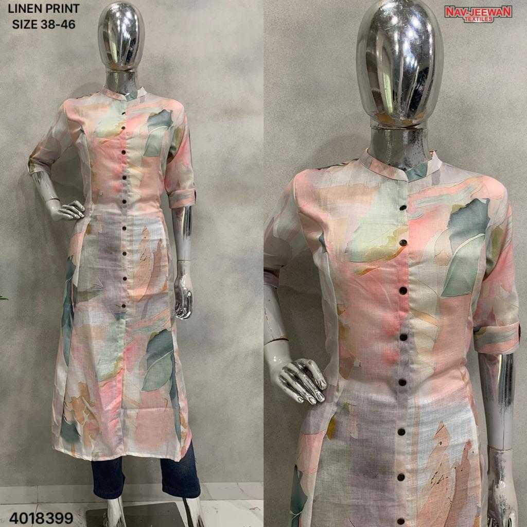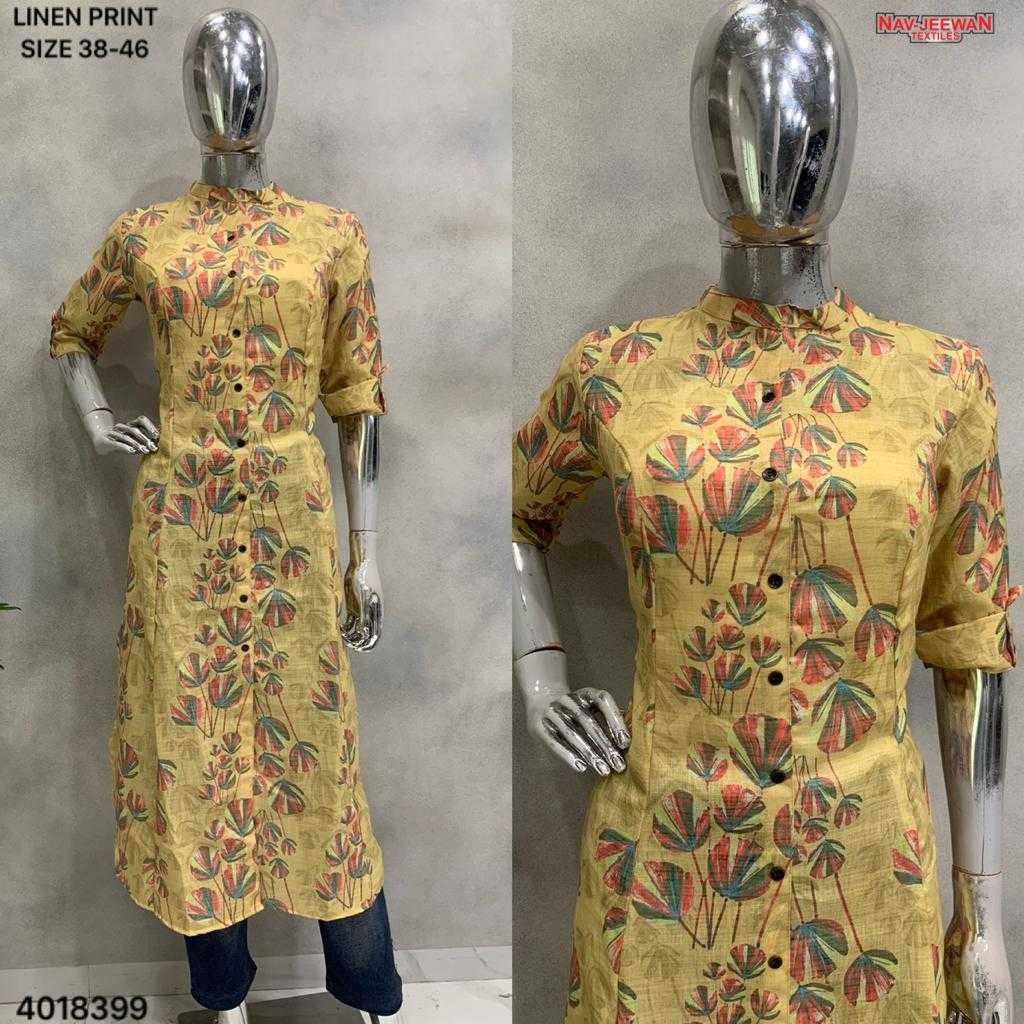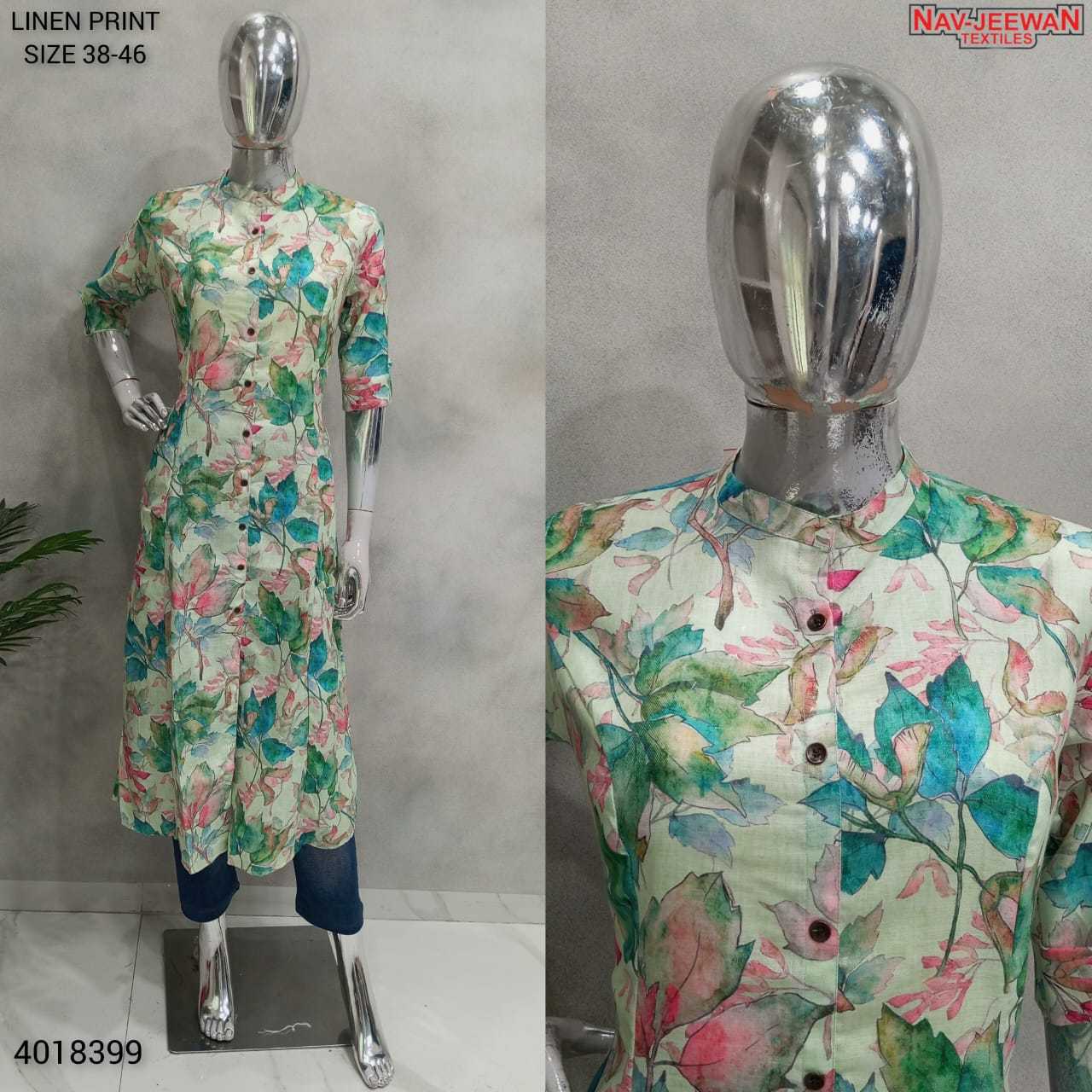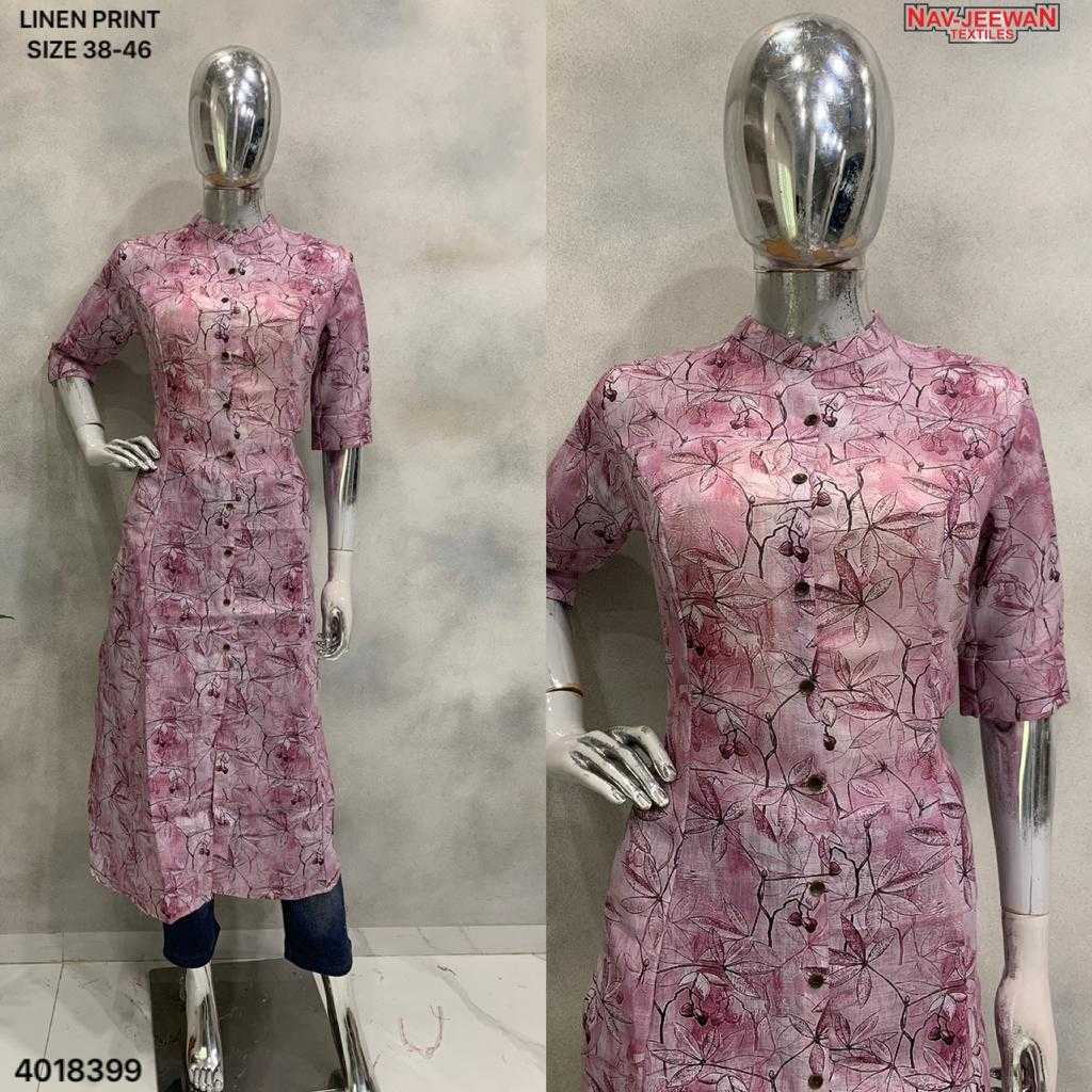 pr linen print 38-46 fancy simple ladies kurti combo set