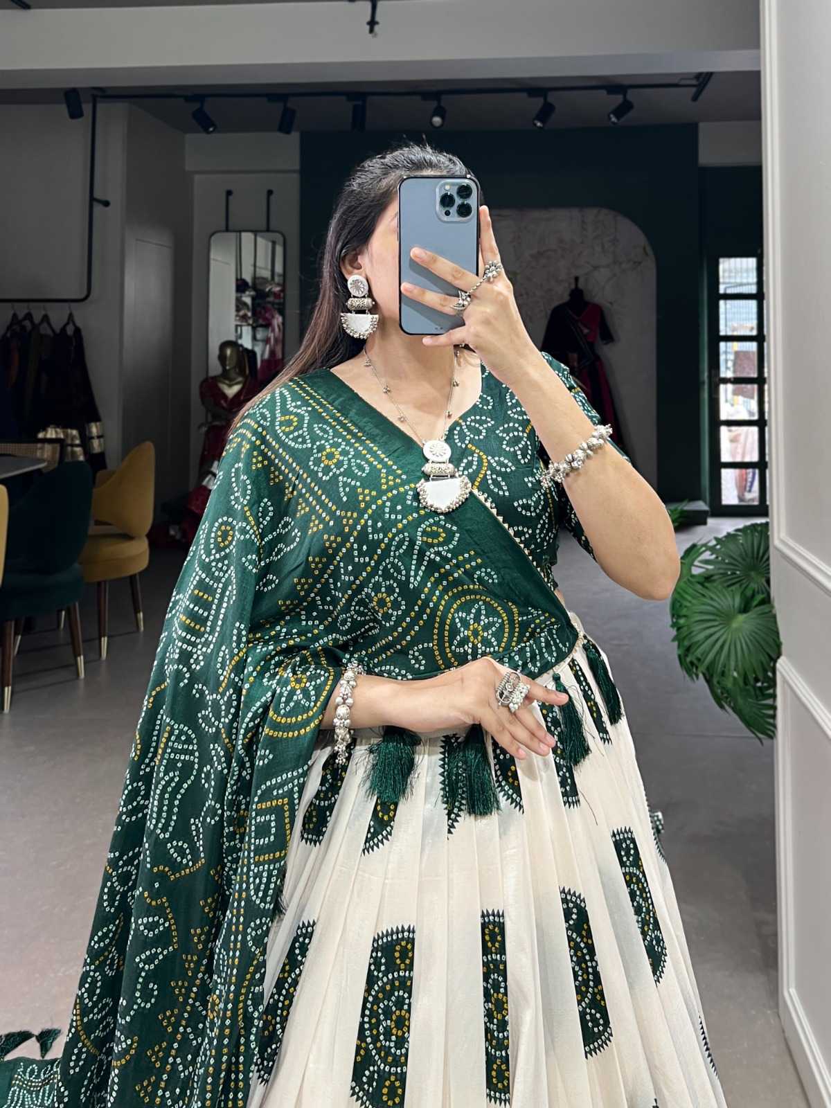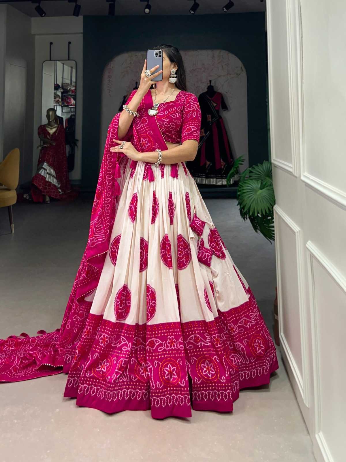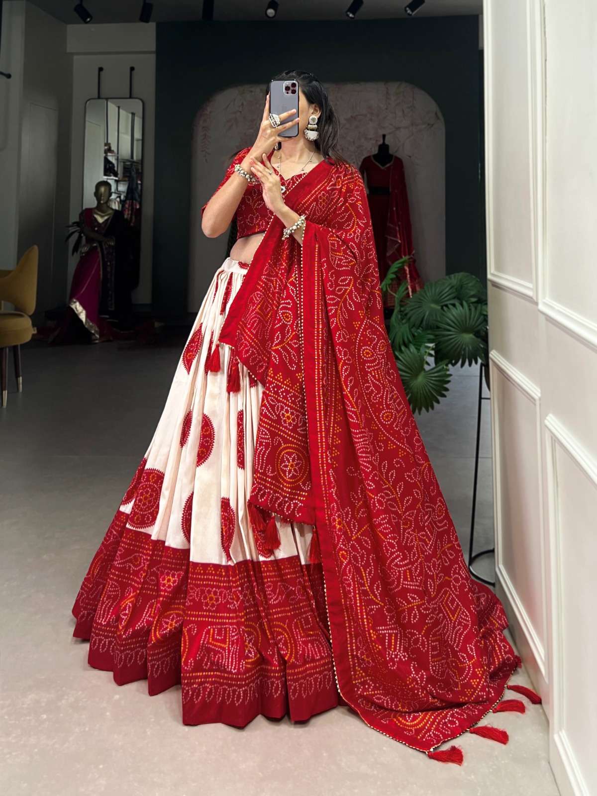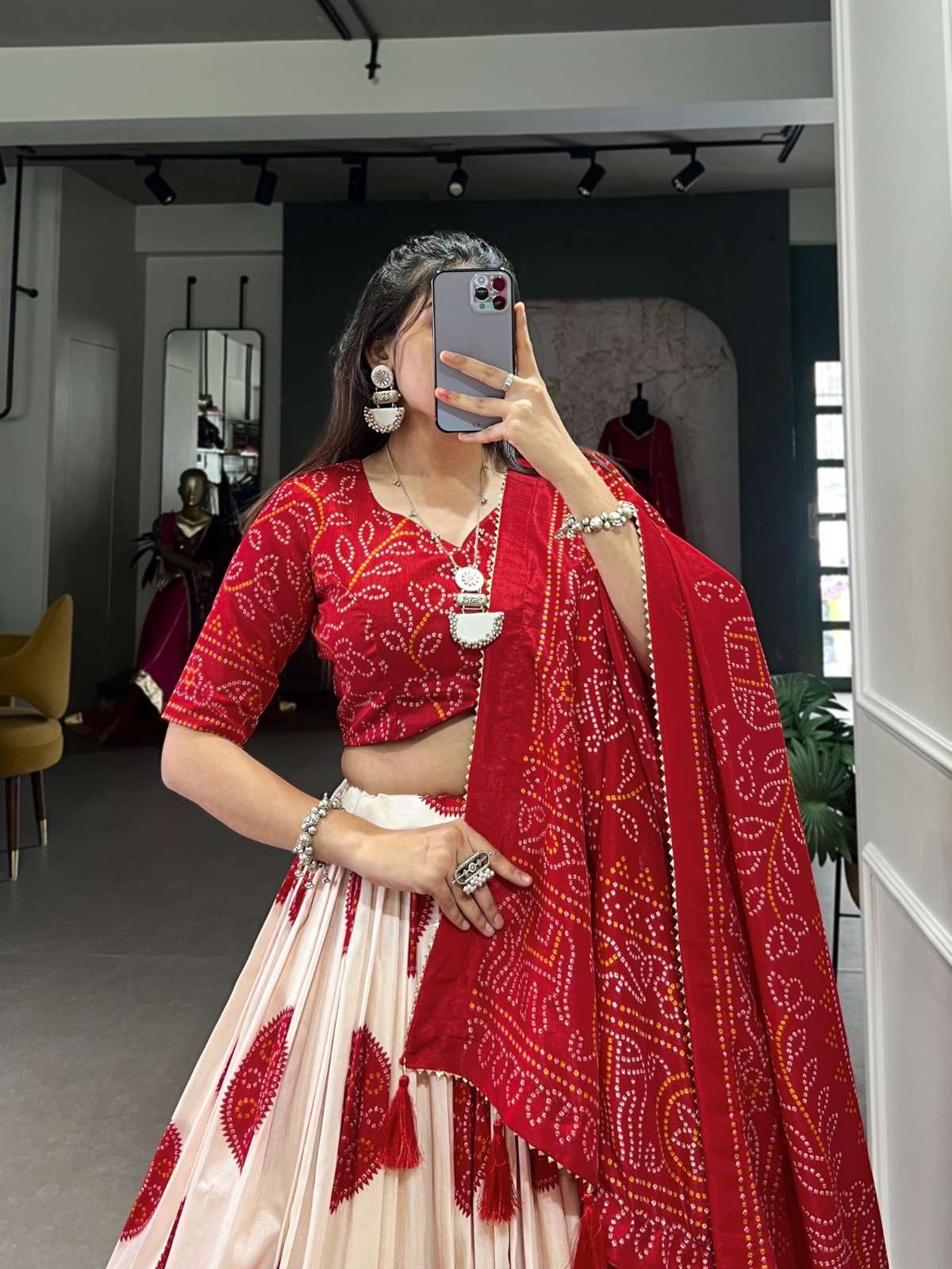 pr lnb1229 stylish tussar silk bandhej print stitch lehenga unstitch choli