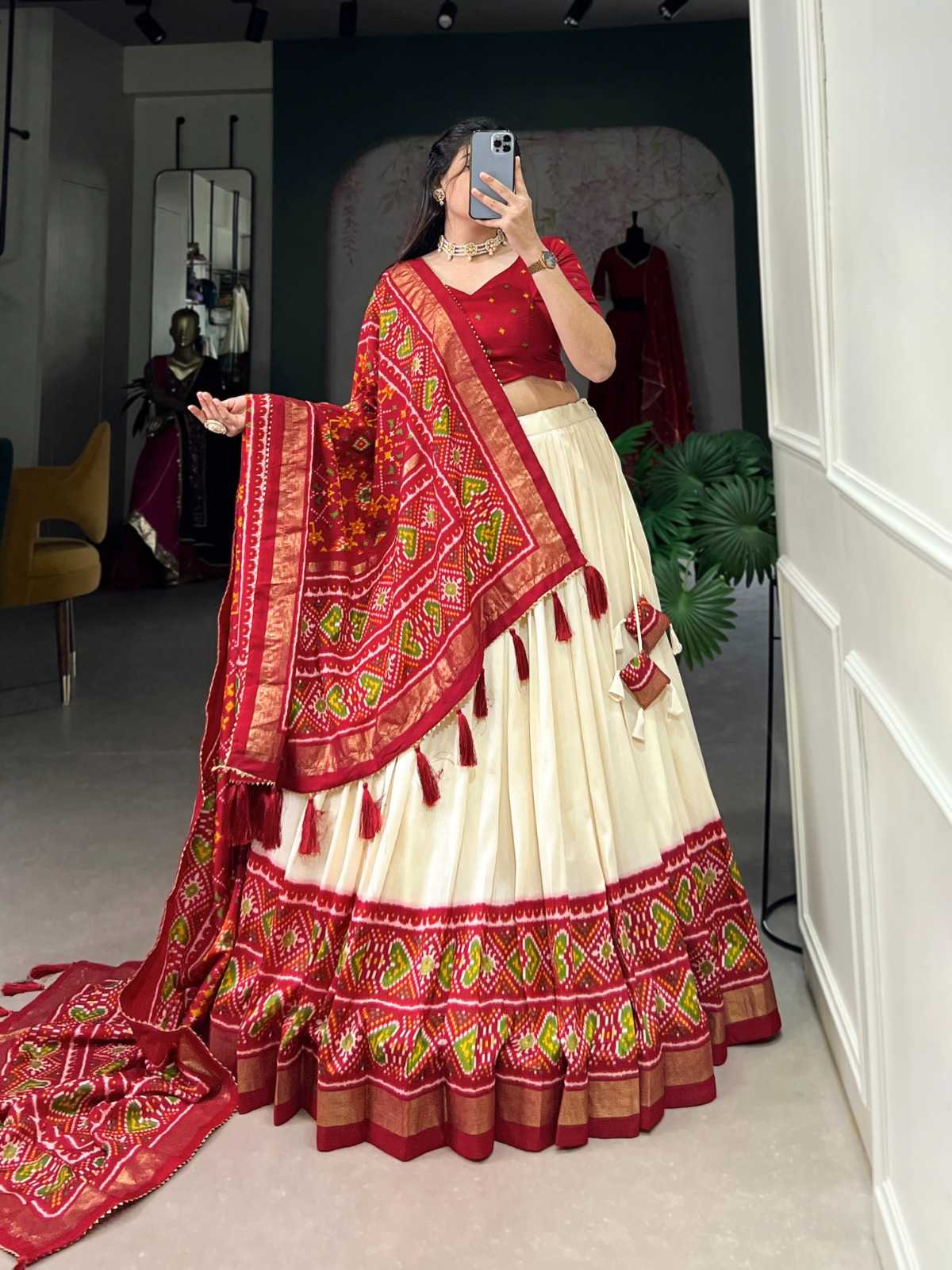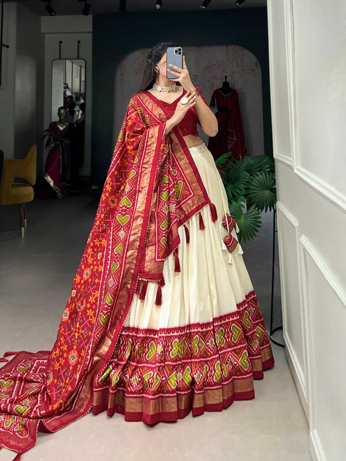 pr lnb1230 tussar silk festive patola print stitch lehenga unstitch choli