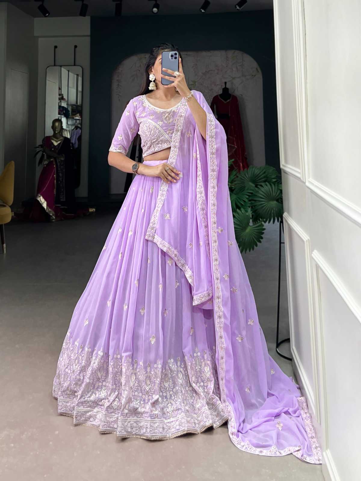 pr lnb1407 georgette embroidery work stitch lehenga unstitch choli
