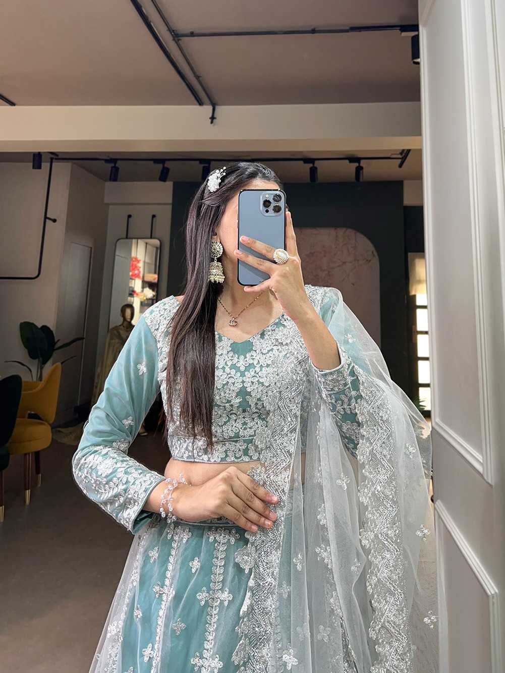 pr lnb1538sbl elegant net stitch lehenga with unstitch blouse dupatta single design