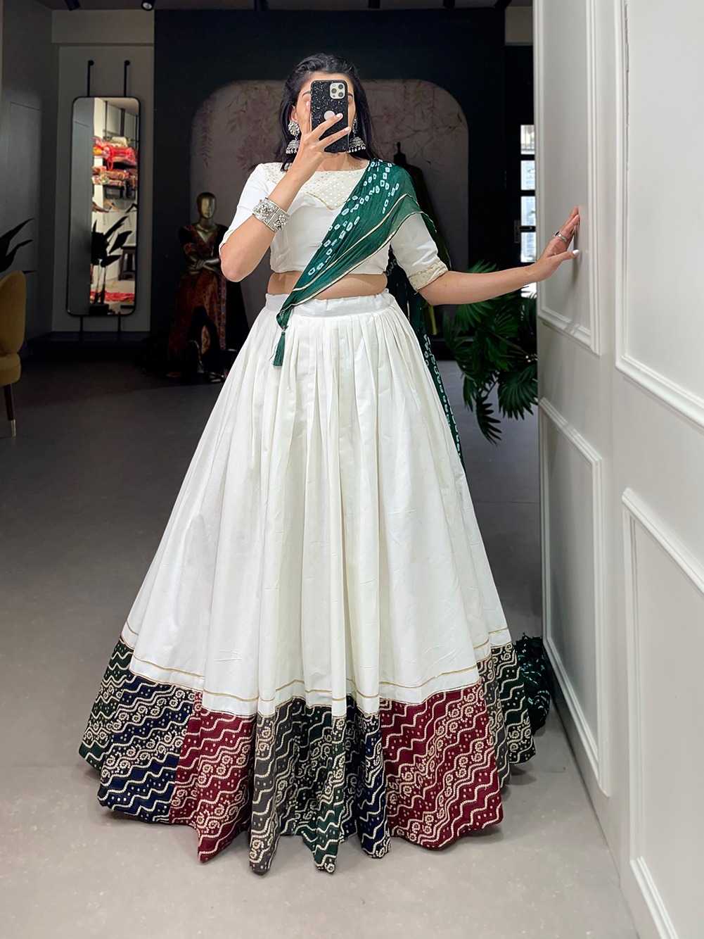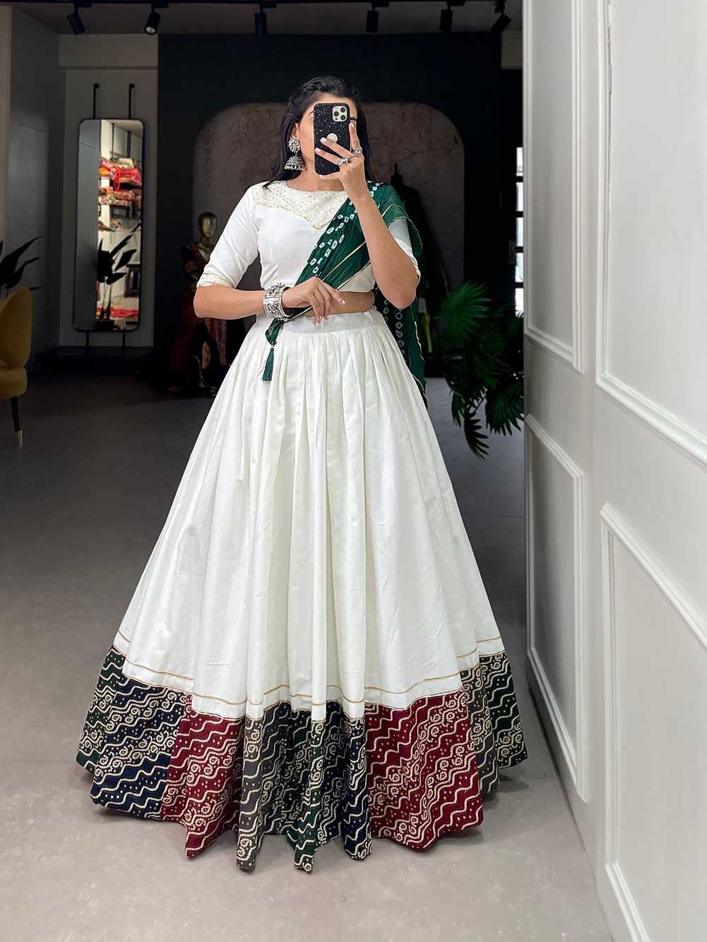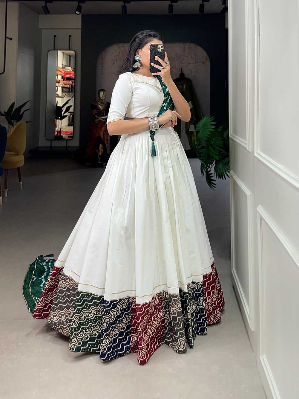pr lnb1605 new design white printed full stitch garba choli Navratri Collection