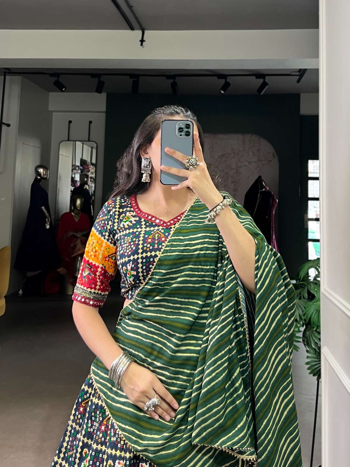 🌷Navratri Collection 2025 🌷 Festival that highlight the colors of life with tradition of indian culture. Here is beautiful chaniyacholi of color combinations with foil print work. 🪸 LNB1638GRN Lehenga (Stitched) Blouse (Stitched) Dupatta Package Contain : Lehenga, Blouse, Dupatta, Drawstring , Tassels Weight : 0.940 kg |