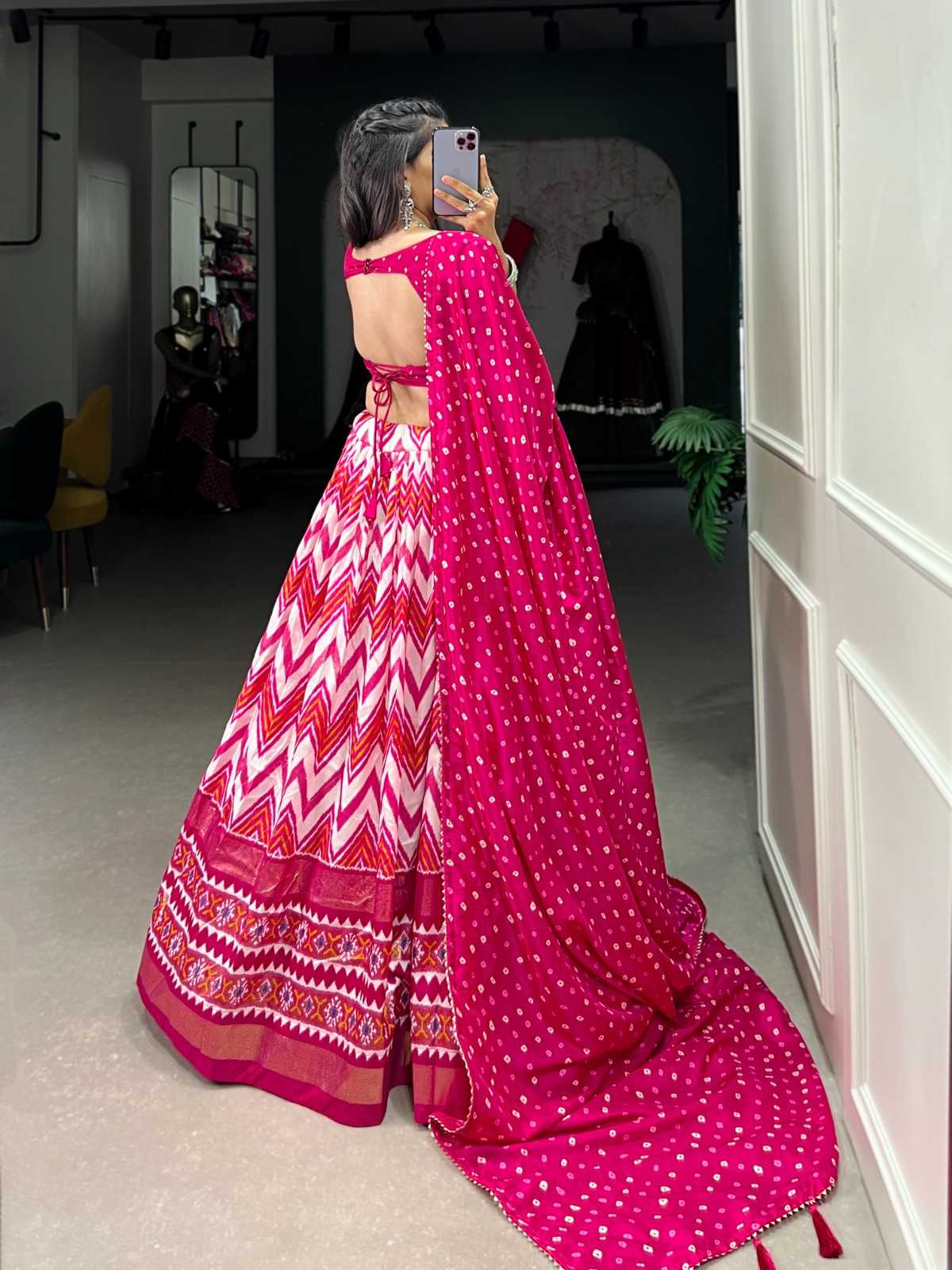 pr lnb1683 tussar silk leheriya with foil print fancy stitch lehenga with unstitch blouse