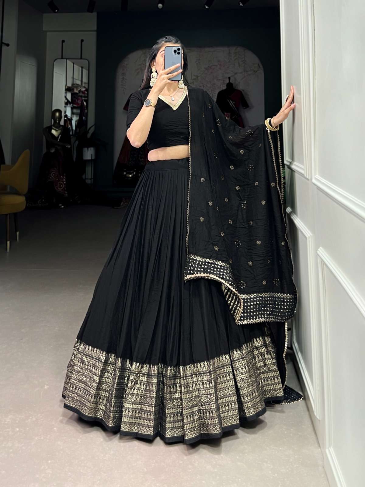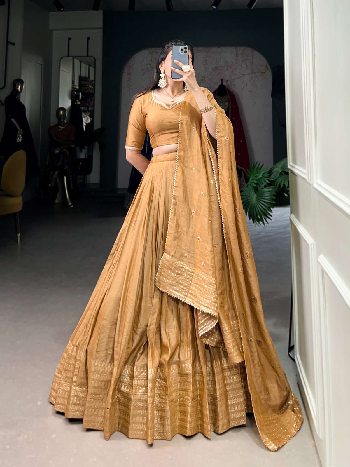 🌷Lehenga choli🌷 Crafted for Grace and Beauty: Pure Chanderi Plain Lehenga with Intricate Zari Work Border, Accompanied by Sequin Embellished Dupatta 💓 LNB1906PNK Lehenga (Stitched) Blouse (Unstitched) Dupatta Package Contain : Lehenga, Blouse, Dupatta, Drawstring with Zip Weight : 0.860 KG Rate : 1150/- +gst |