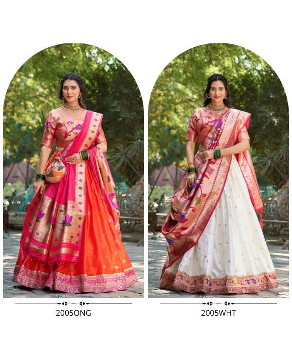 🌷Paithani collection 🌷 Who says you can't be trendy and traditional at the same time 🤷🏻♀️ LNB2005ONG Lehenga(Stitched) Blouse(Unstitched) Dupatta Batwa : Jacquard (Weaving Work) Package Contain : Lehenga, Blouse, Dupatta, Batwa, Drawstring, Tassels Weight : 1.500 kg Rate : 2250/- |