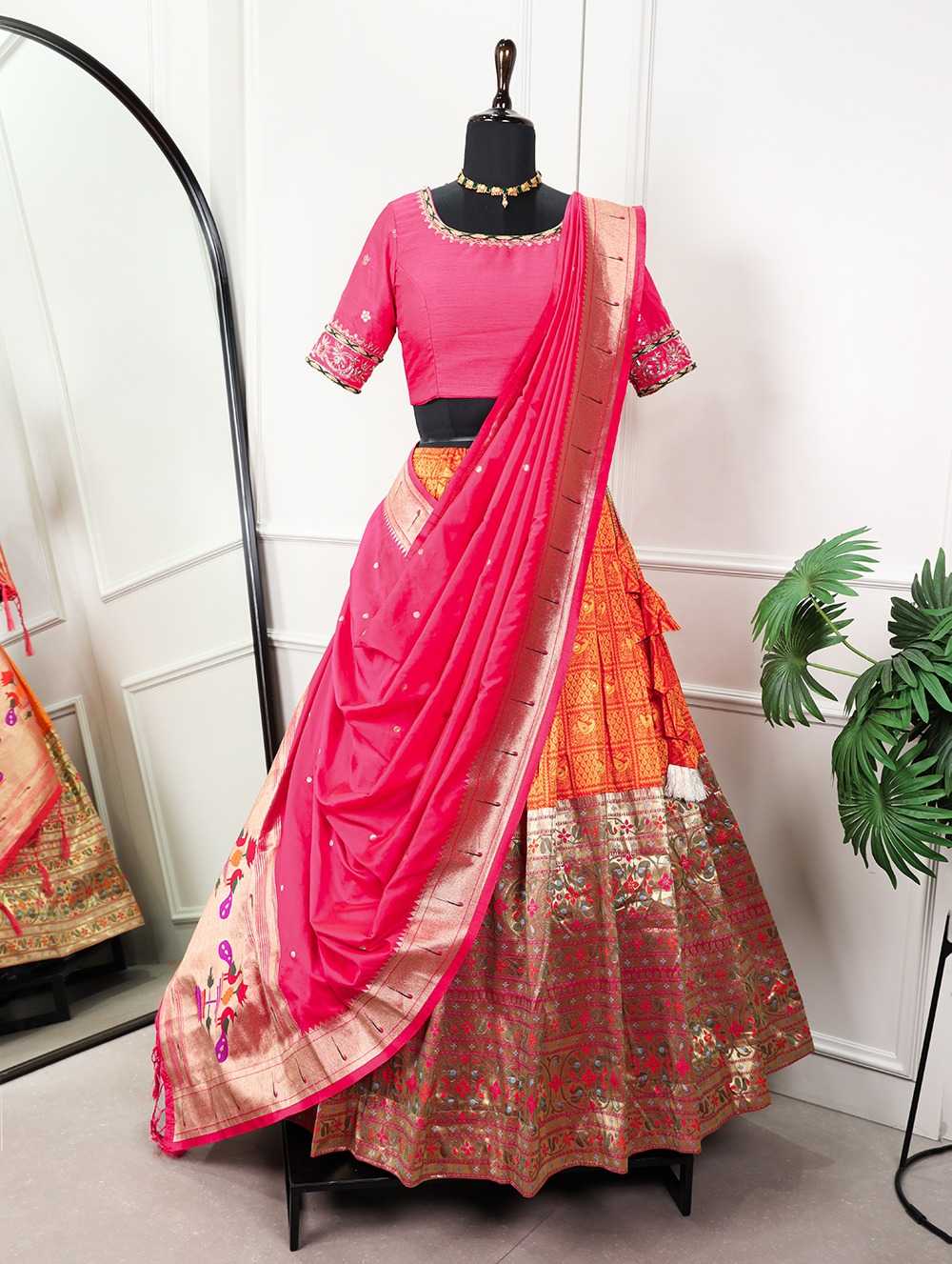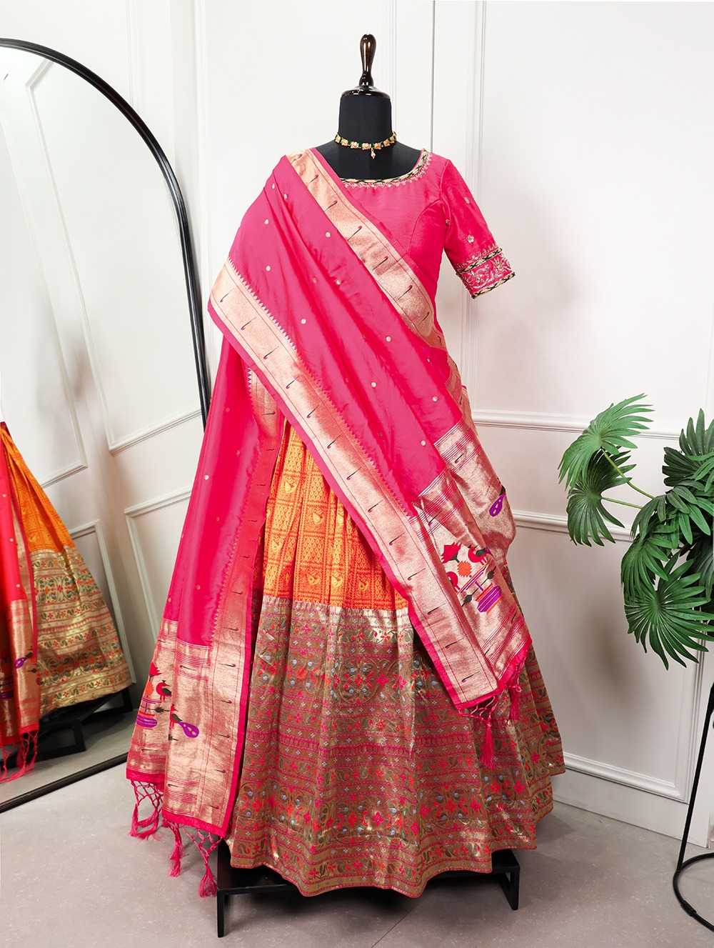 pr lnb2027ong single design paithani stitch lehenga with unstitch blouse dupatta