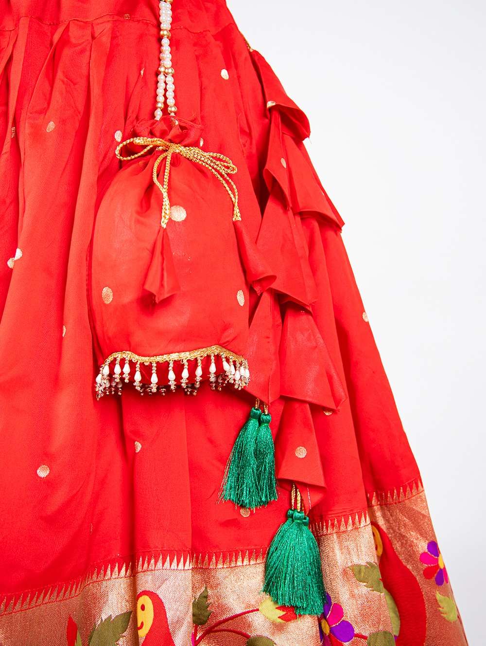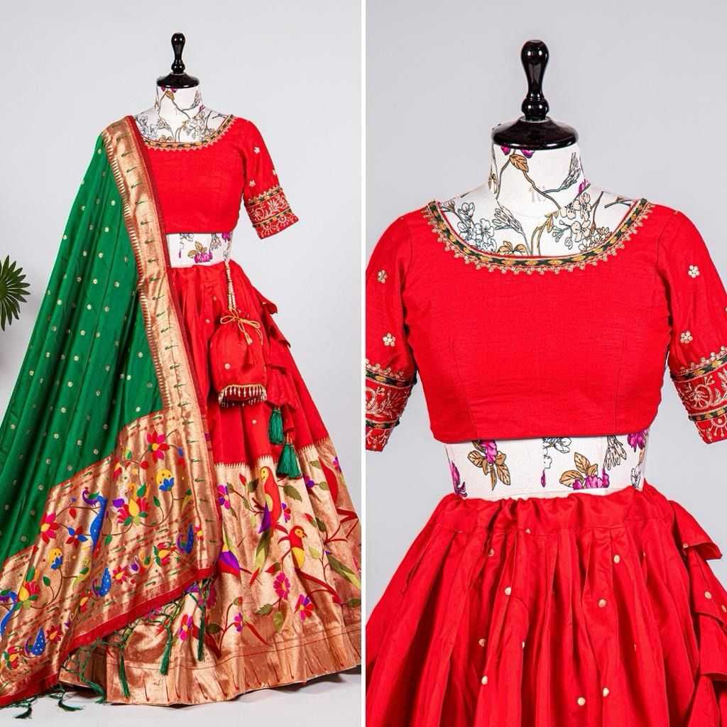 pr lnb2035red paithani silk beautiful stitch lehenga with unstitch blouse dupatta single design