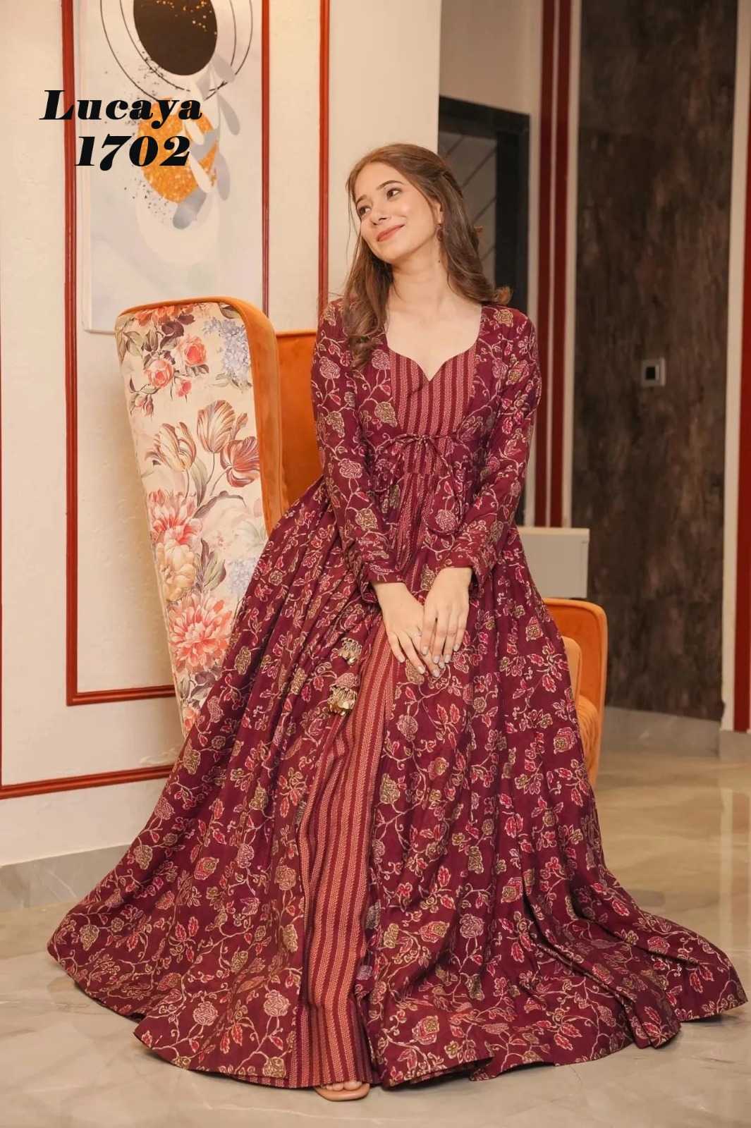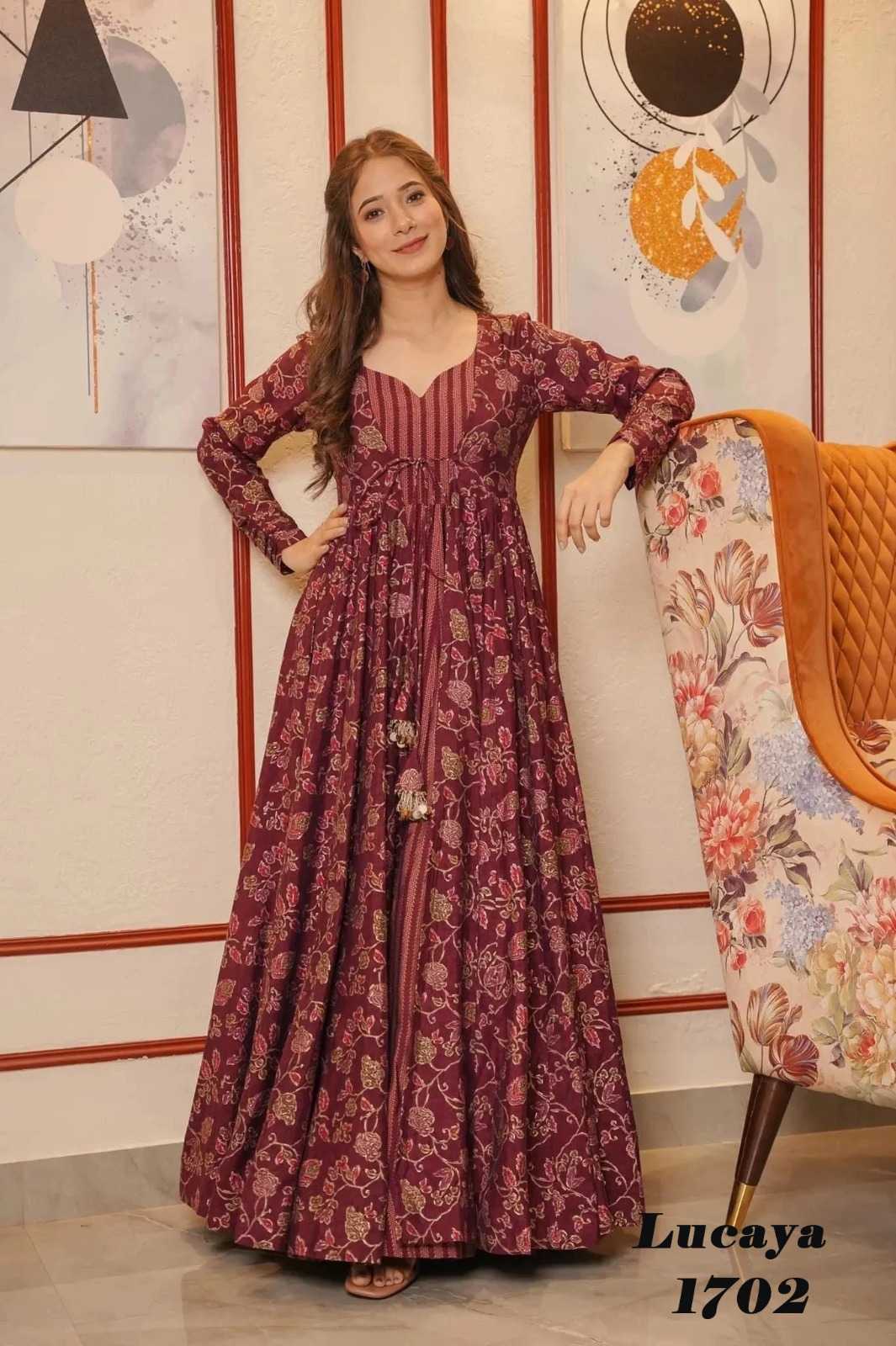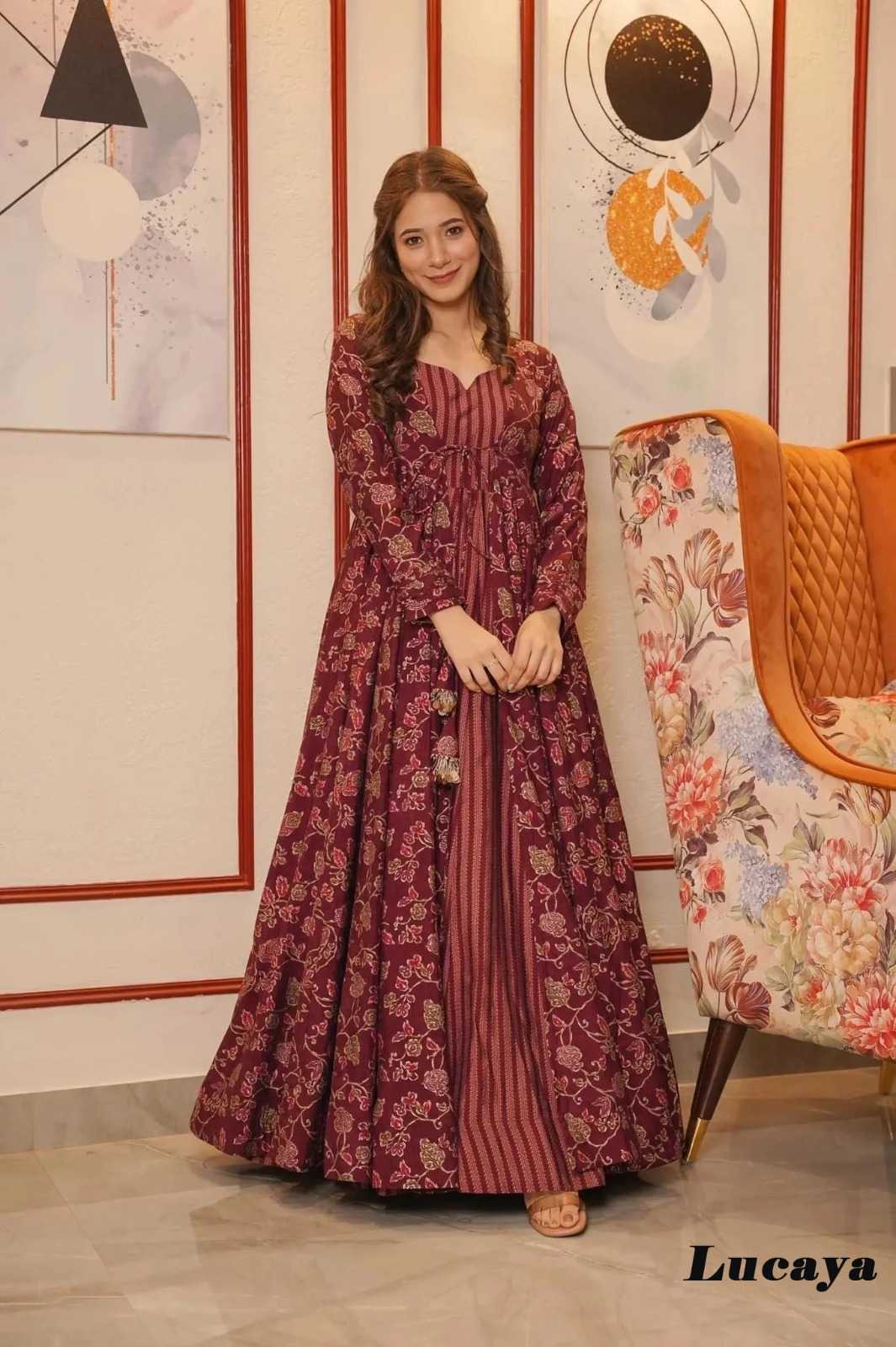 pr lucaya vol 17 readymade western wear long gown with shrug occasion attire