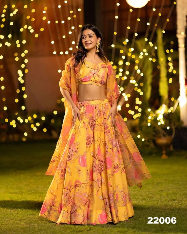 Product details Design no :- 22001 to 22006 Lehenga (Stitched) Blouse (stitched) Dupatta Package Contain : Lehenga, Blouse, Dupatta Design no :- 22007 Lehenga (Stitched) Blouse (stitched) Shrug Shrug Length : 53”+inch Package Contain : Lehenga, Blouse, shrug Size :- XS(34),S(36),M(38),L(40),XL(42),XXL(44),3XL(46),4XL(48),5XL(50),6XL(52) Stitched type:- Full stitched Style :- Festival Wear, Function, Ceremonial, Wedding Wear, Party Wear Rate – 1399/-