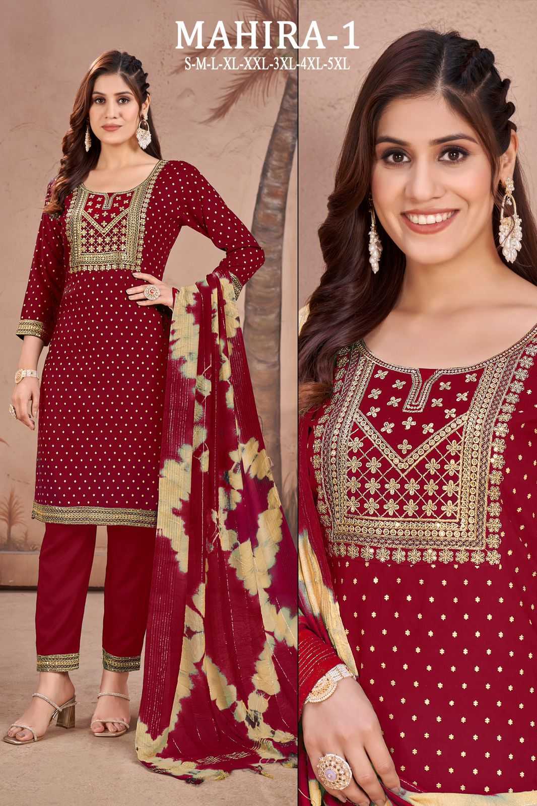 ——MAHIRA-1———. 🔝 HEAVY RAYON GOLD PRINT 👖 HEAVY RAYON FABRIC 🚩.HEAVY CORONA SHADED 🧵 EMBROIDERY SEQUENCE WORK 1-DESIGN S-M-L-XL-2XL-3XL-4XL-5XL RATE-600/ |