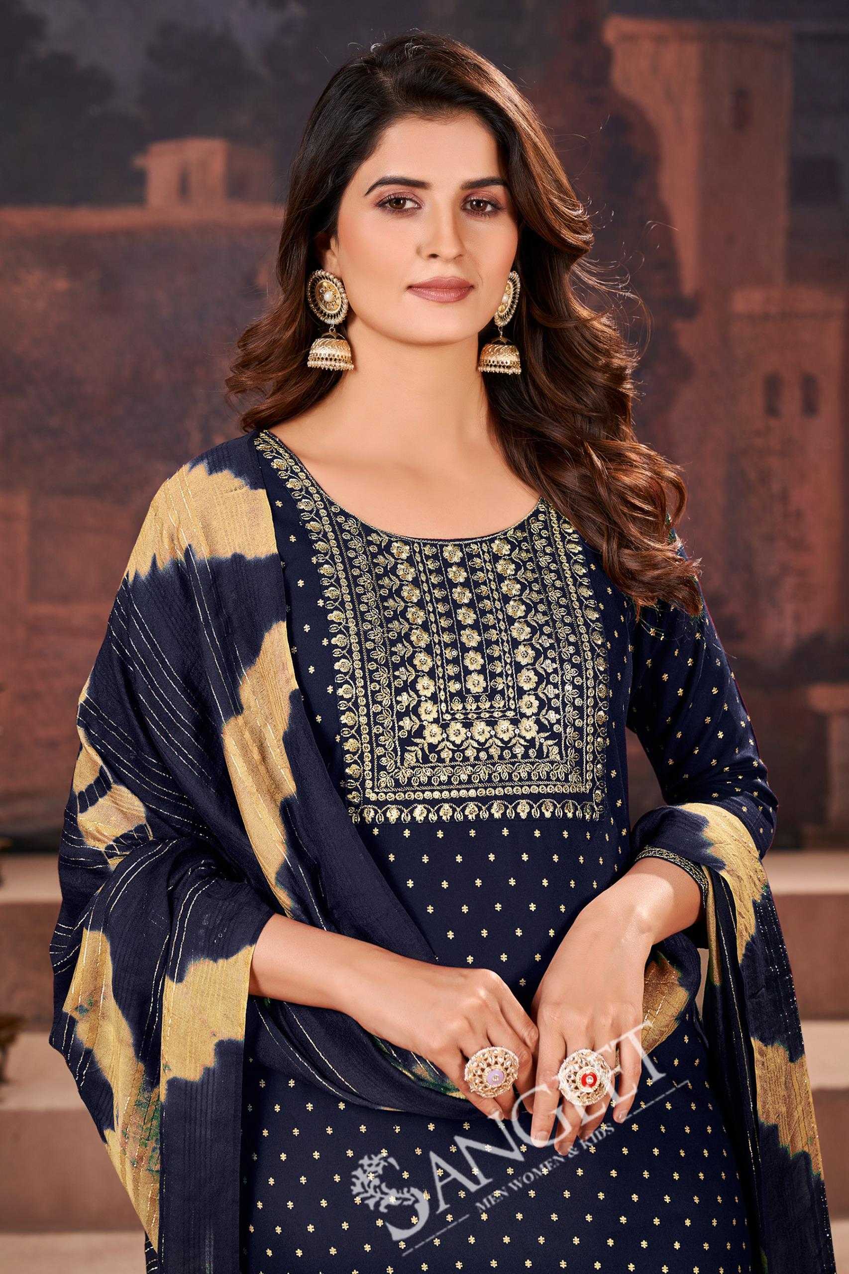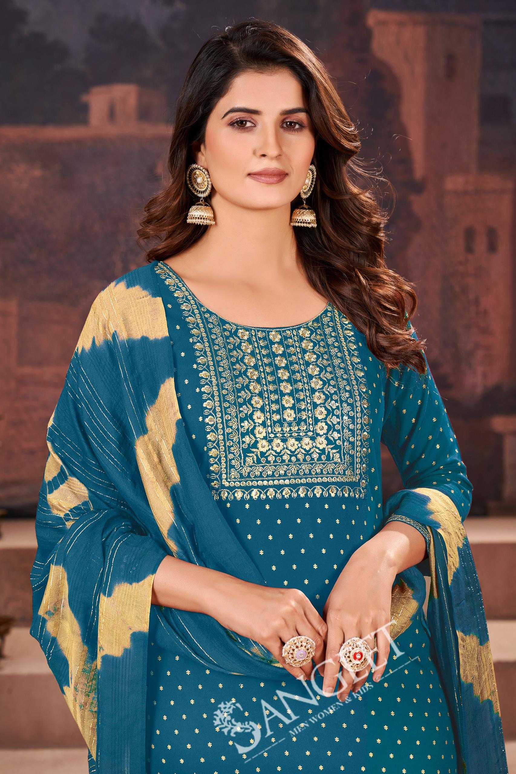 Brand - Sangeet 🔝 HEAVY RAYON GOLD PRINT 👖 HEAVY RAYON FABRIC 🚩.HEAVY CORONA SHADED 🧵 EMBROIDERY SEQUENCE WORK 1-DESIGN S-M-L-XL-2XL-3XL-4XL-5XL RATE-600/- per pcs |