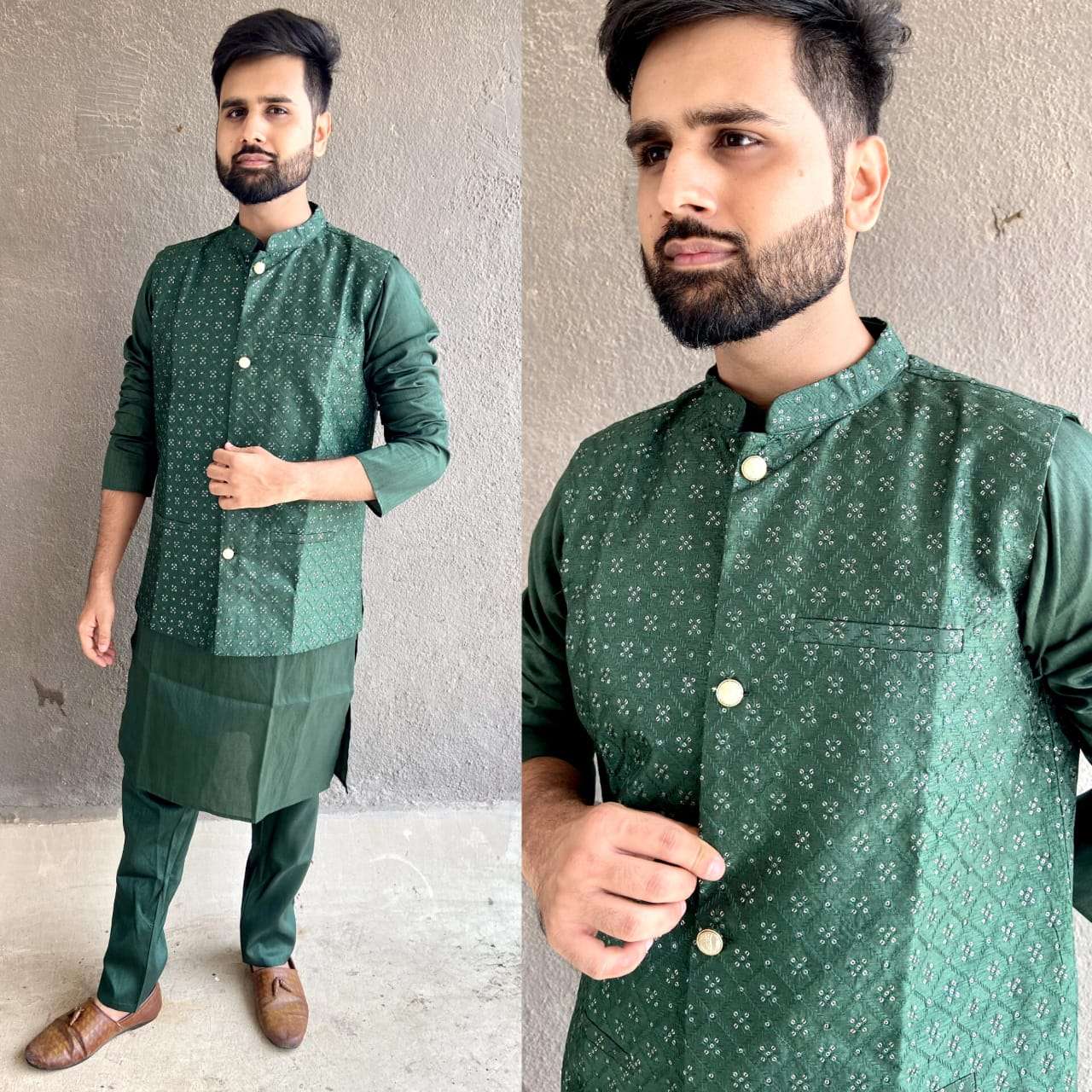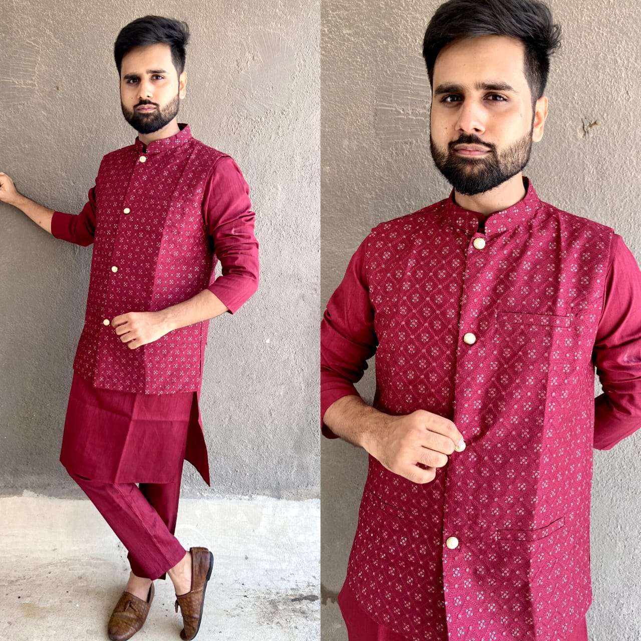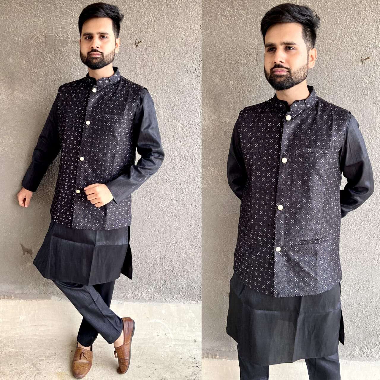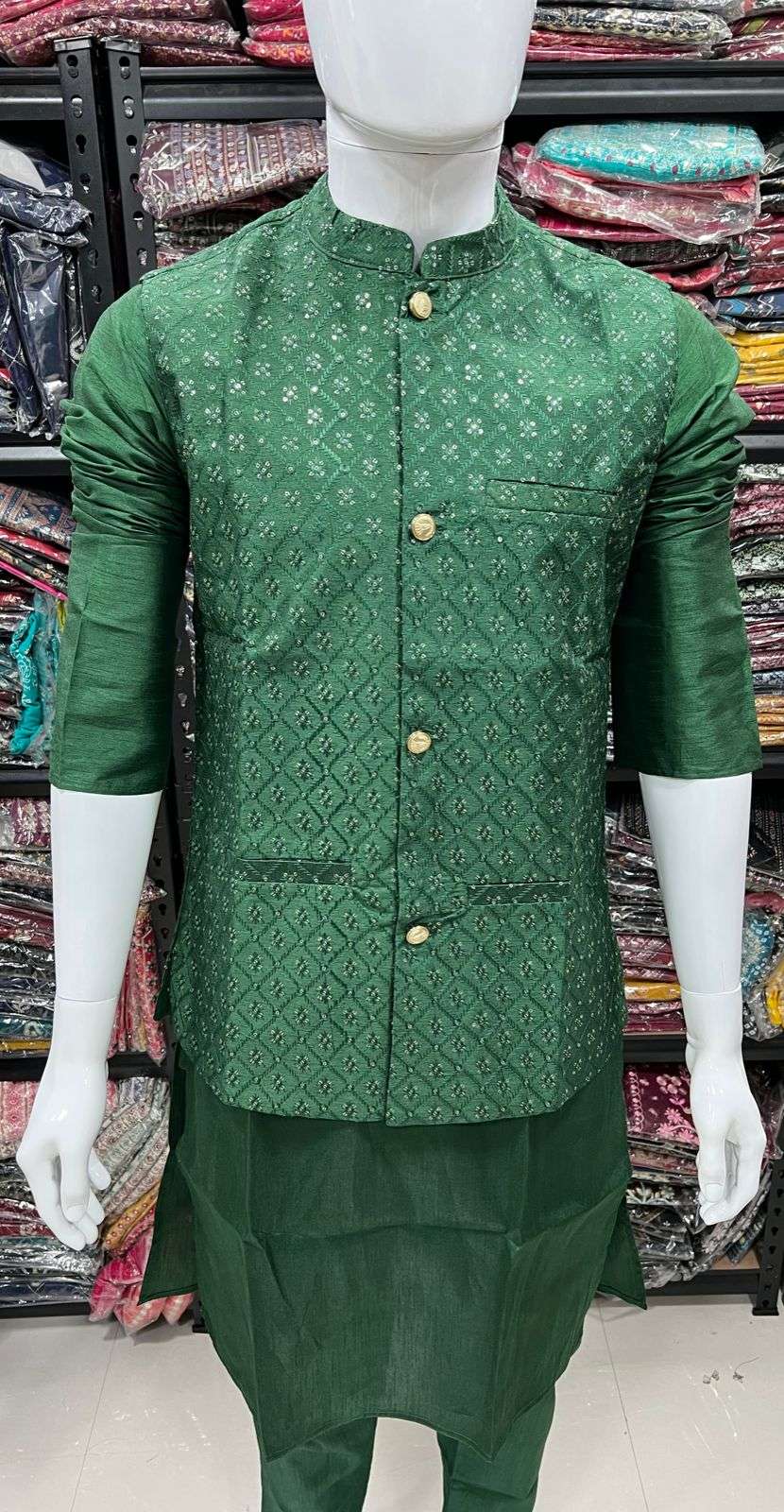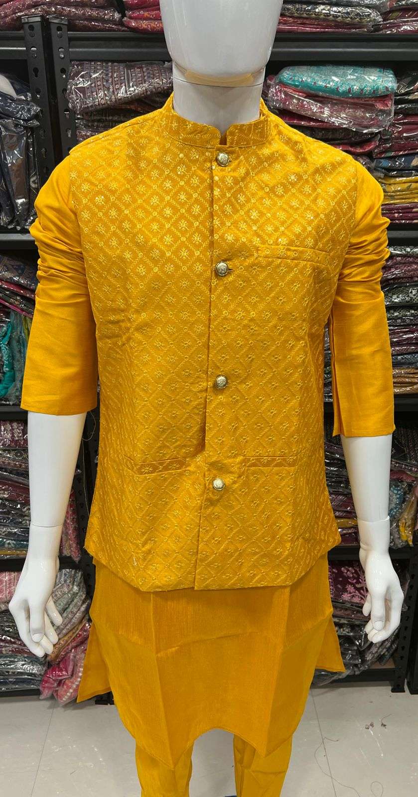 Manyavar 🤴 Kurta - Pant - Koti set Ready to Wear in best 7 Trending Color Fabric: Kurta: Heavy Banglori Silk Polo pant: Heavy Banglori Silk Koti: Heavy Banglori Silk Size: Price: 999/-rs Tailor Finish Stitching |