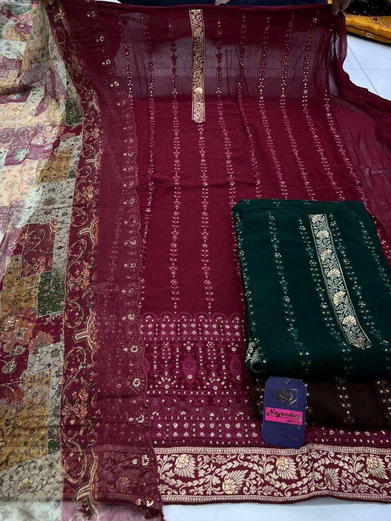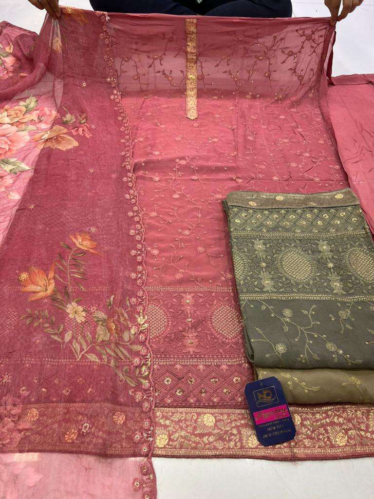 pr military beautiful designer work 3pcs dress material