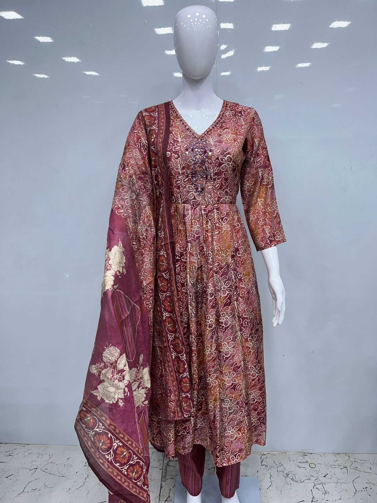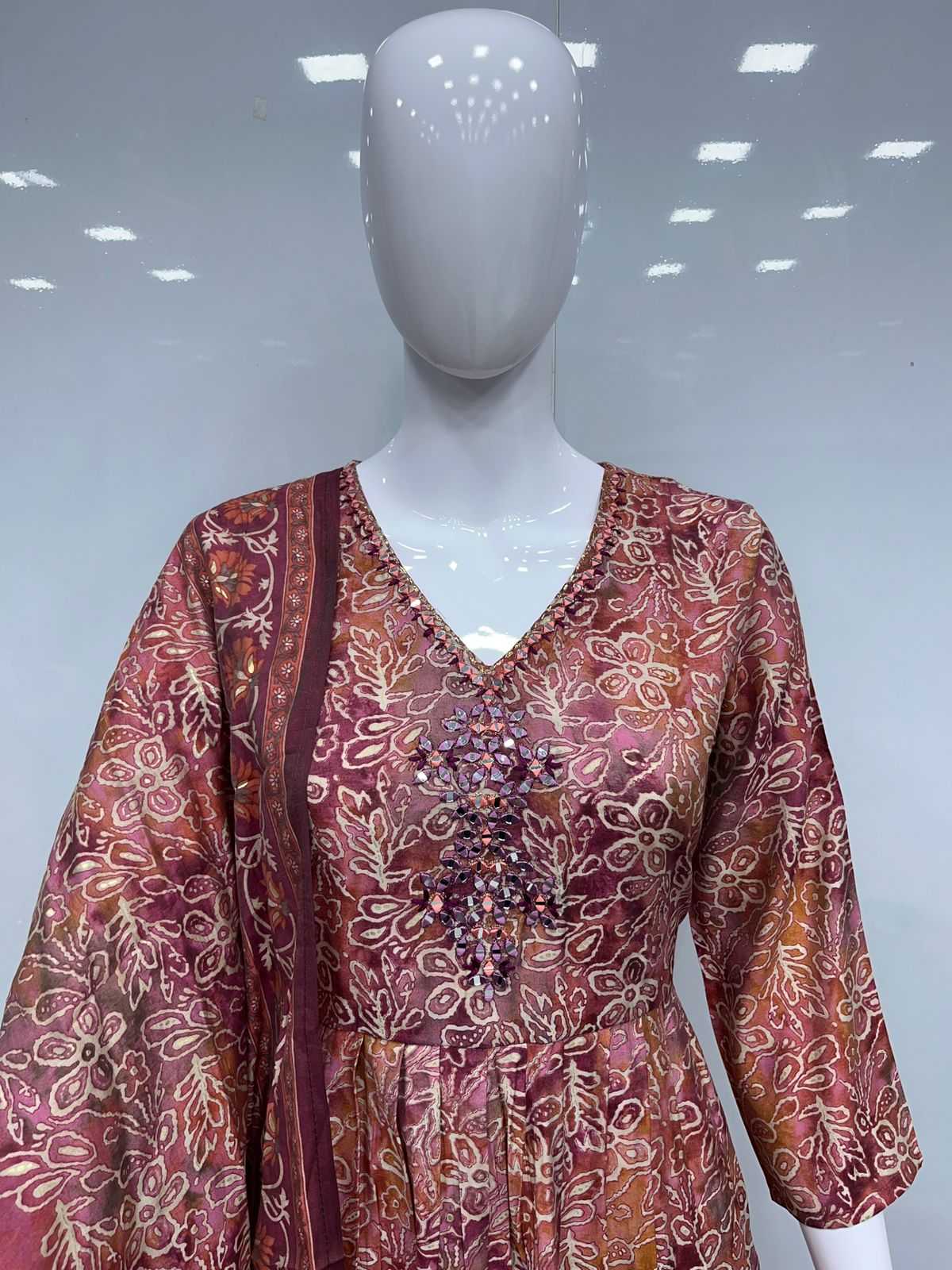 pr modal chanderi piroi readymade latest design casual wear mirror work flair salwar kameez