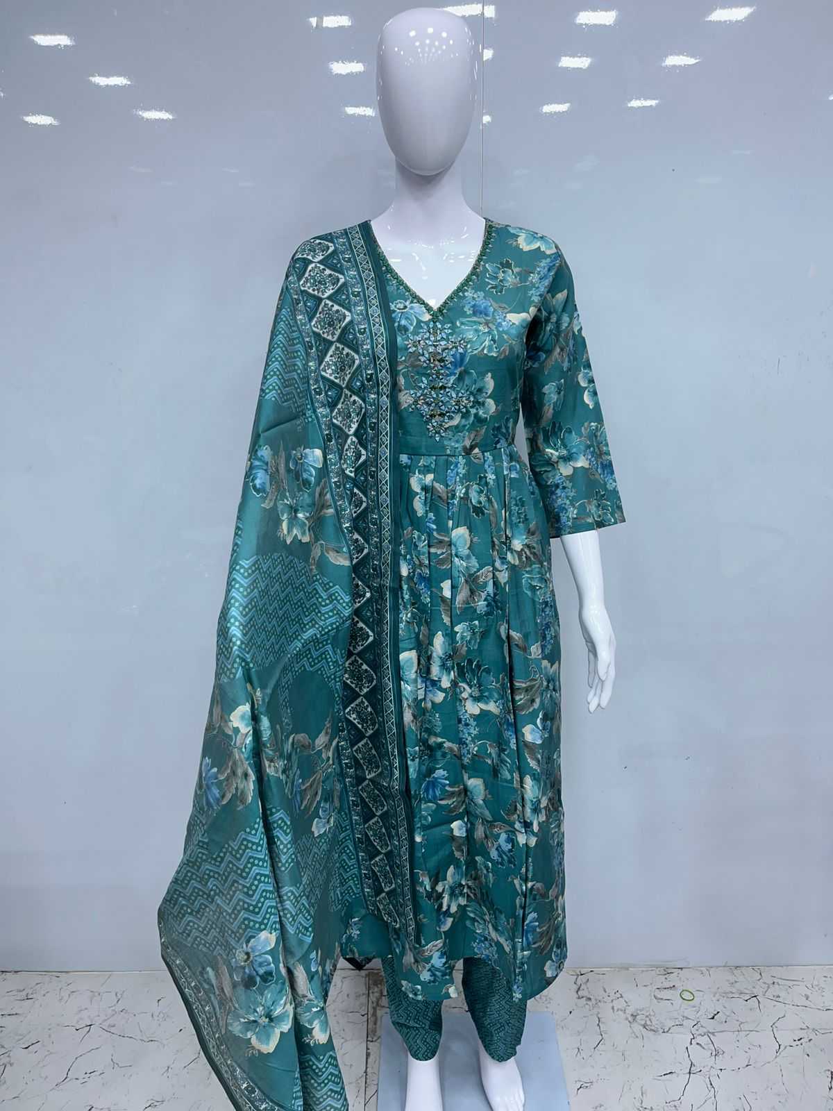 BOOK CATALOGUE MODAL CHANDERI PIROI FLAIR 3 PCS DRESS ON KRISHNA CREATION. CALL ON +91-8866778727.