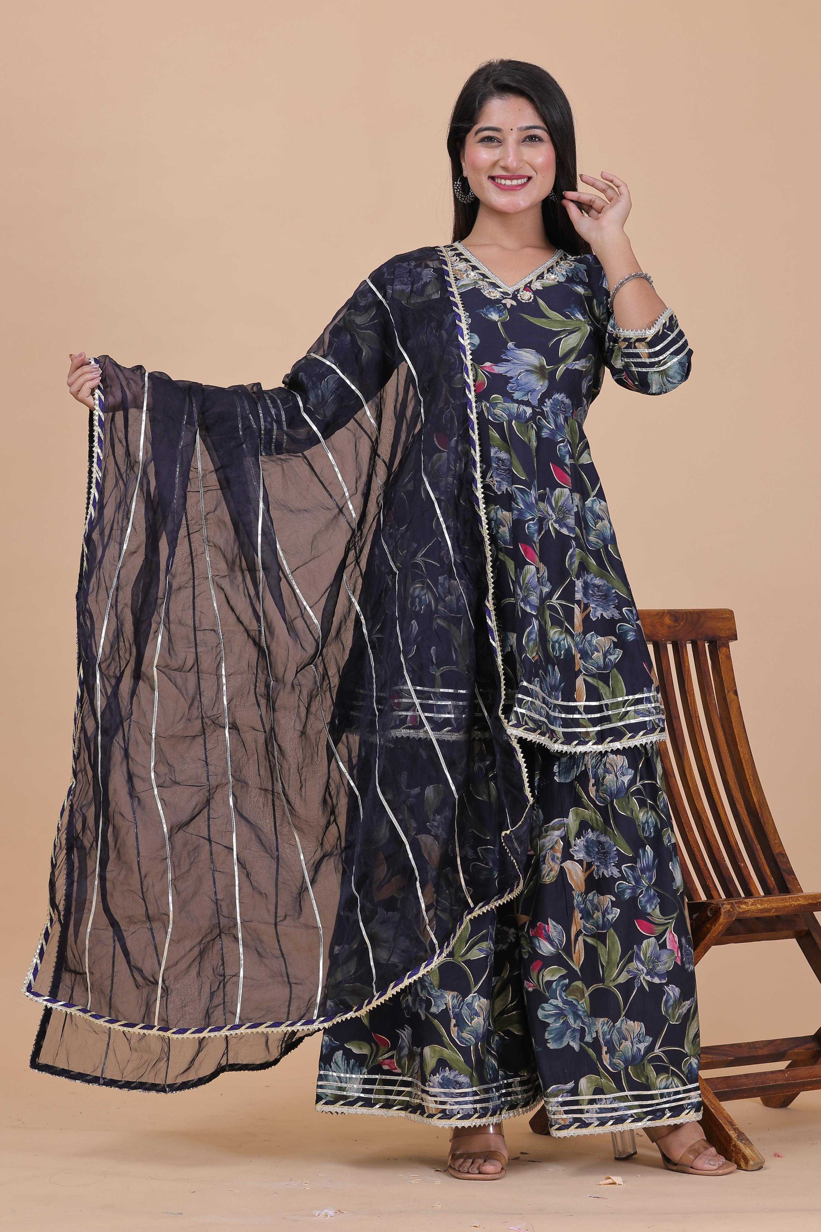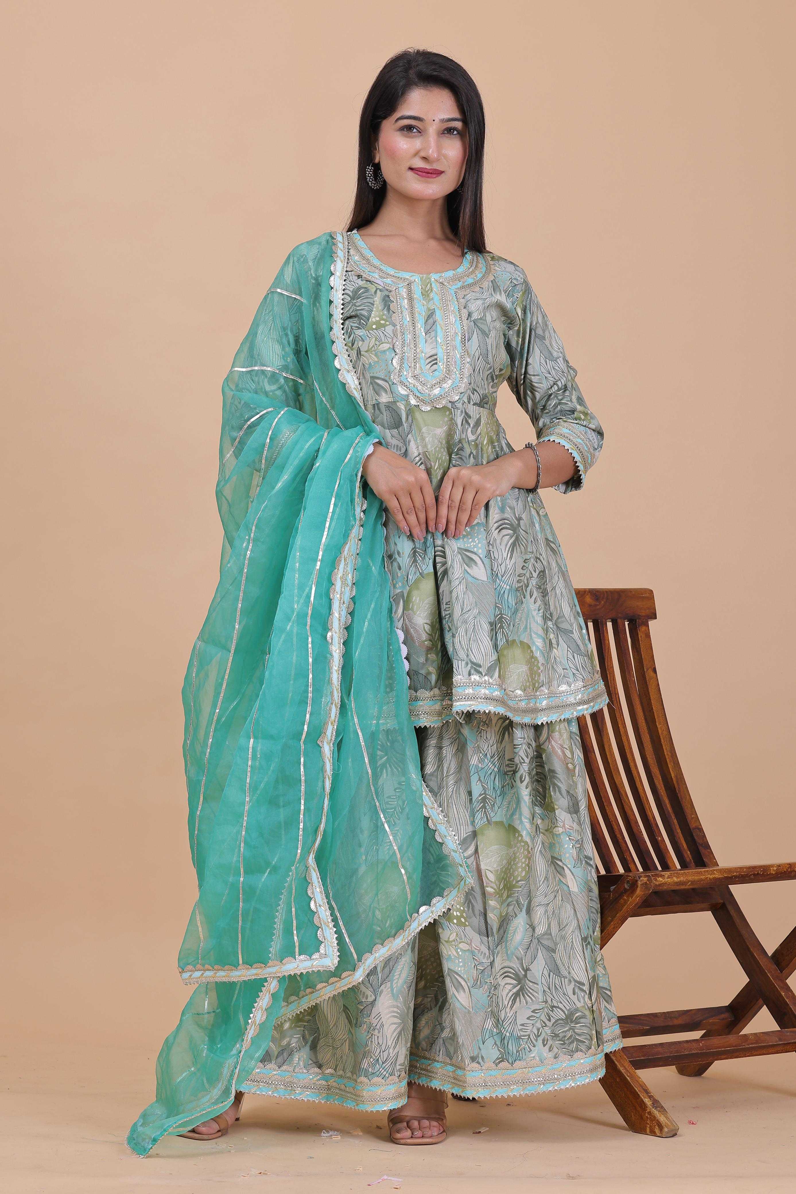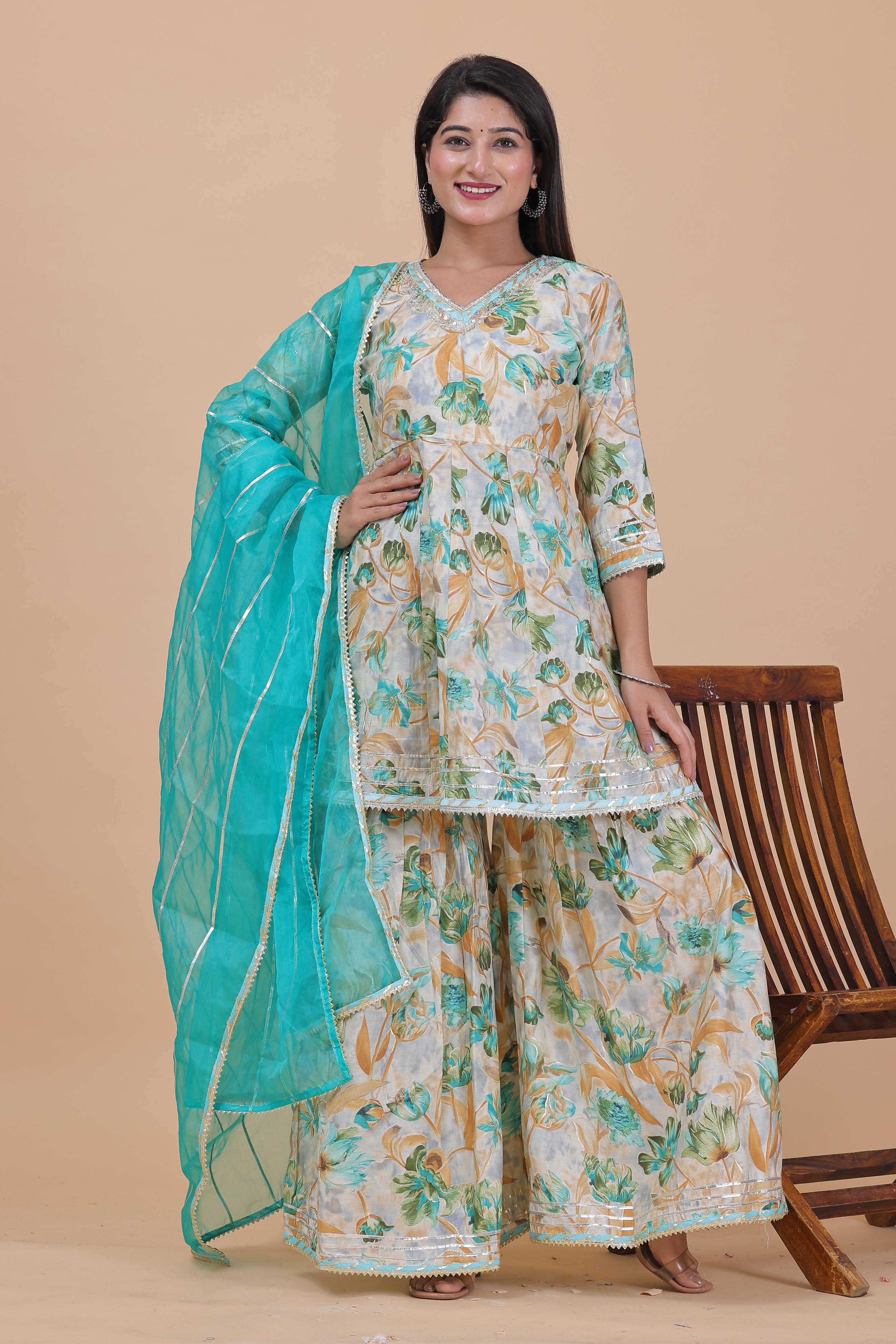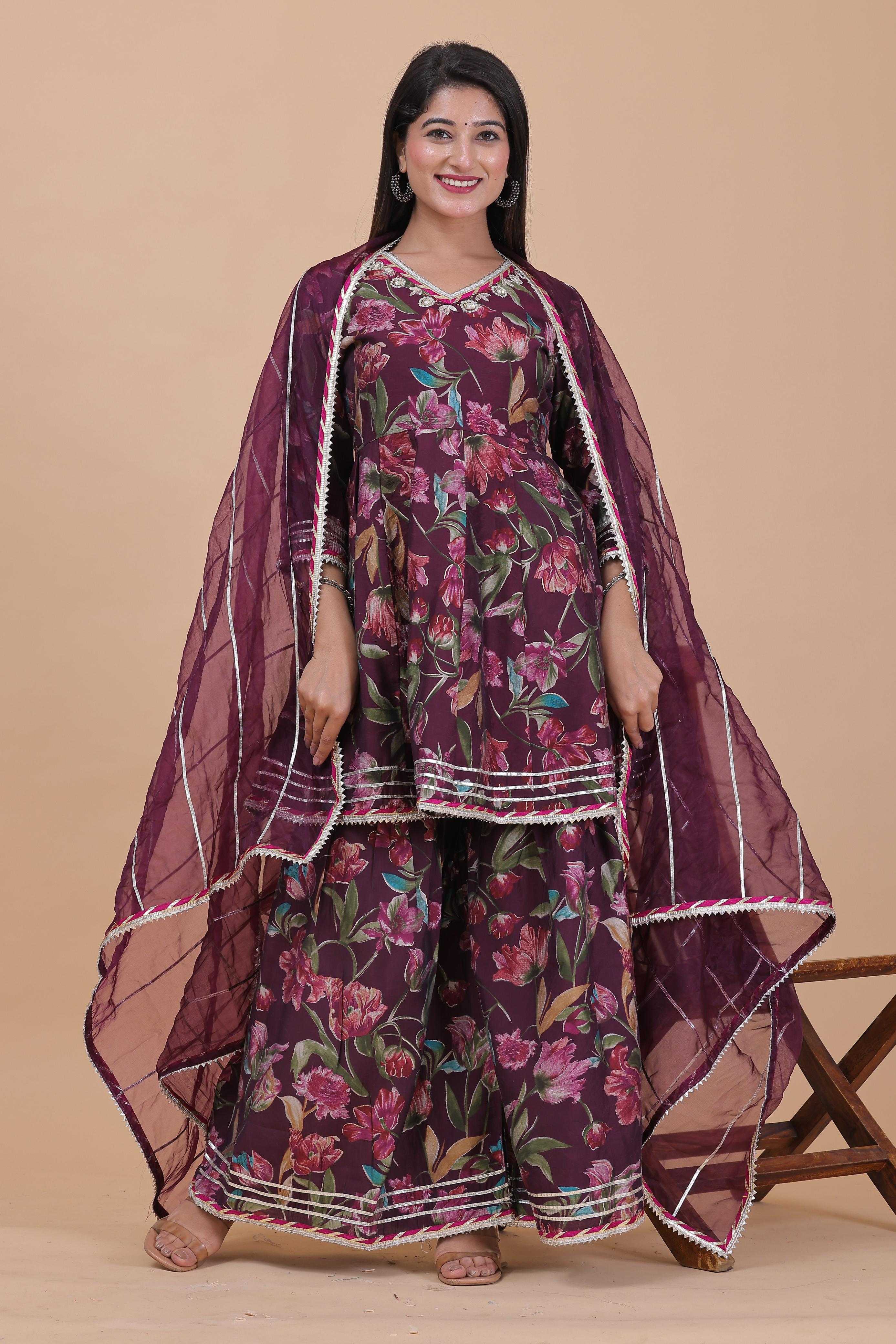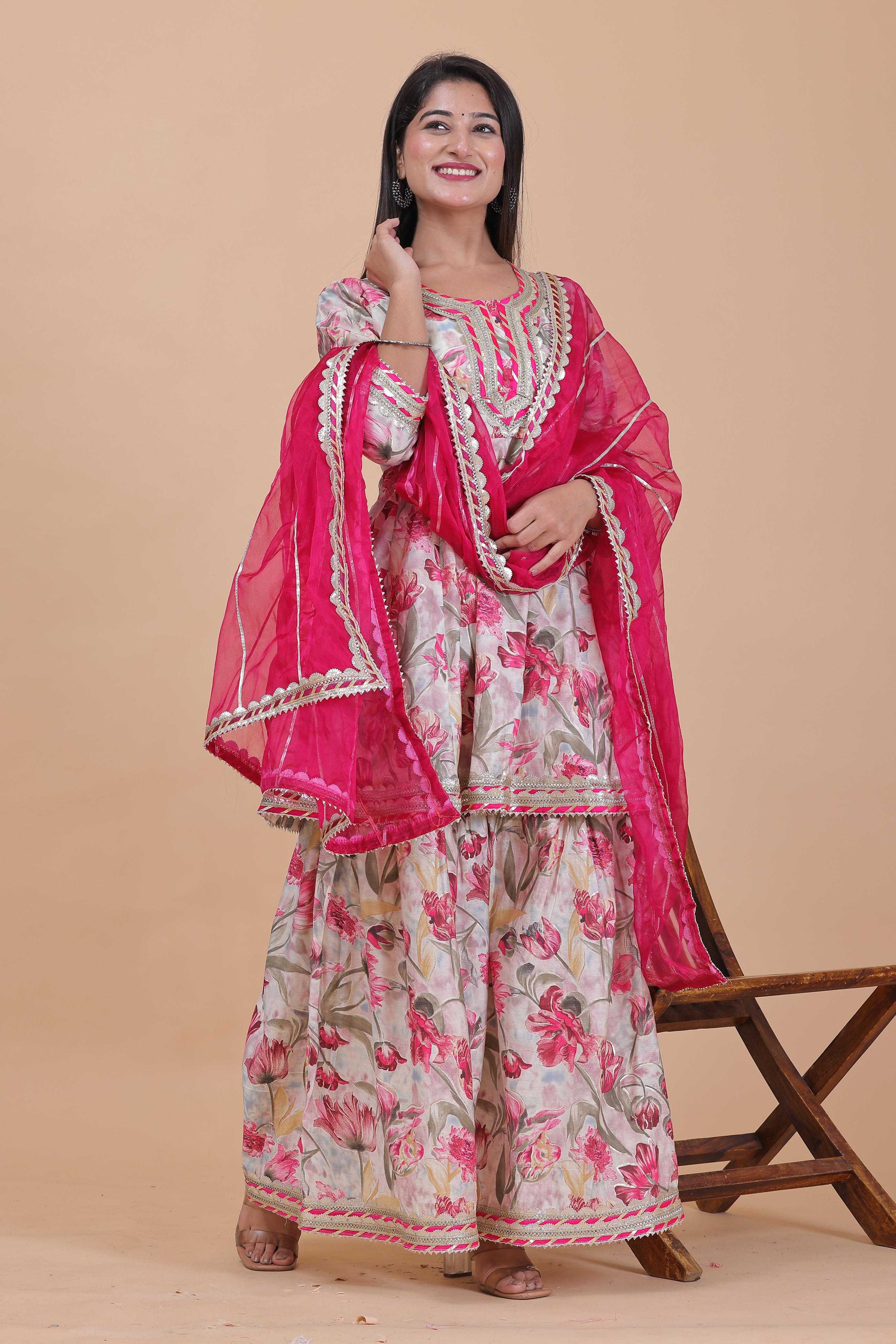 pr modal chanderi sharara 3pcs part 2 readymade kurti pant dupatta combo set