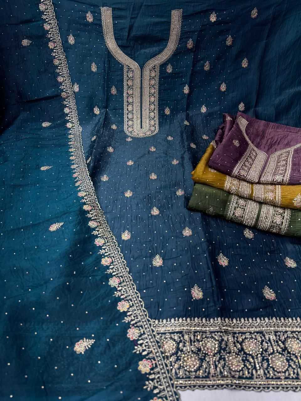pr monika gold crush popular design dress material exports