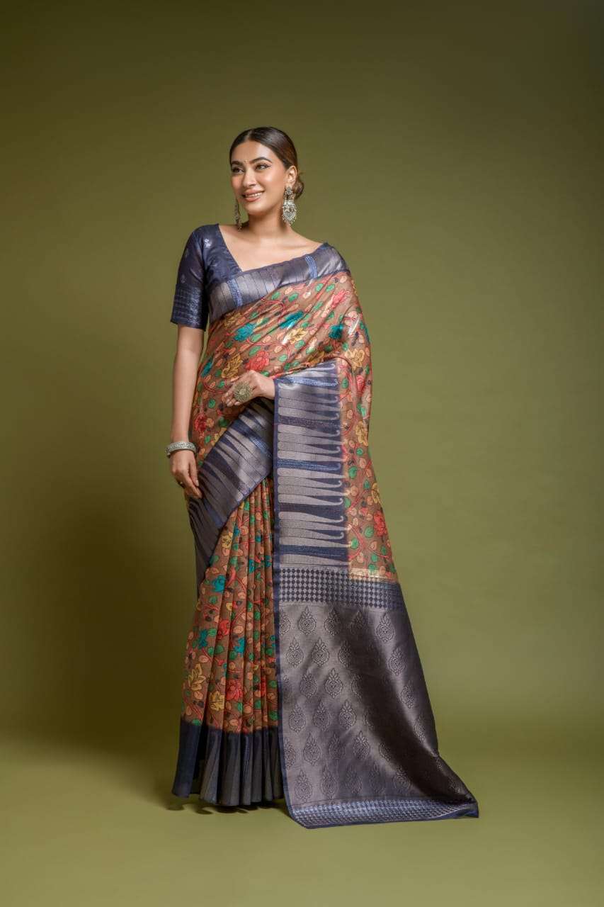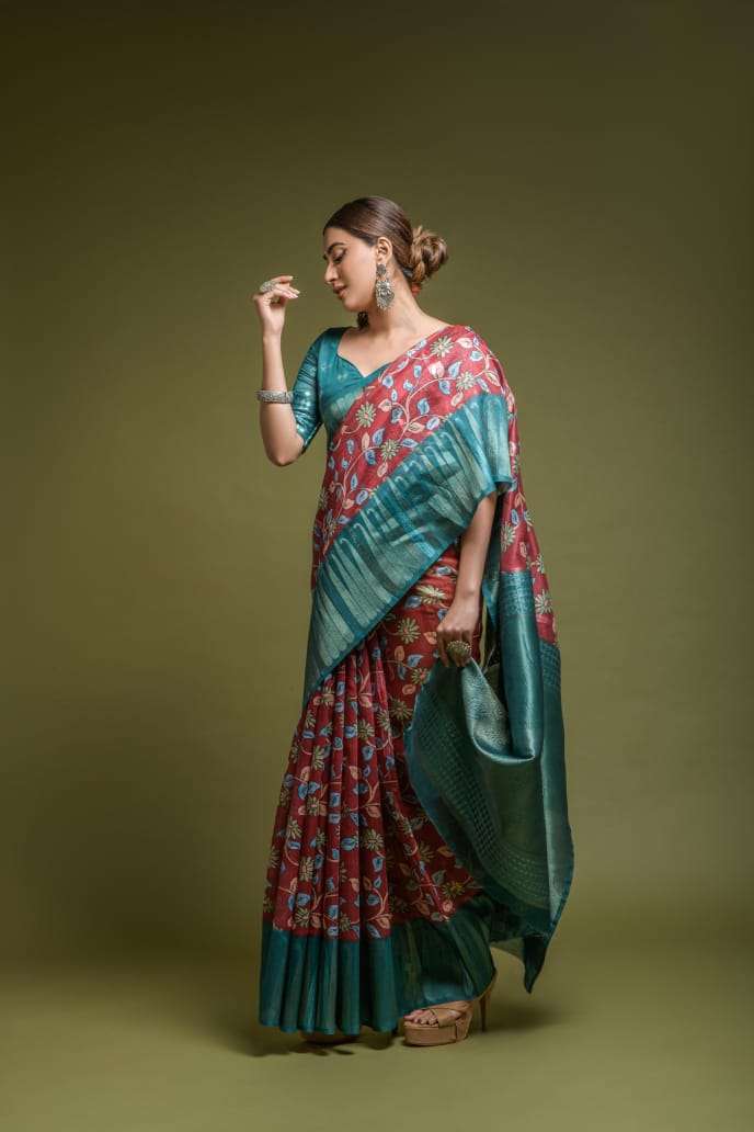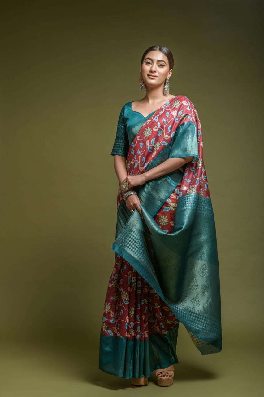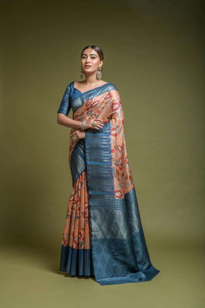 pr neelkanth soft silk with amazing kalamkari digital print and designer border saree wholesaler