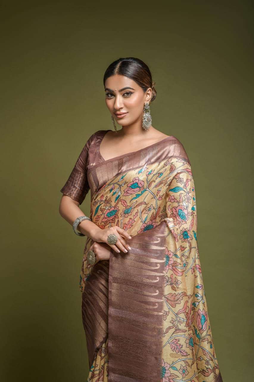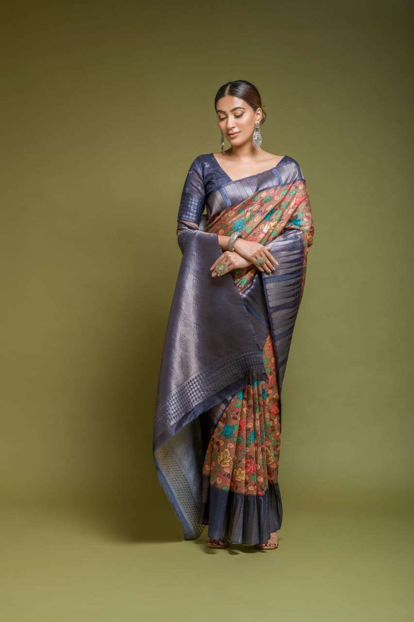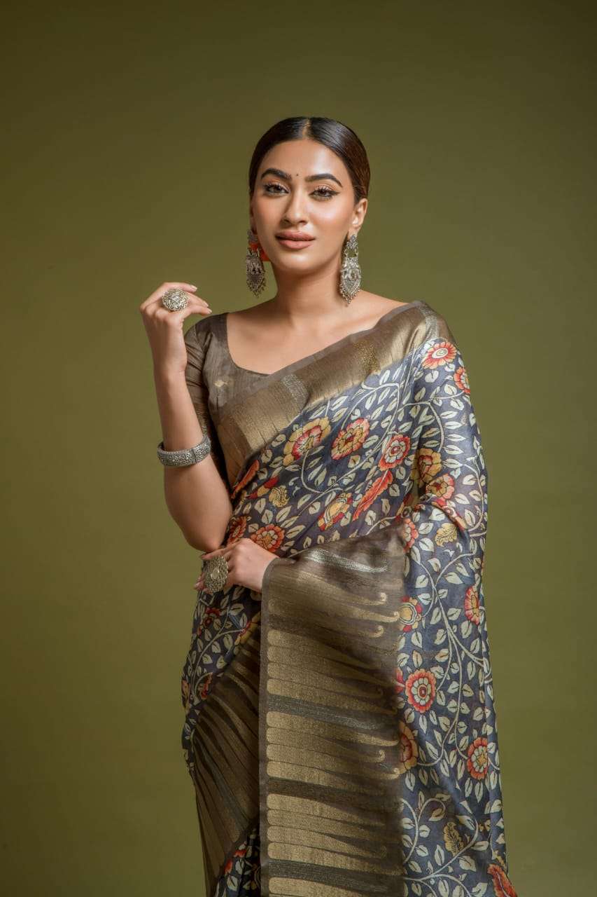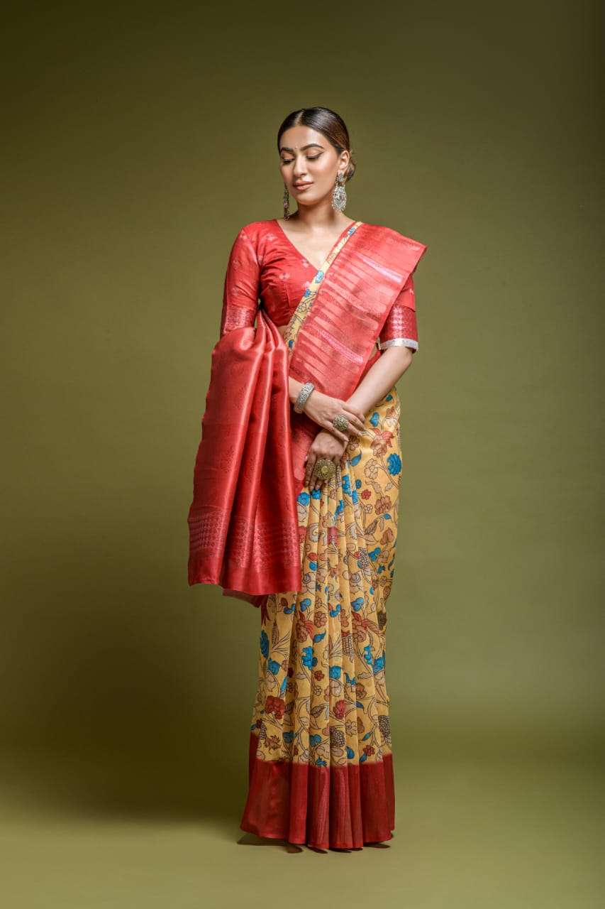 pr neelkanth soft silk with amazing kalamkari digital print and designer border saree wholesaler