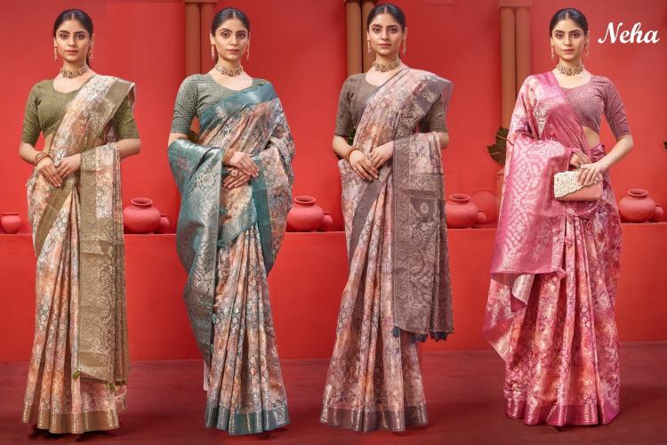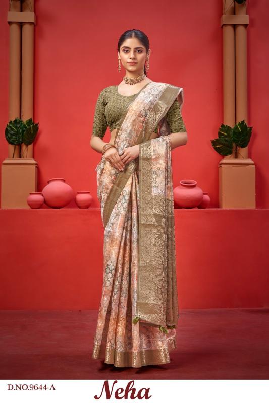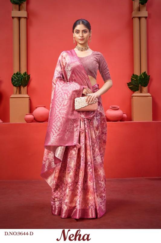 The Feminine Charm And Melodic Grace Of This Saree Add A Touch Of Sophistication And Elegance To Your Look Brand : Sanjana Designwear Catalog Name : Neha Series: 9644A to 9644D Saree Fabric : Soft Kanjeevaram Digital Printed Saree With Zari Border Blouse Fabric : Jacquard Occasion : Festival Wear, Party Wear |