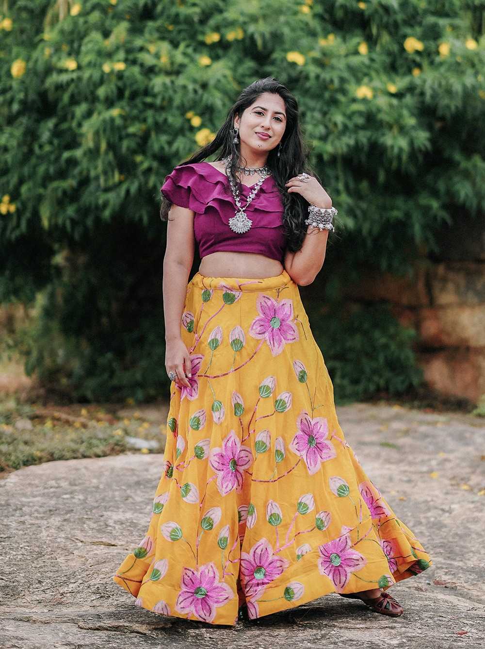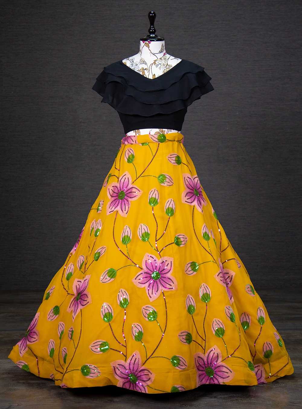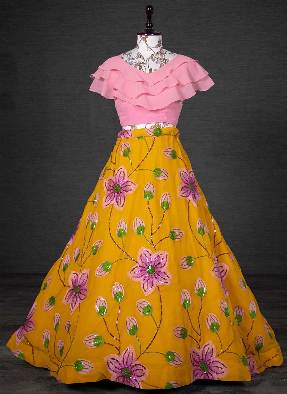 pr nnk1729ylw party wear stylish readymade blouse with skirt
