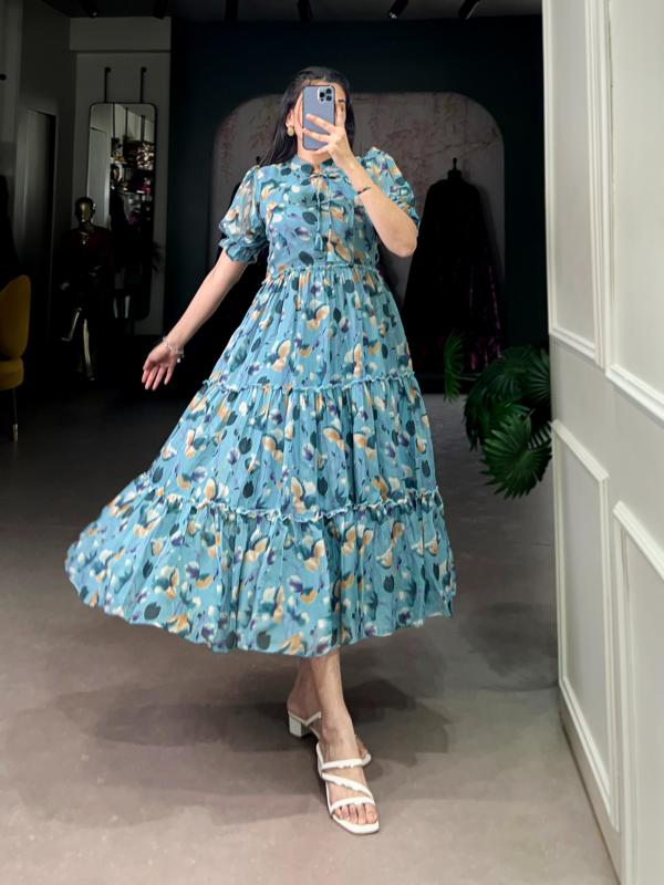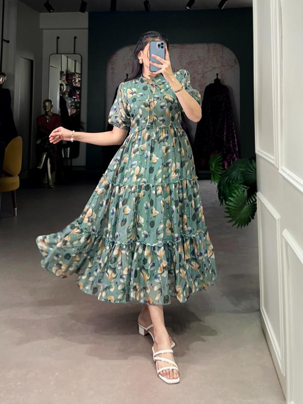 🌷Ethnic Collection🌷 A frock that defines sophistication 👗 NNK4512SGN Frock(Stitched) Weight : 0.400kg Rate : 699/*- |