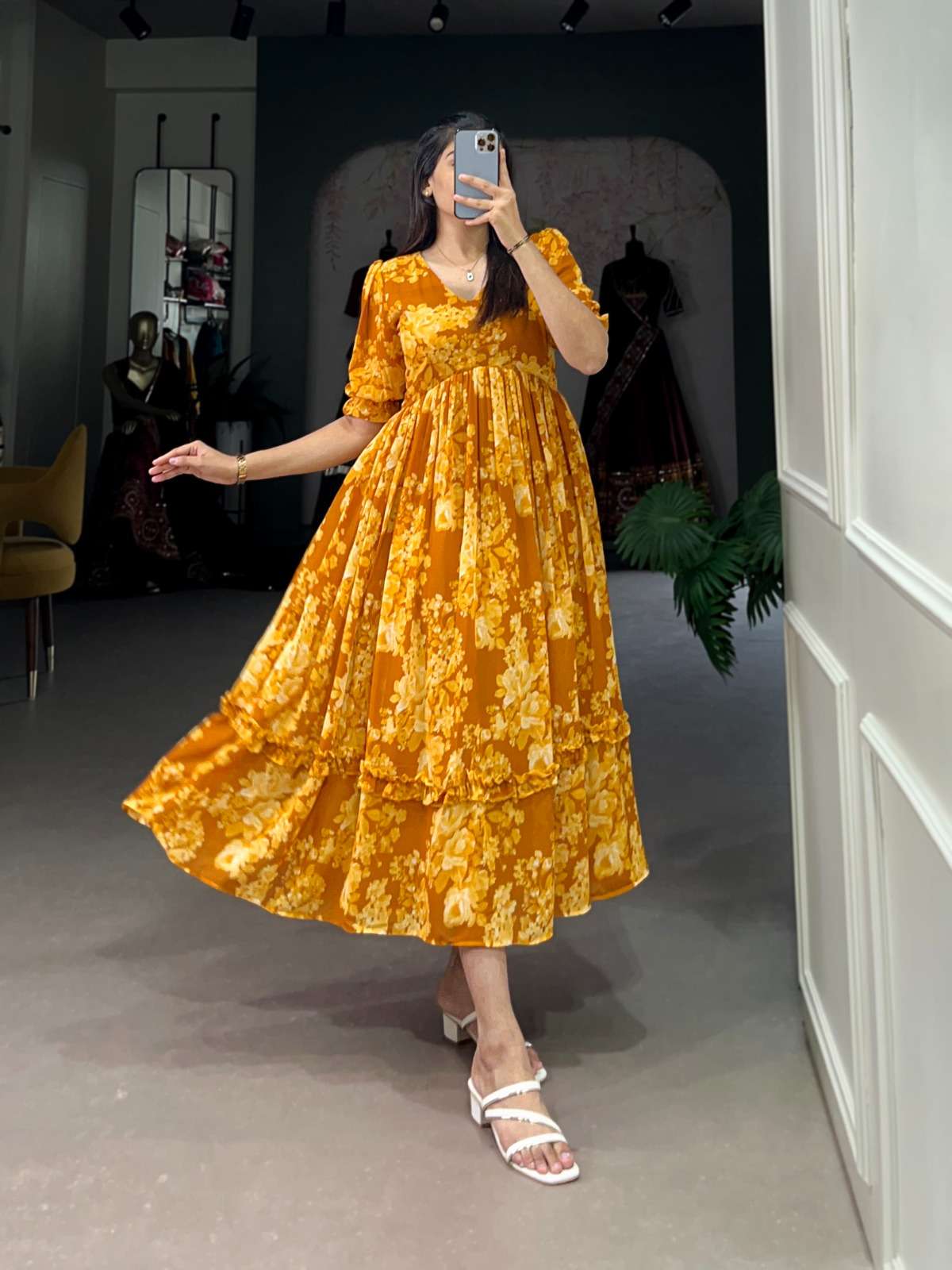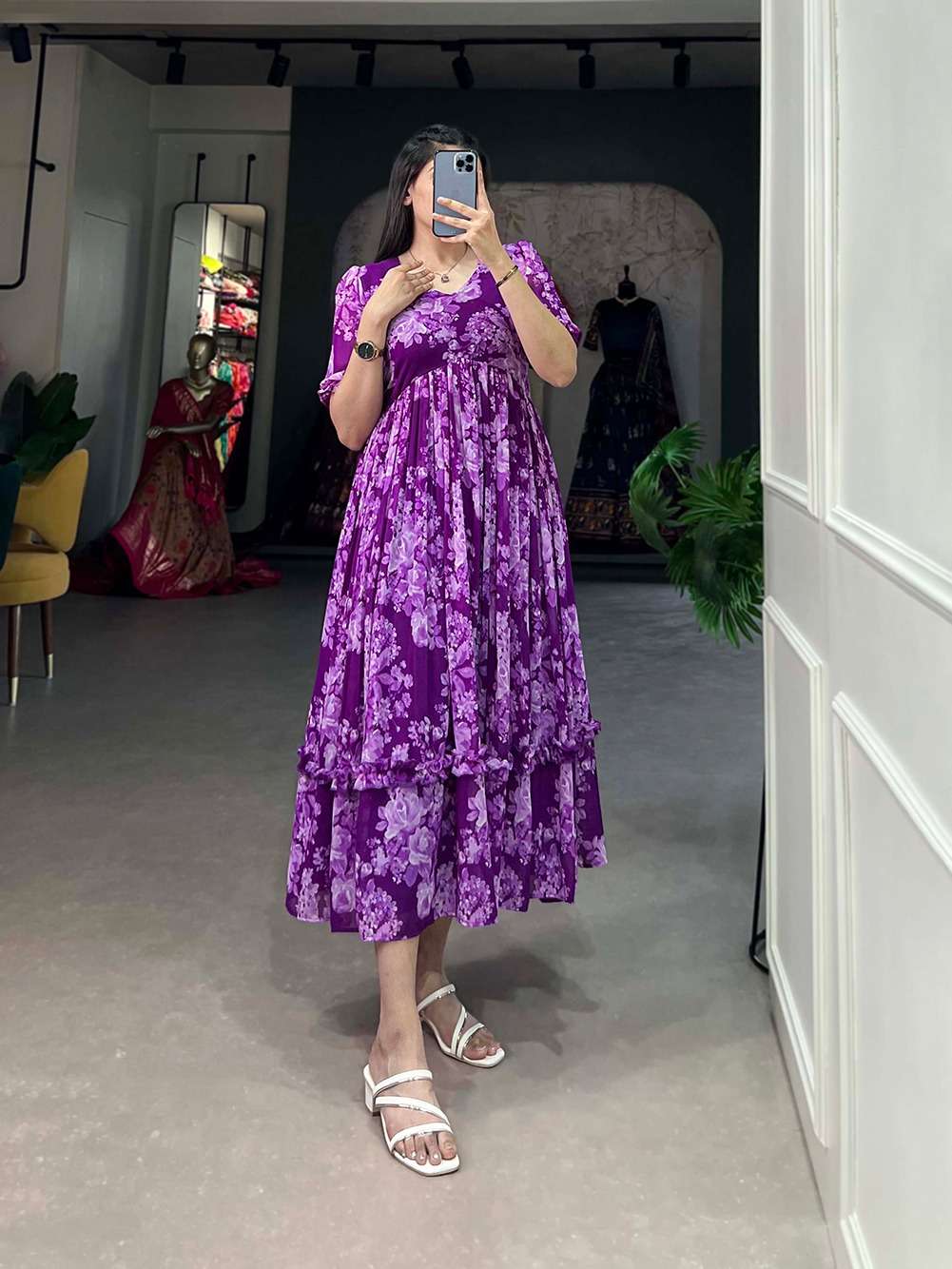🌷Ethnic Summer Collection🌷 Sizzling Summer Style Alert : This georgette Floral Frock is a Must-Have for Your Wardrobe! 🪻 NNK5017PRL Frock(Stitched) Weight : 0.470 kg Rate : 449/- |