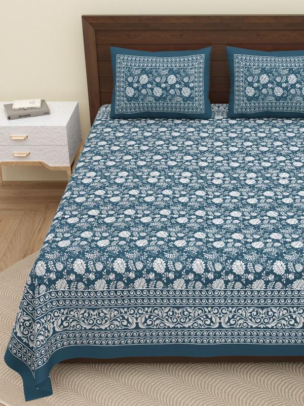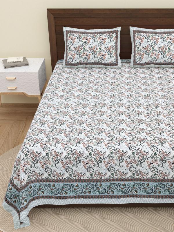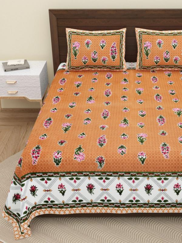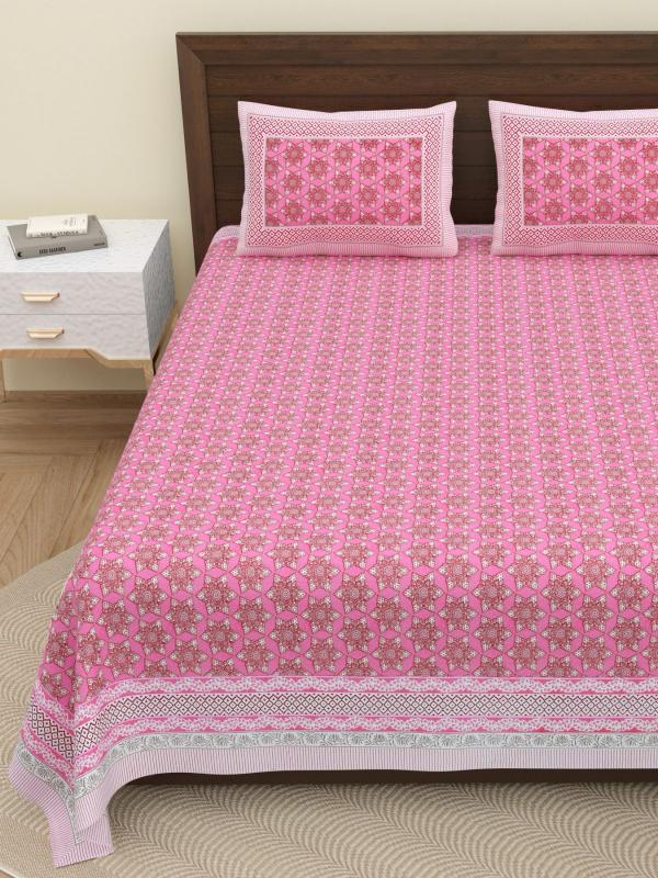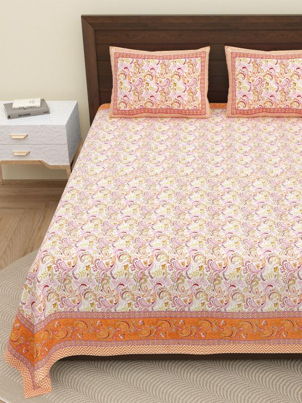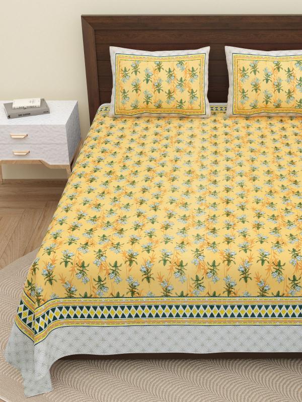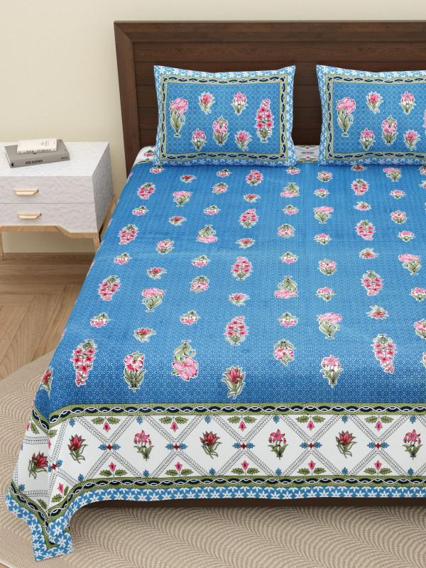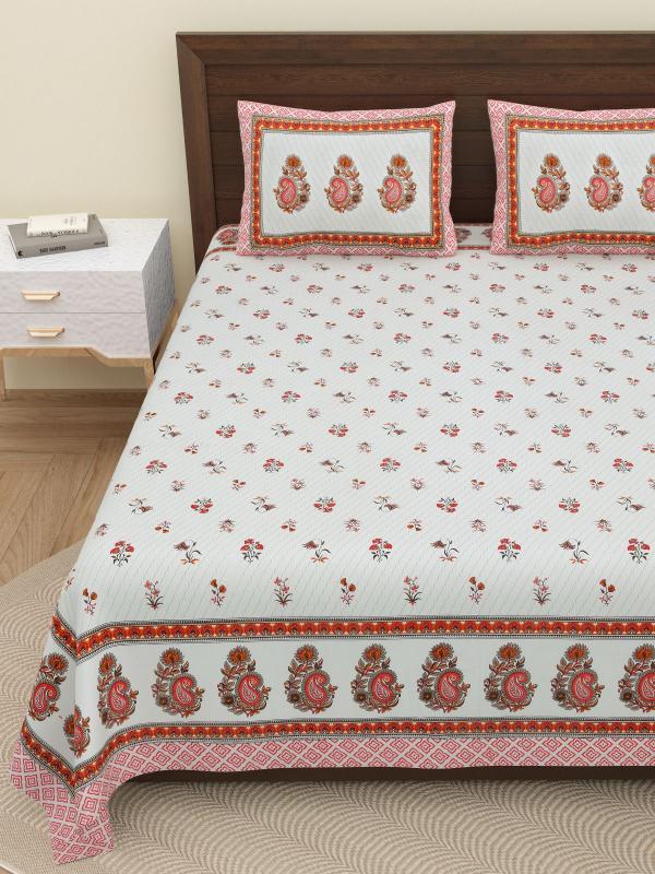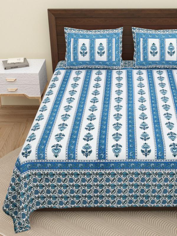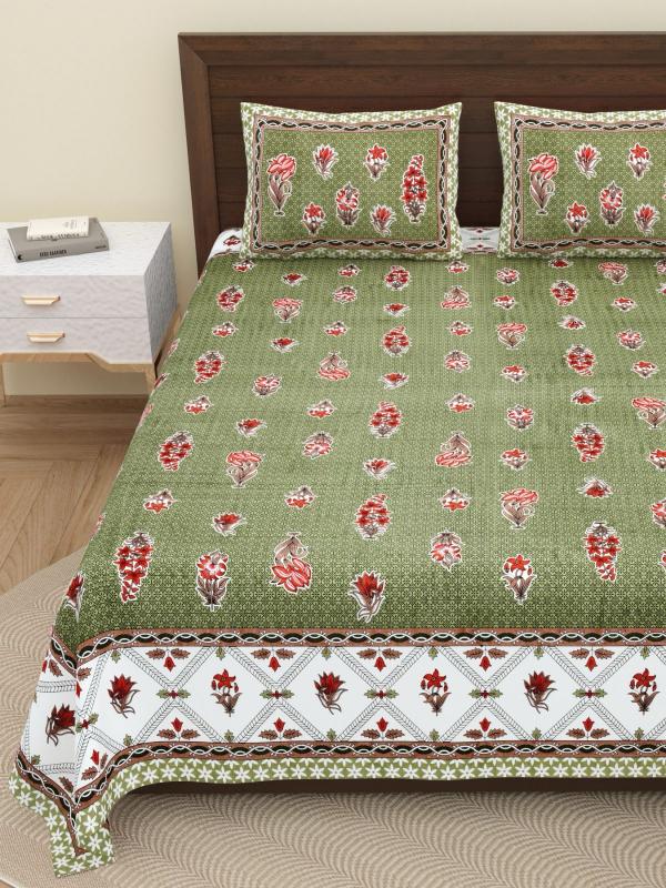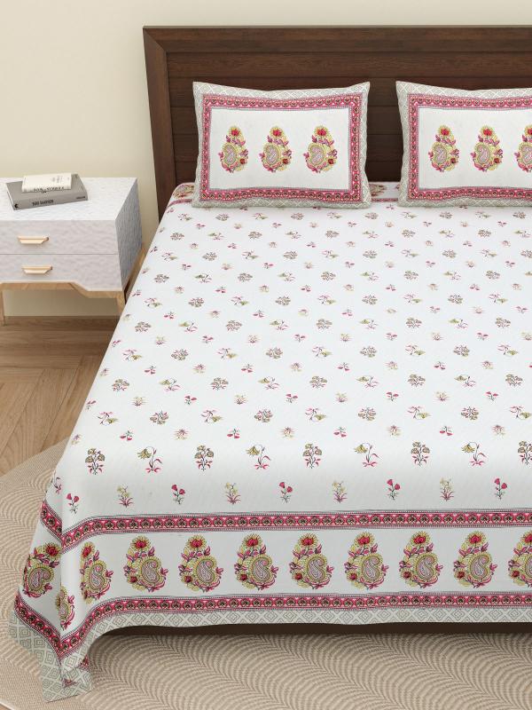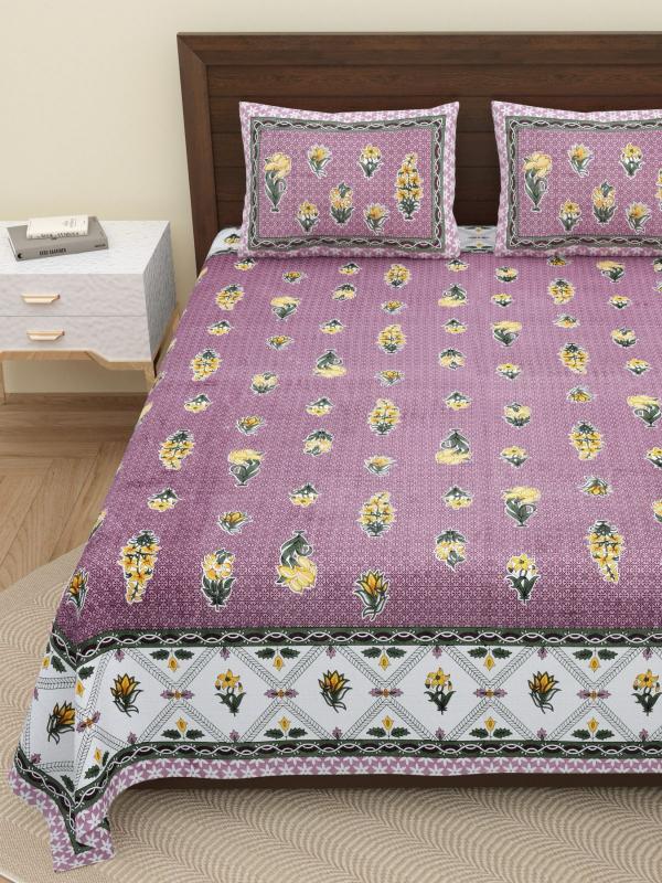 pr oliyandar super king size cotton readymade printed bedsheet with 2 pillow covers