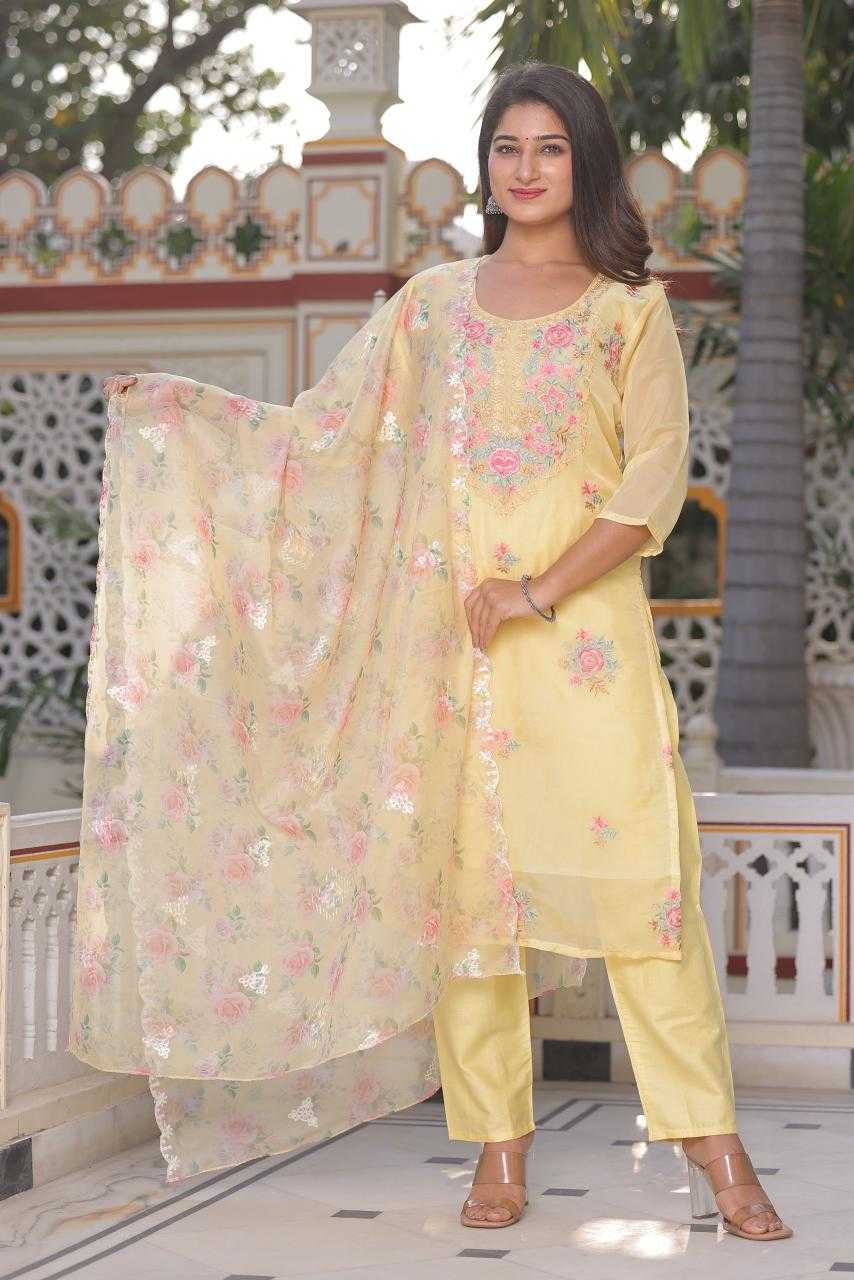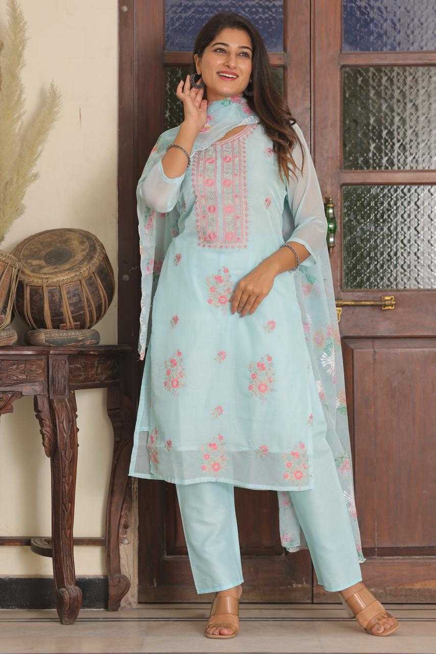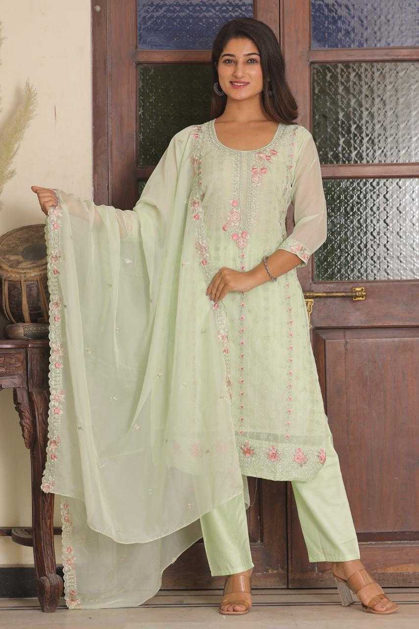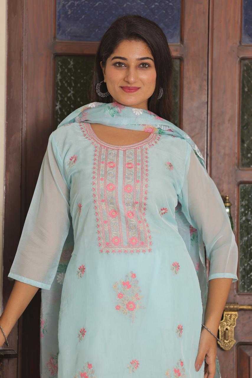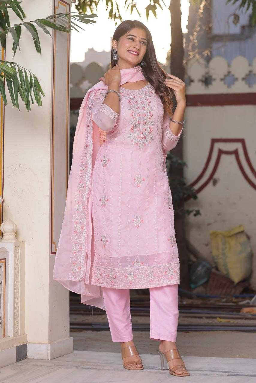 pr organza 3pc work readymade festive wear kurti pant dupatta combo set
