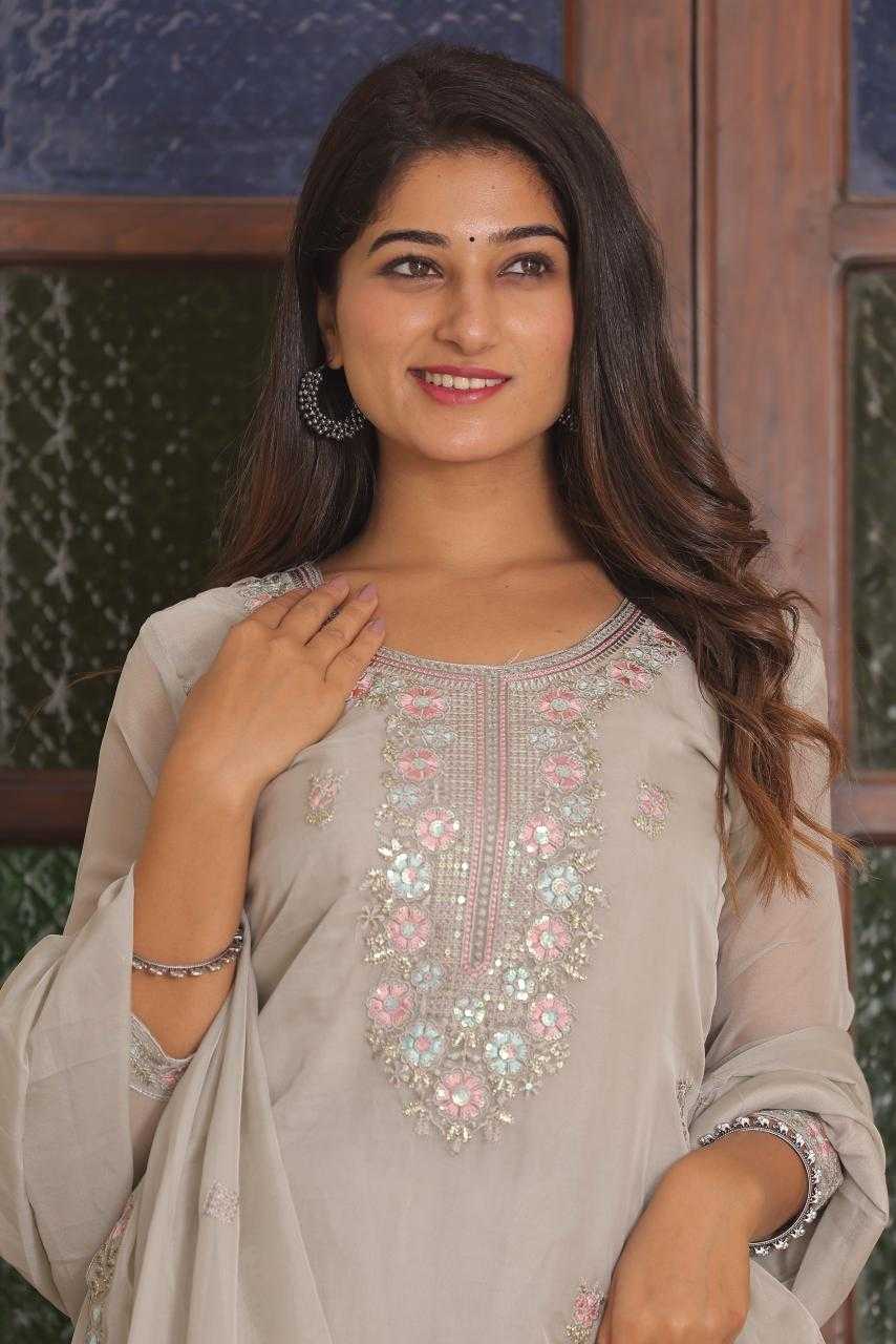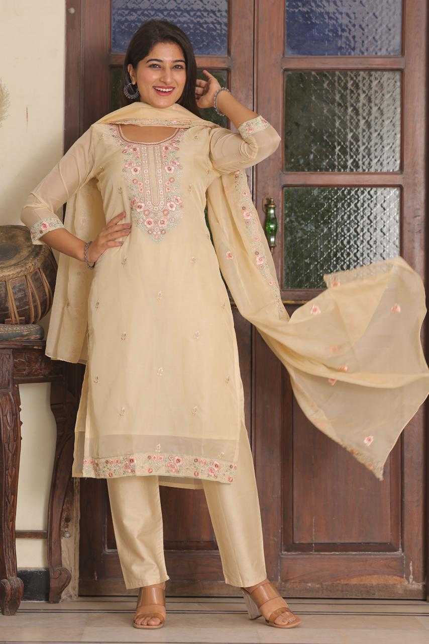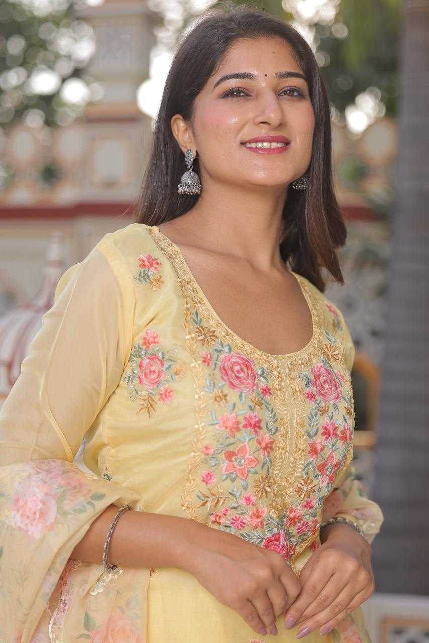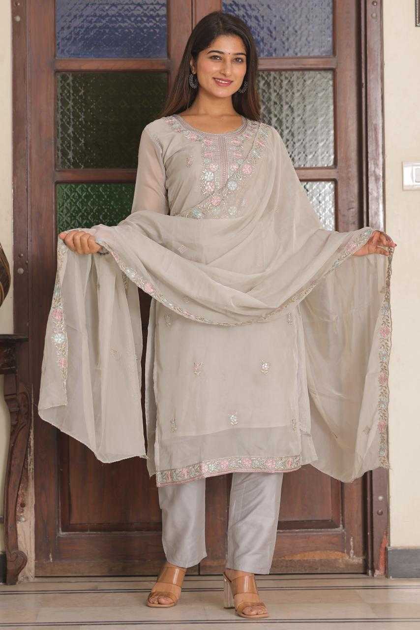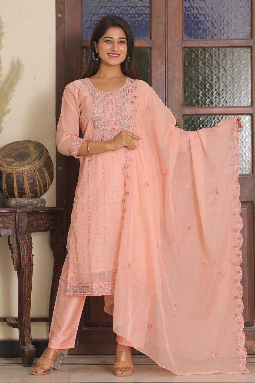 pr organza 3pc work readymade festive wear kurti pant dupatta combo set
