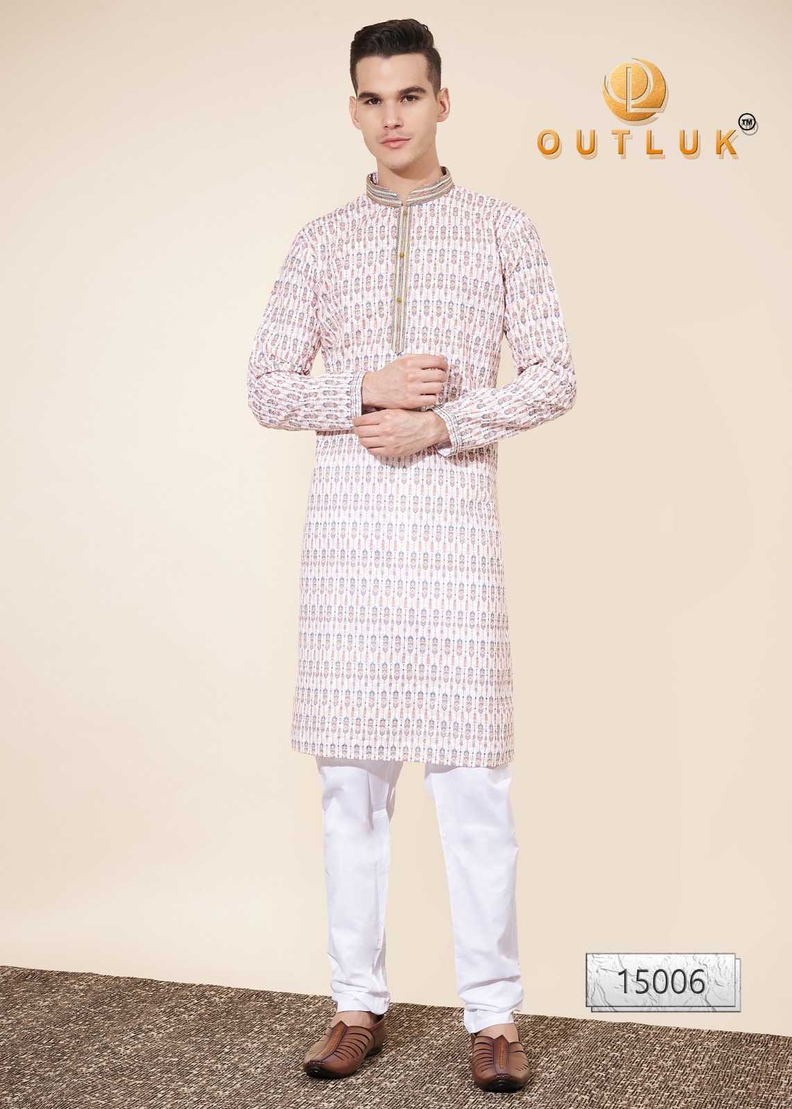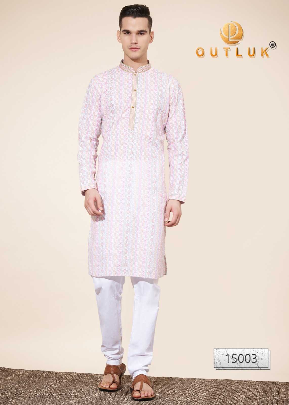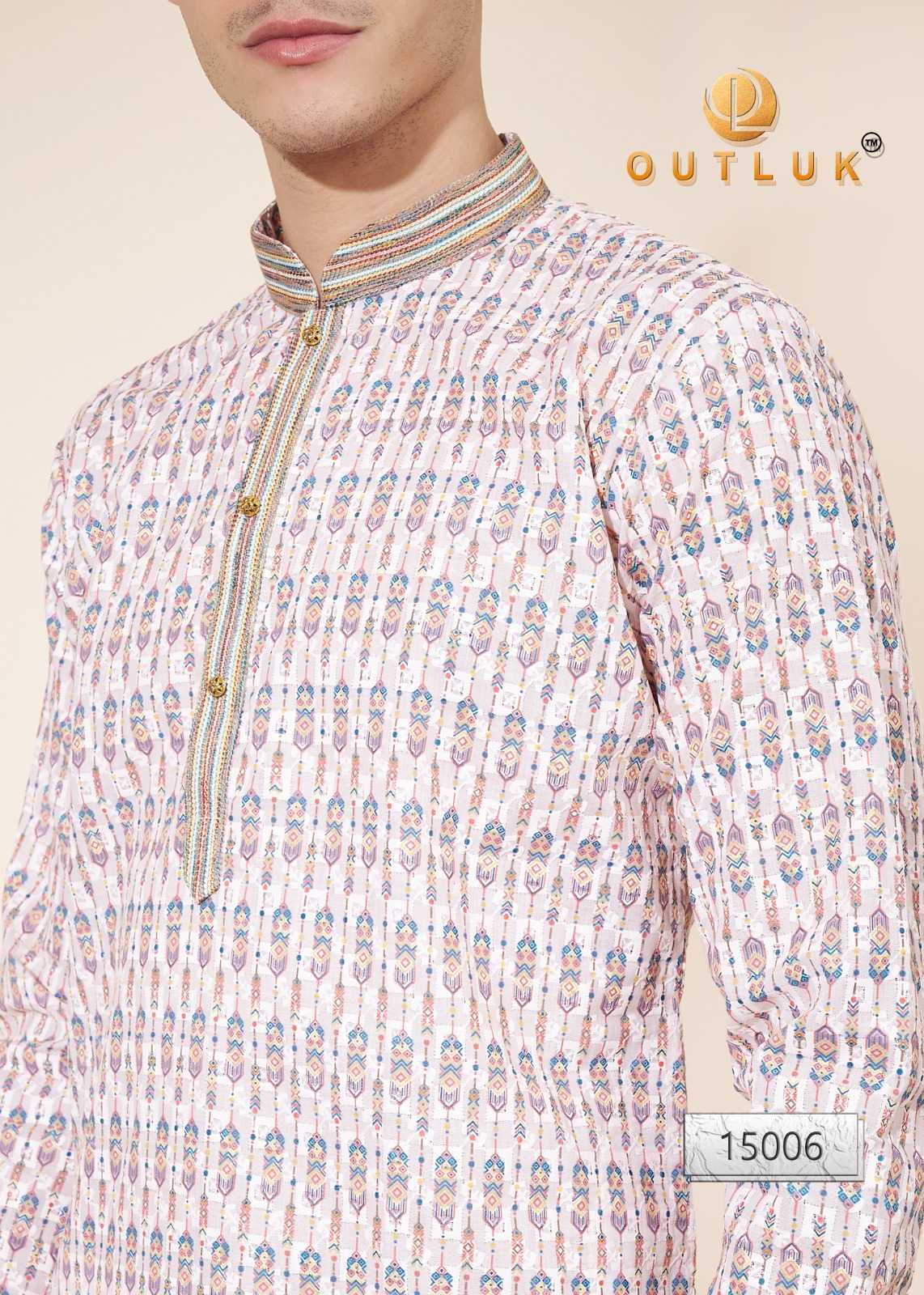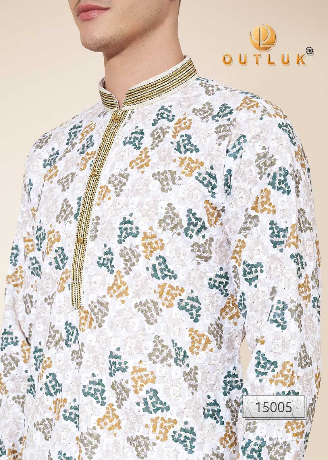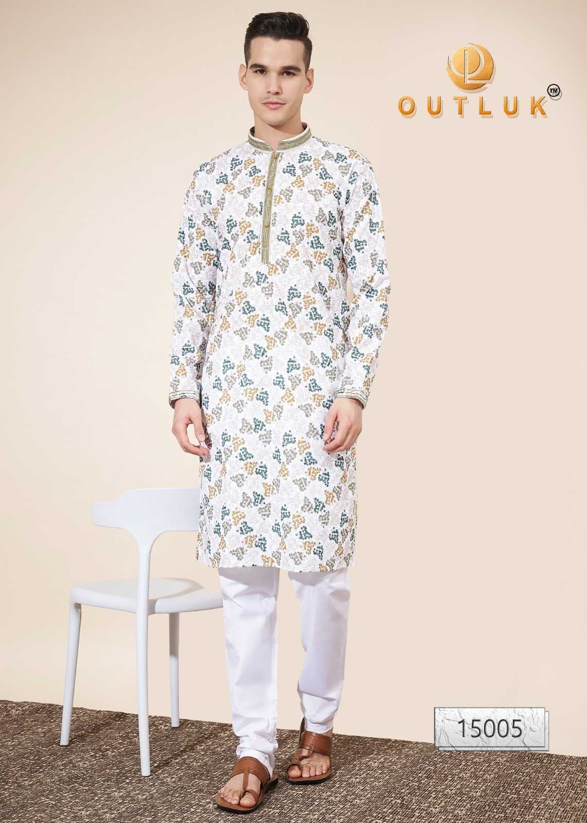 Outluk Added Wedding Collection Series New Designs in Pintex lakhnowi Work Kurta Pajama Outlook Catalog Name: Outlook Wedding Collection Vol 15 🔸 Fabric Details 🔸 ▪Kurta Fabric :- Heavy Cotton Digital Print with Lakhnowi, Sequance, Thread and Pintex Work ▪Pajama Fabric :- Art Silk ▪Total Design:- 7 pcs ▪Size:- 38,40,42,44 📝Booking started from now... Set And Single Available