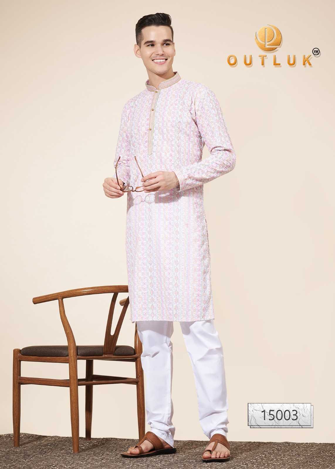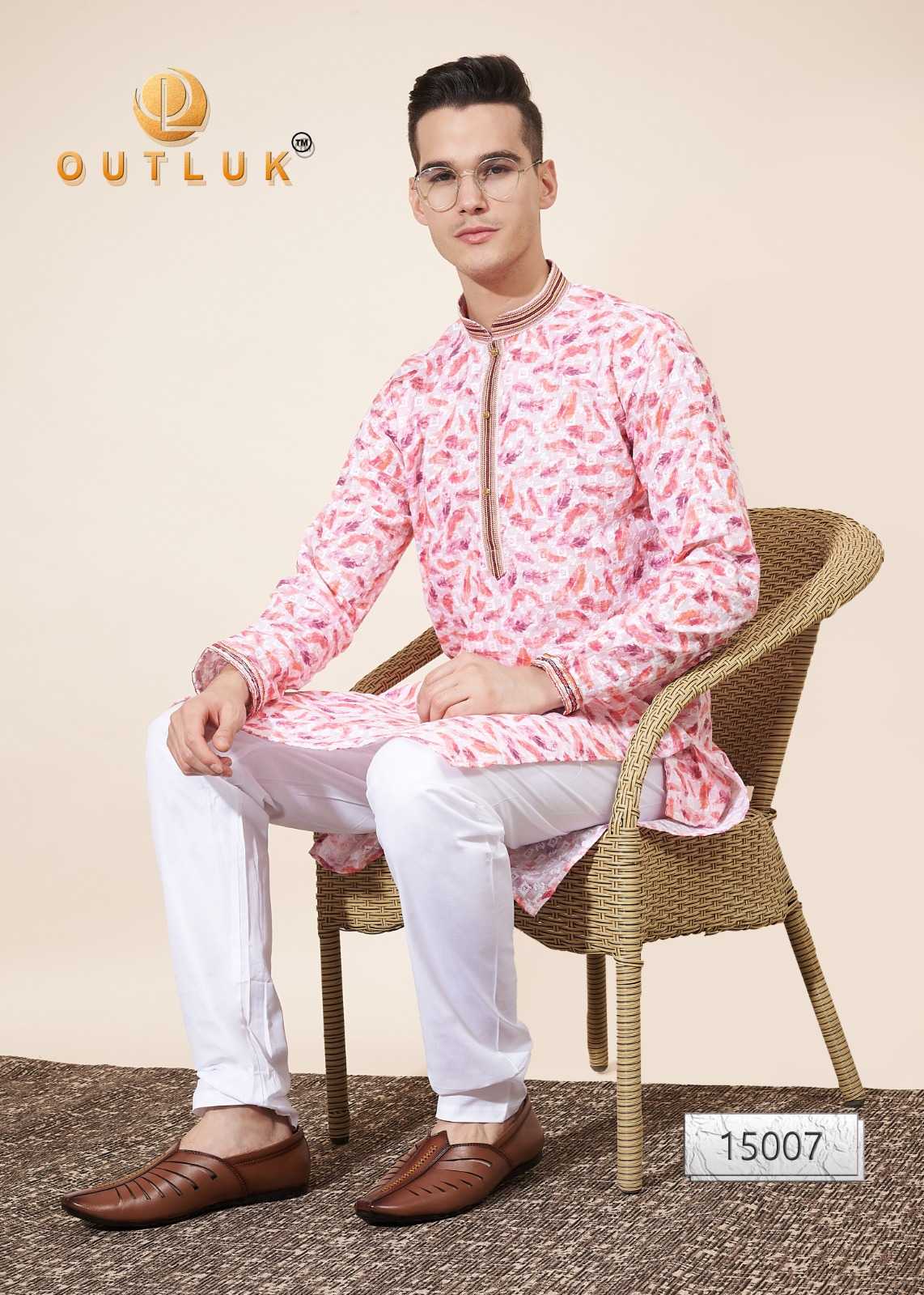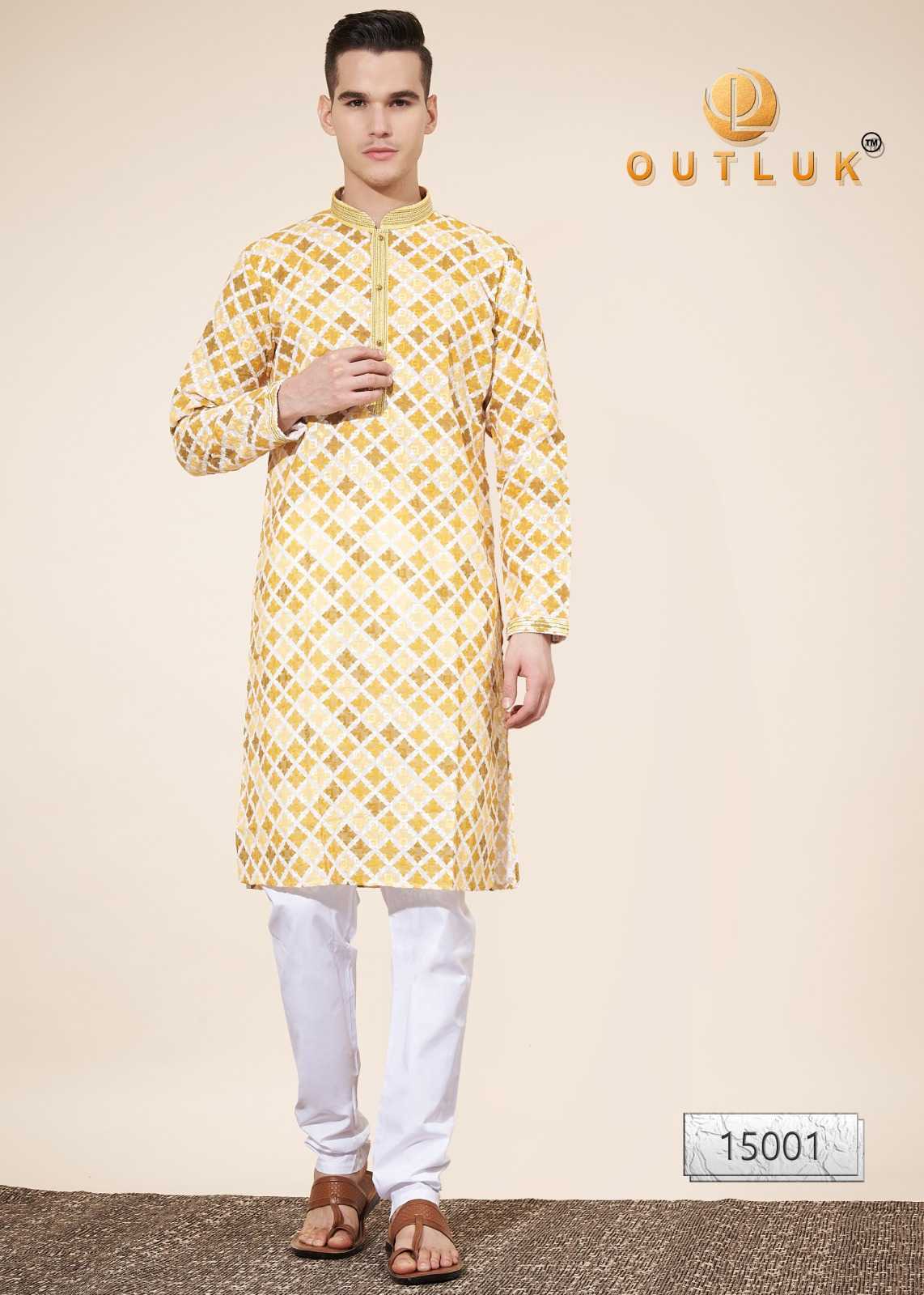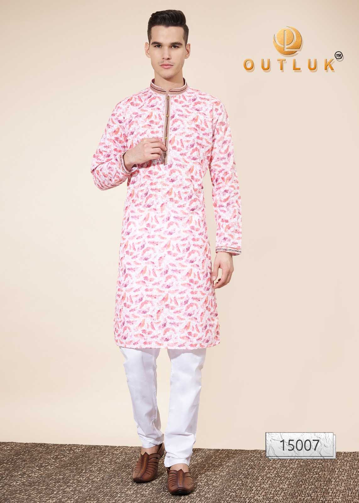 Outluk Added Wedding Collection Series New Designs in Pintex lakhnowi Work Kurta Pajama Outlook Catalog Name: Outlook Wedding Collection Vol 15 🔸 Fabric Details 🔸 ▪Kurta Fabric :- Heavy Cotton Digital Print with Lakhnowi, Sequance, Thread and Pintex Work ▪Pajama Fabric :- Art Silk ▪Total Design:- 7 pcs ▪Size:- 38,40,42,44 📝Booking started from now... Set And Single Available
